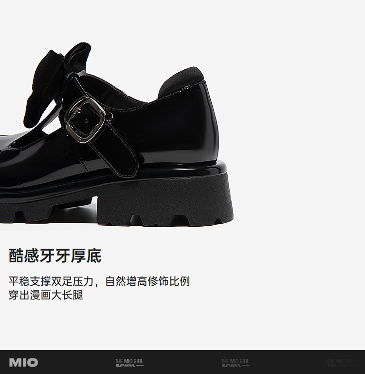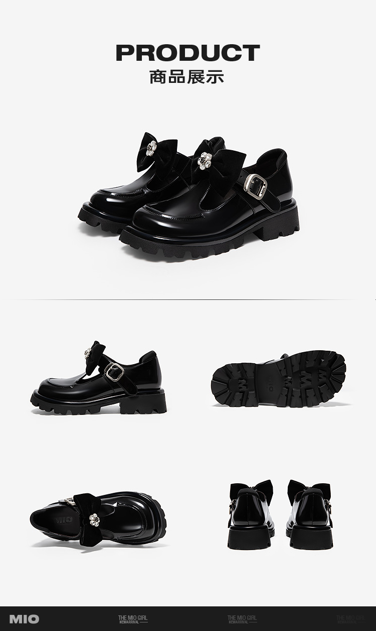 MIO米奥春季新品蝴蝶结闪钻玛丽珍鞋圆头厚底粗跟黑色单鞋女M251532652