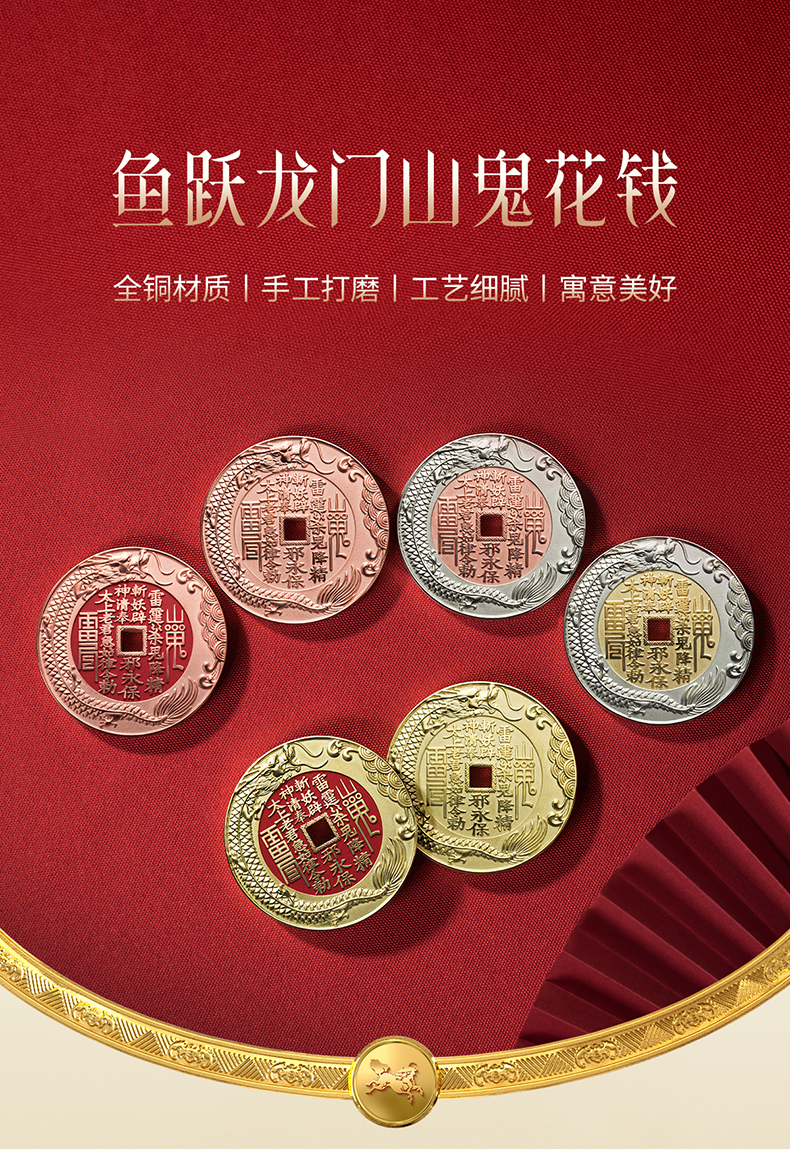 铜师傅《鱼跃龙门山鬼花钱》吉祥饰品 紫铜黄铜吊坠 工艺品挂件