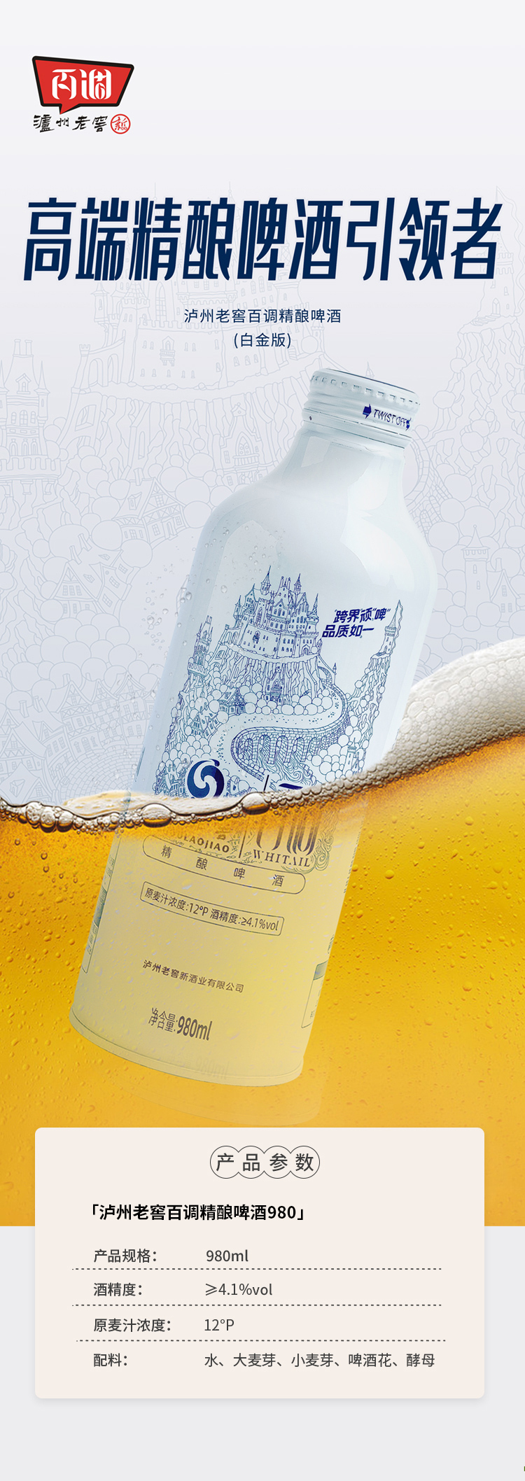 【酒厂直营】52度 泸州白瓶酒 500ml*2瓶+ 泸州老窖百调精酿啤酒 980ml*4瓶 泸州老窖官方旗舰店