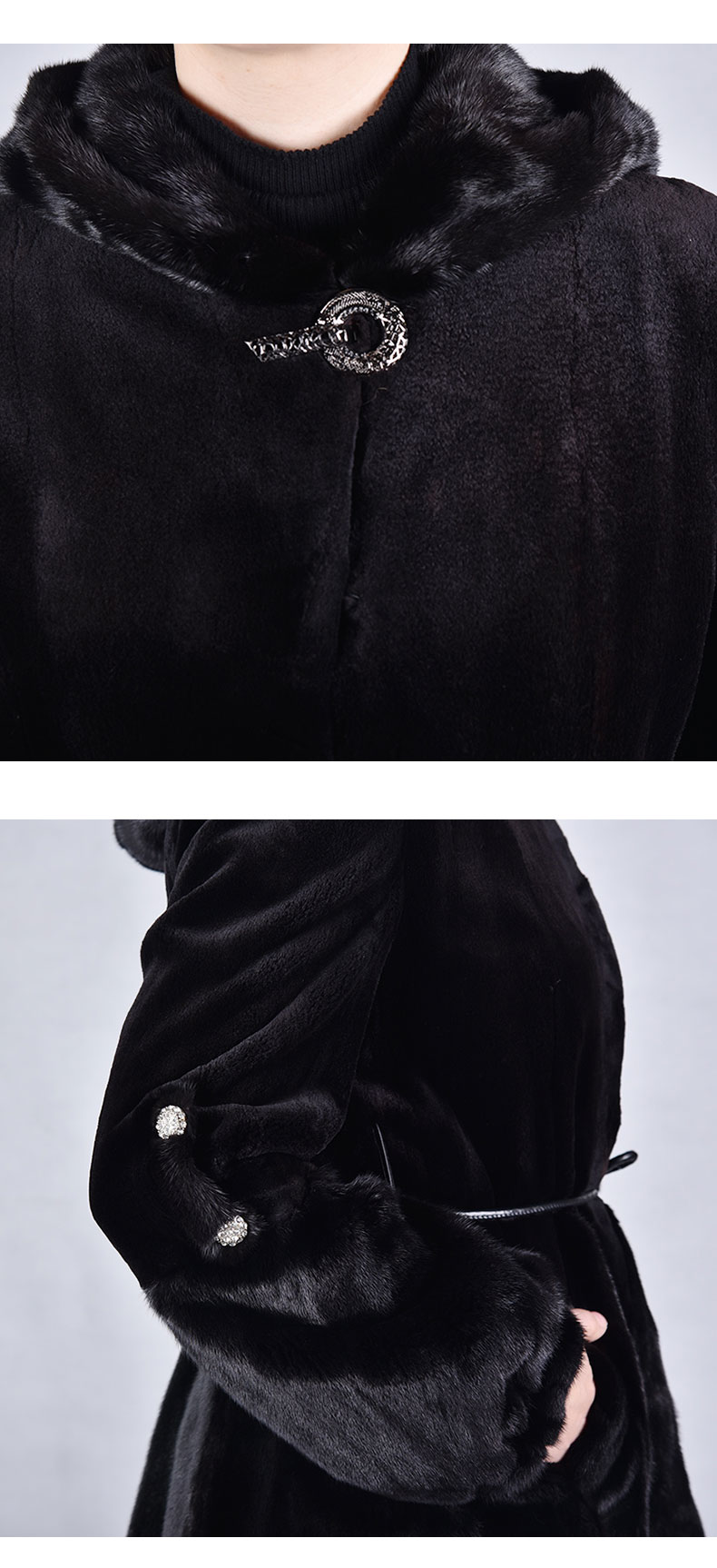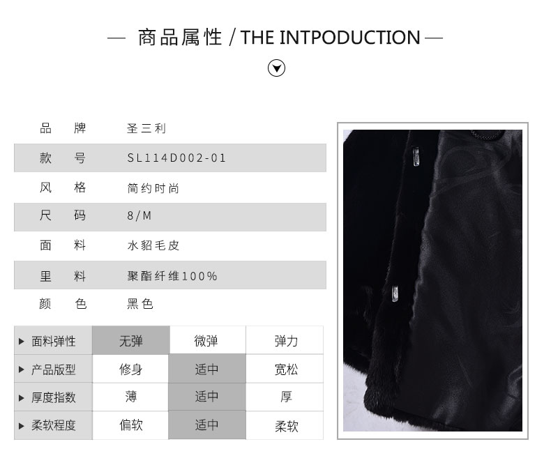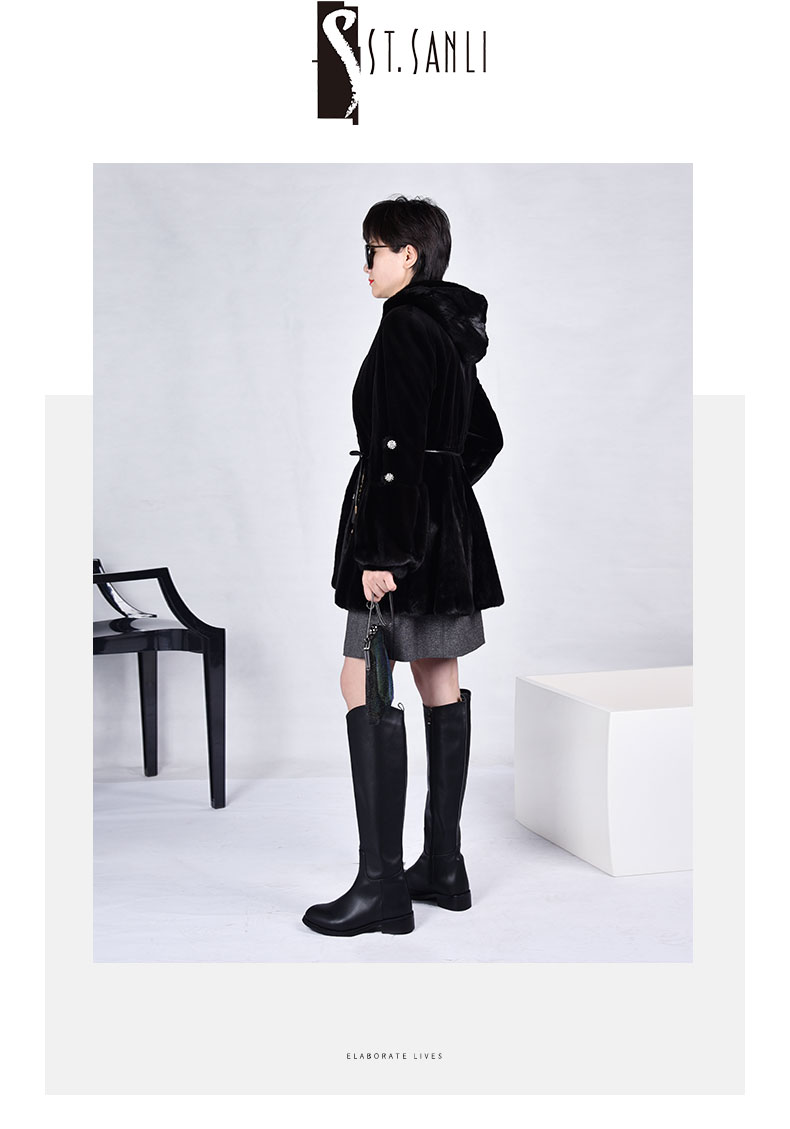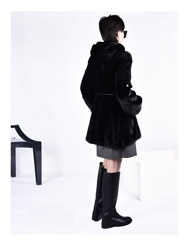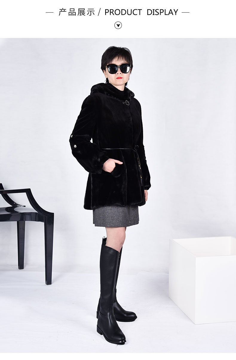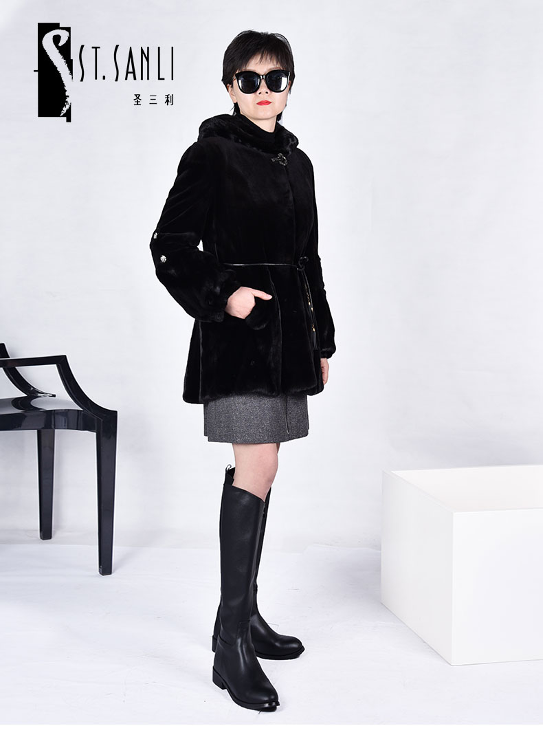 圣三利女装黑色中长款水貂皮SL114D002(01)