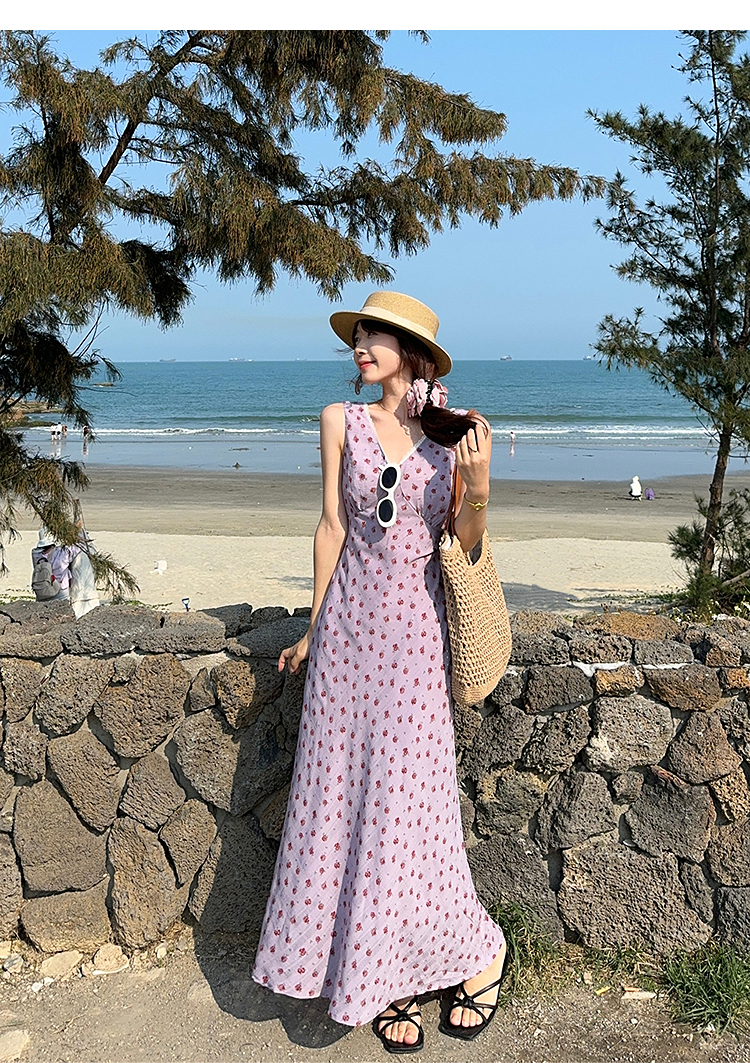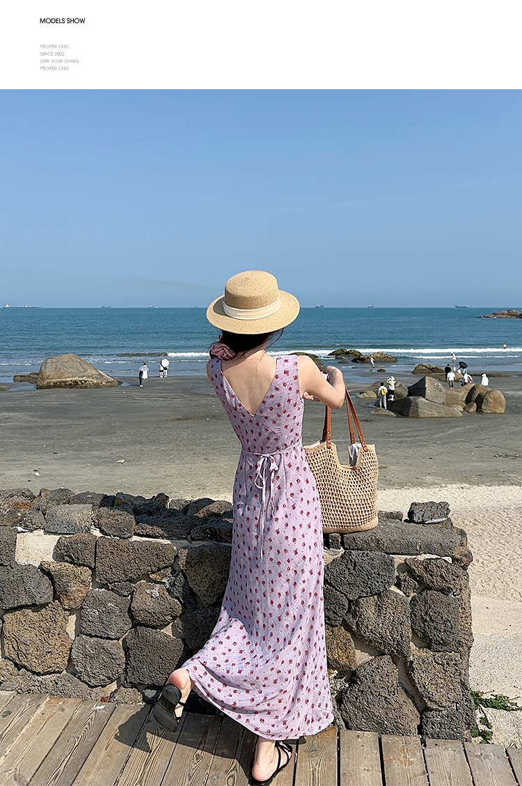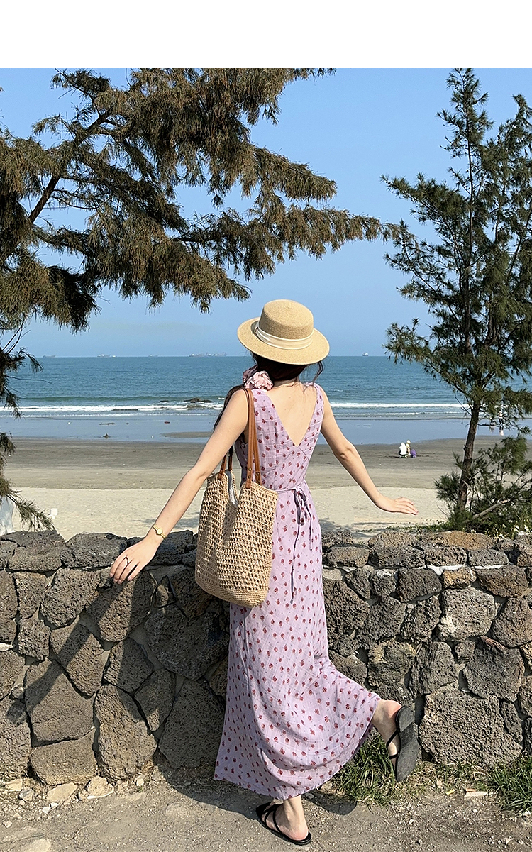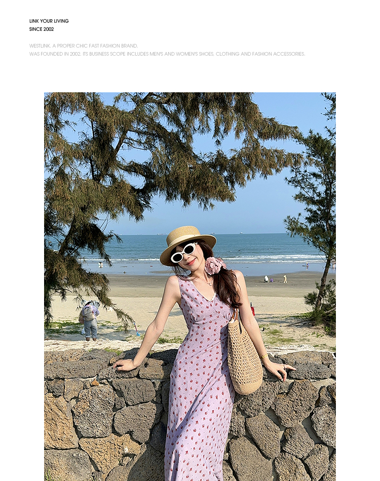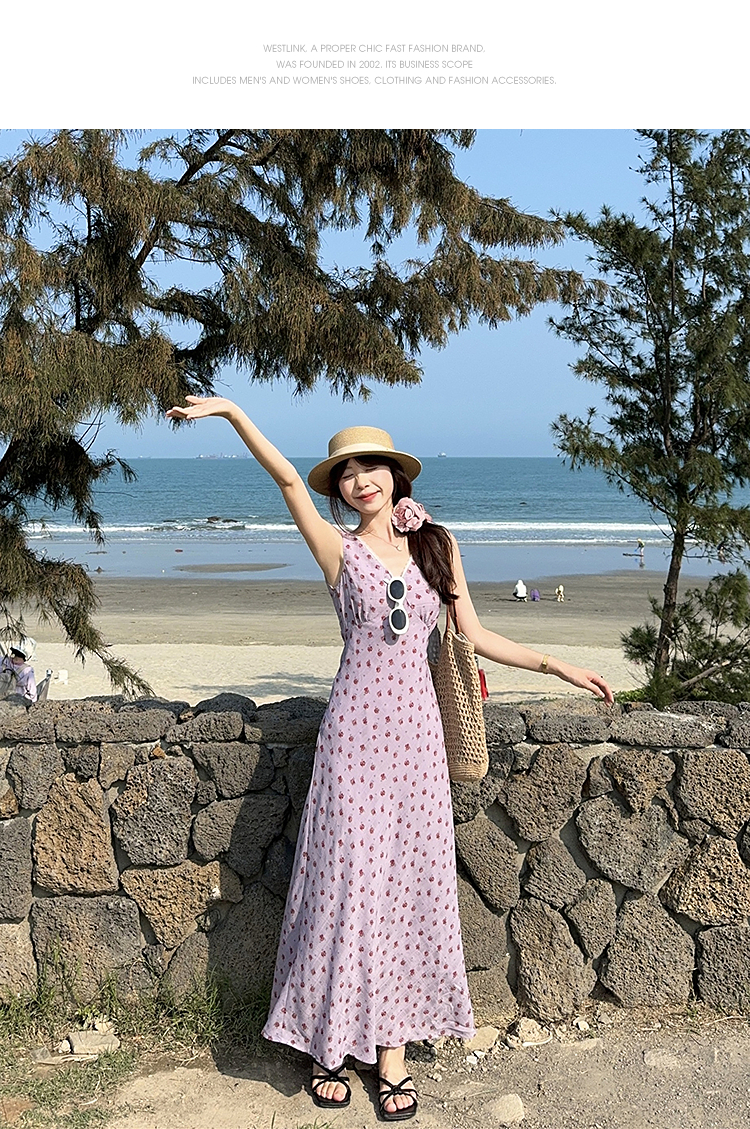 西遇法式波点连衣裙女夏季新款海边度假旅游收腰v领吊带裙SS050863