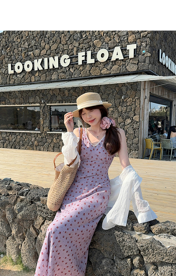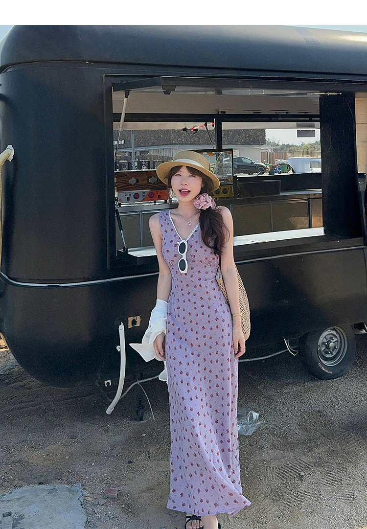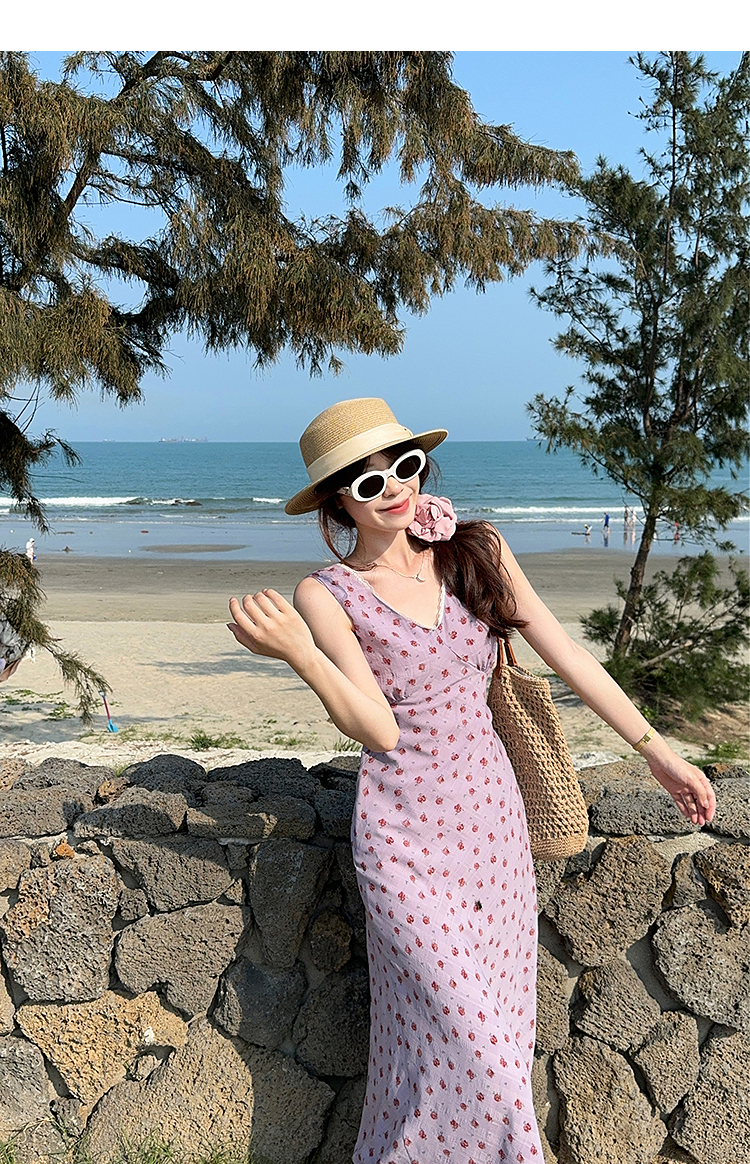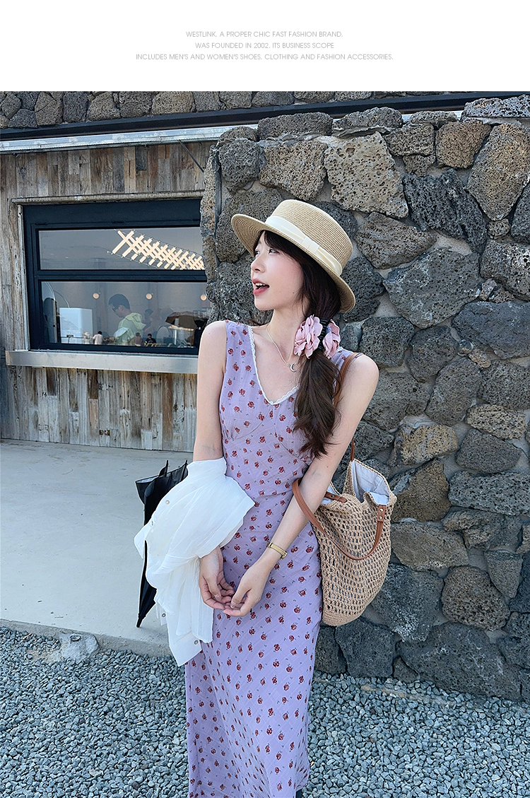 西遇法式波点连衣裙女夏季新款海边度假旅游收腰v领吊带裙SS050863