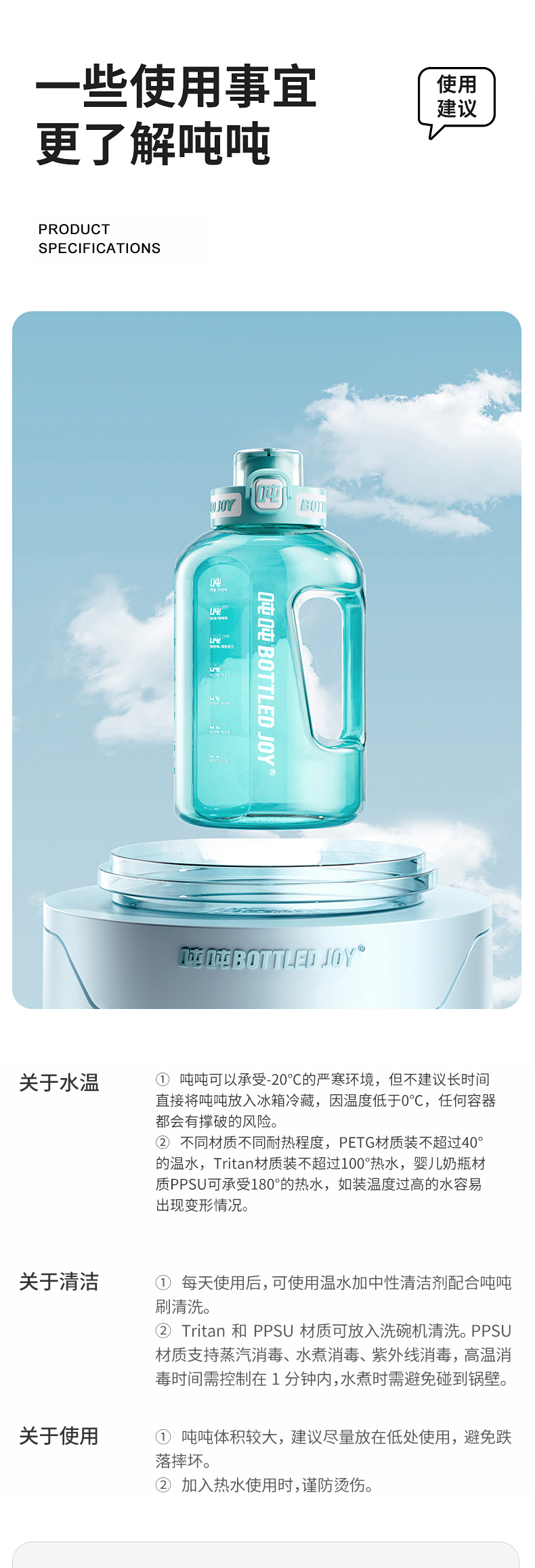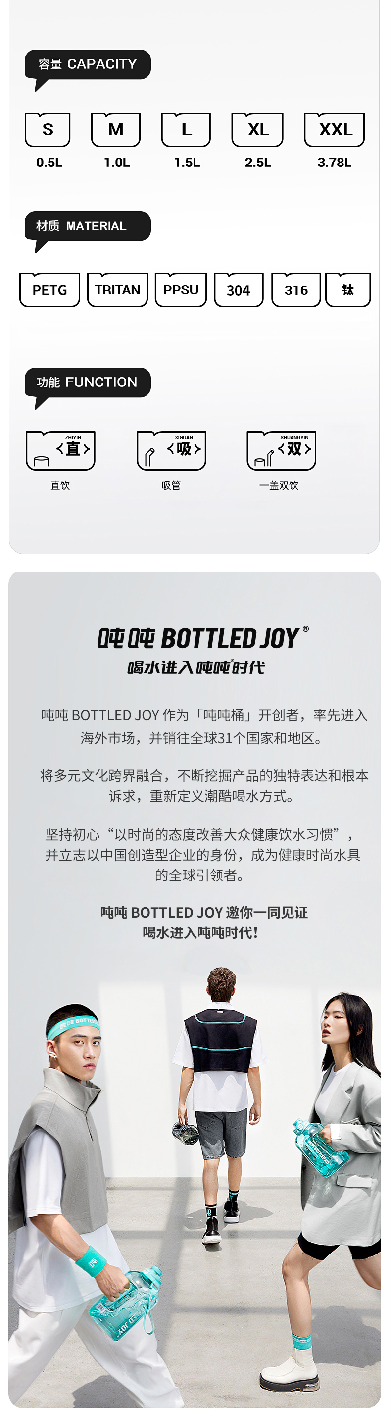 - 吨吨BOTTLED JOY作为吨吨桶开创者,重新定义潮酷喝水方式,喝水进入吨吨时代!正牌吨吨桶,吨吨BOTTLED JOY