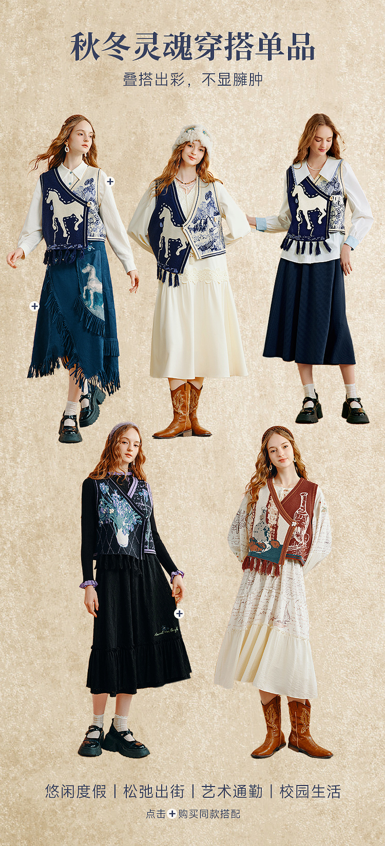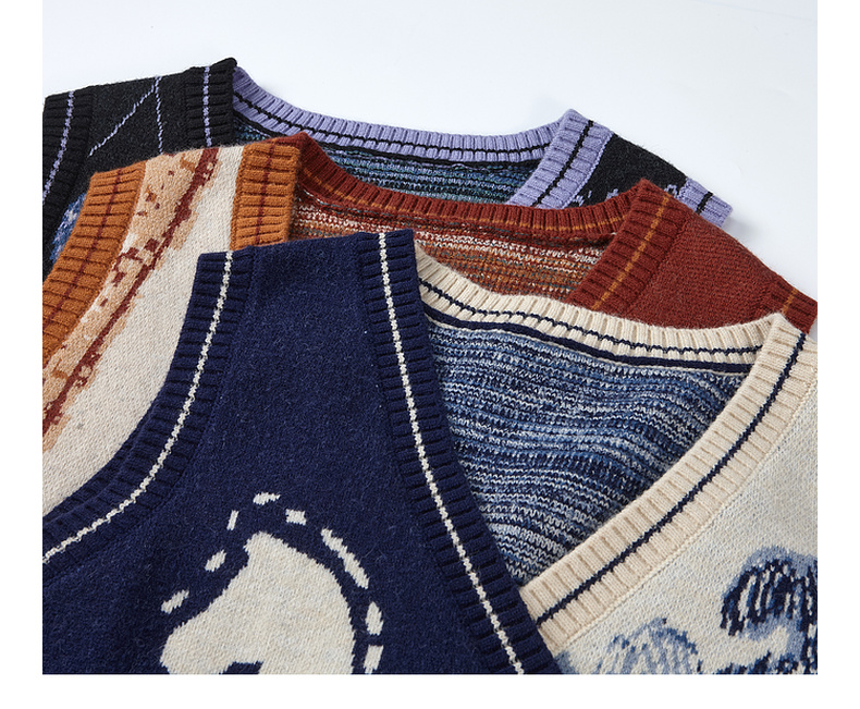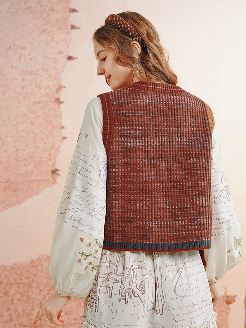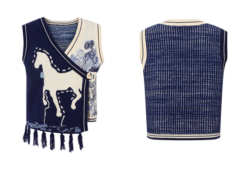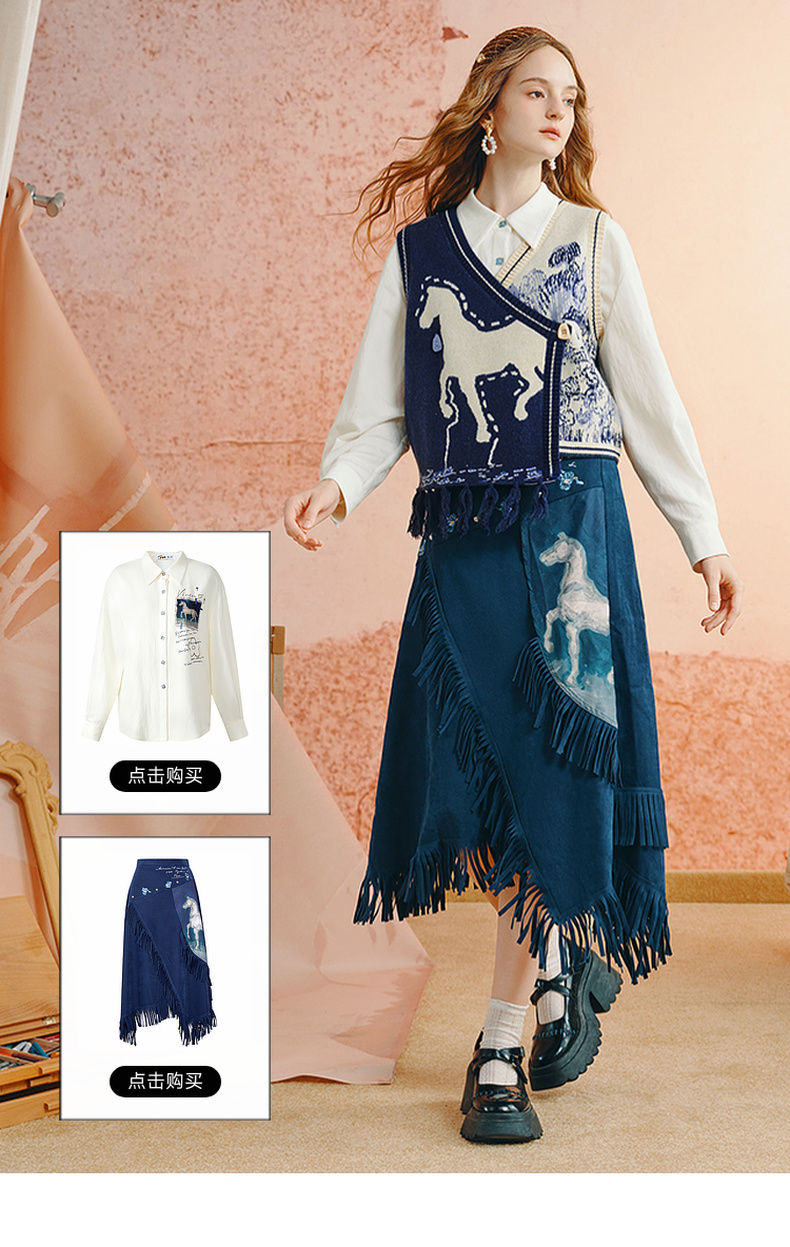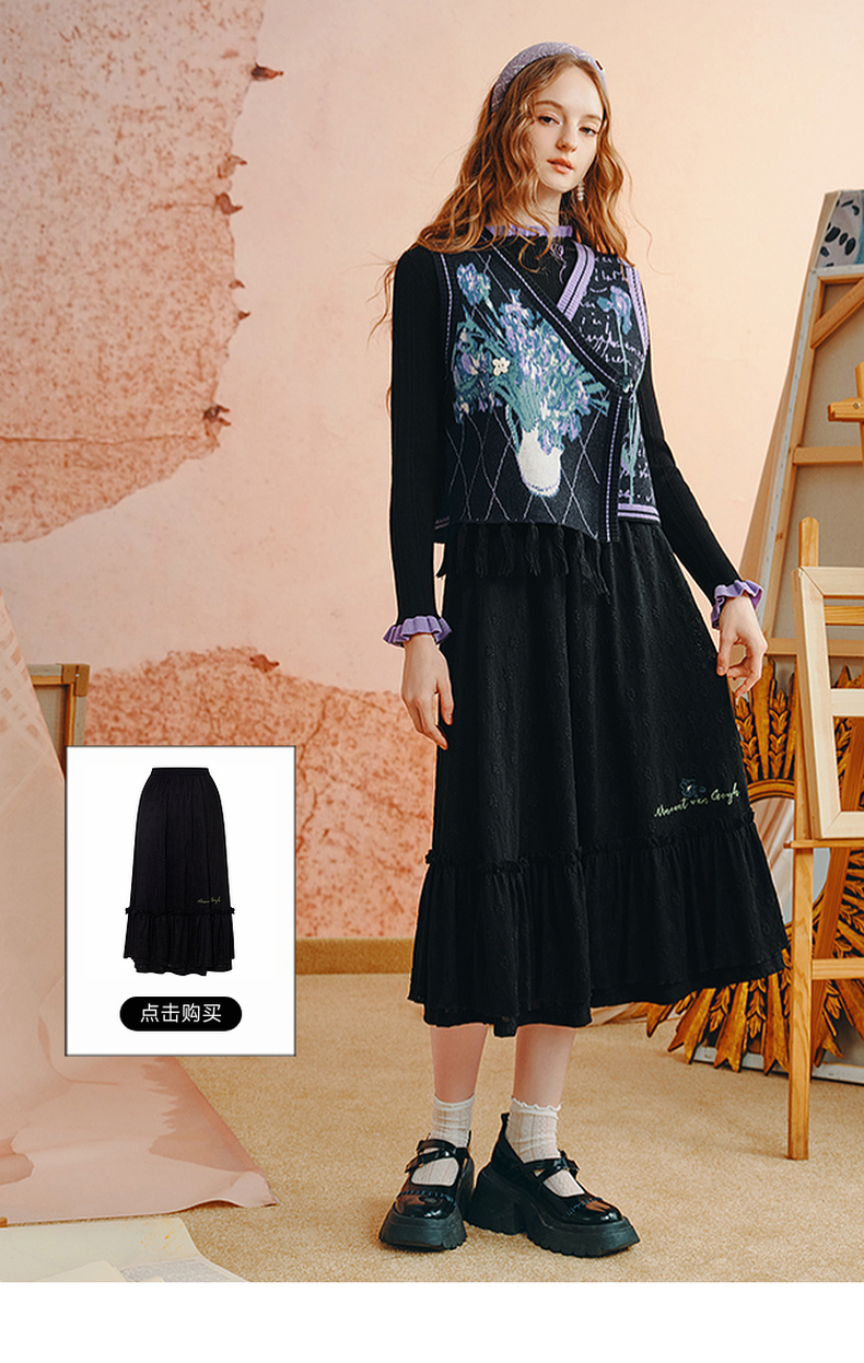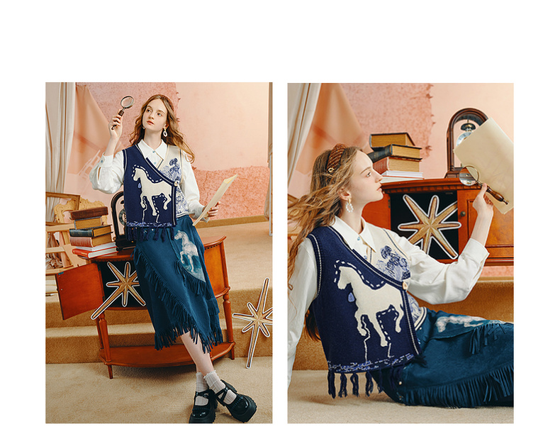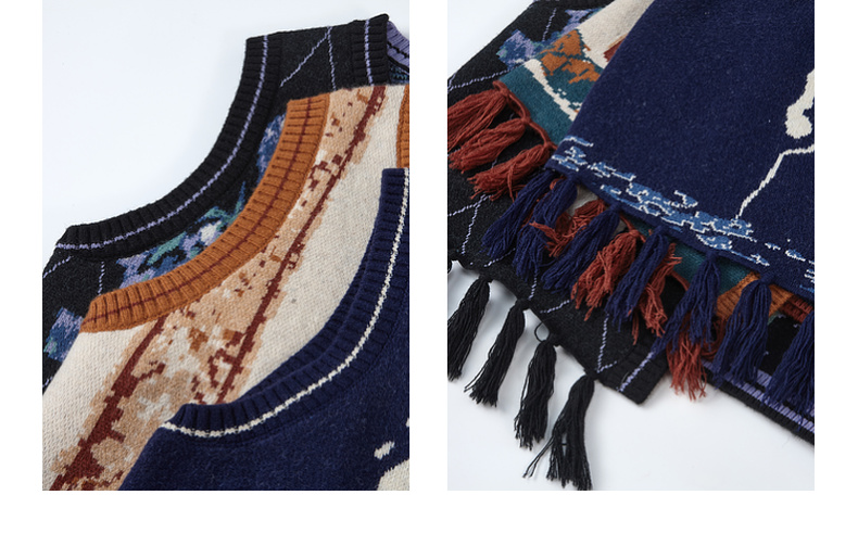 两三事梵高文艺旷野诗行2025秋季新款流苏下摆花色无袖针织开衫女