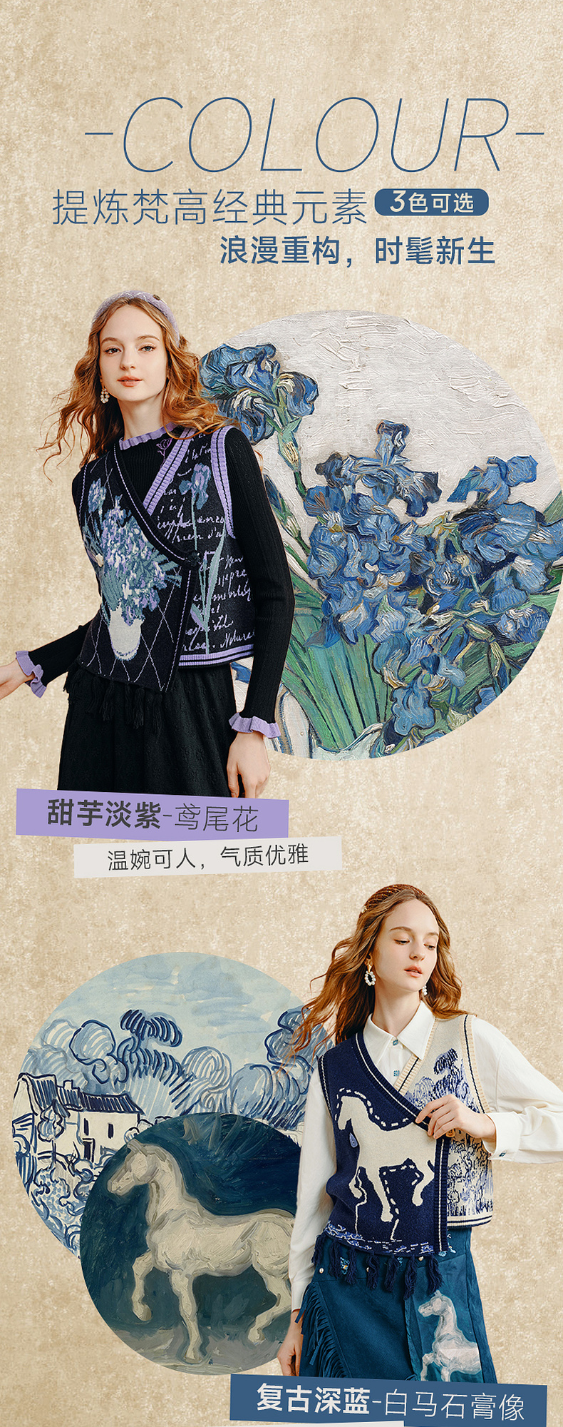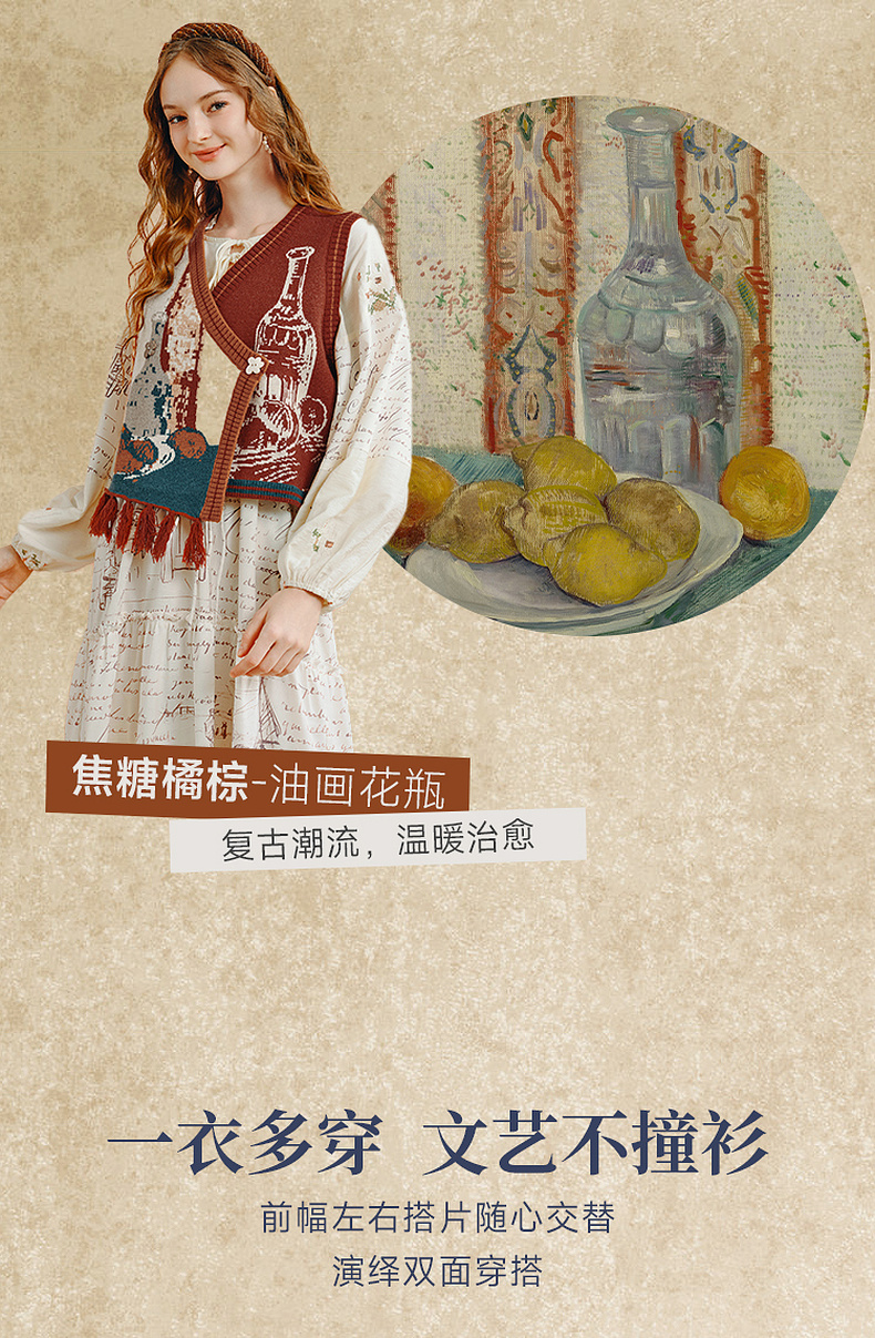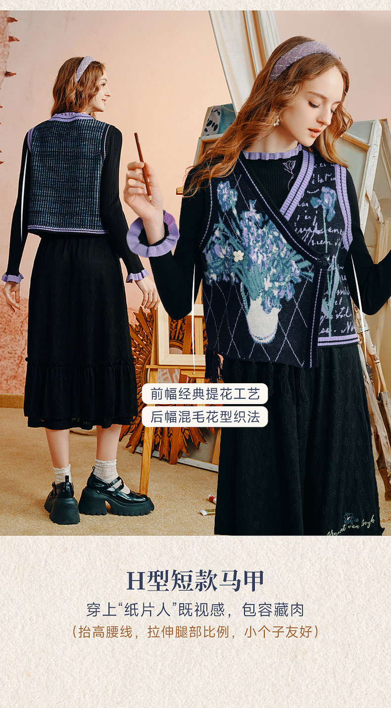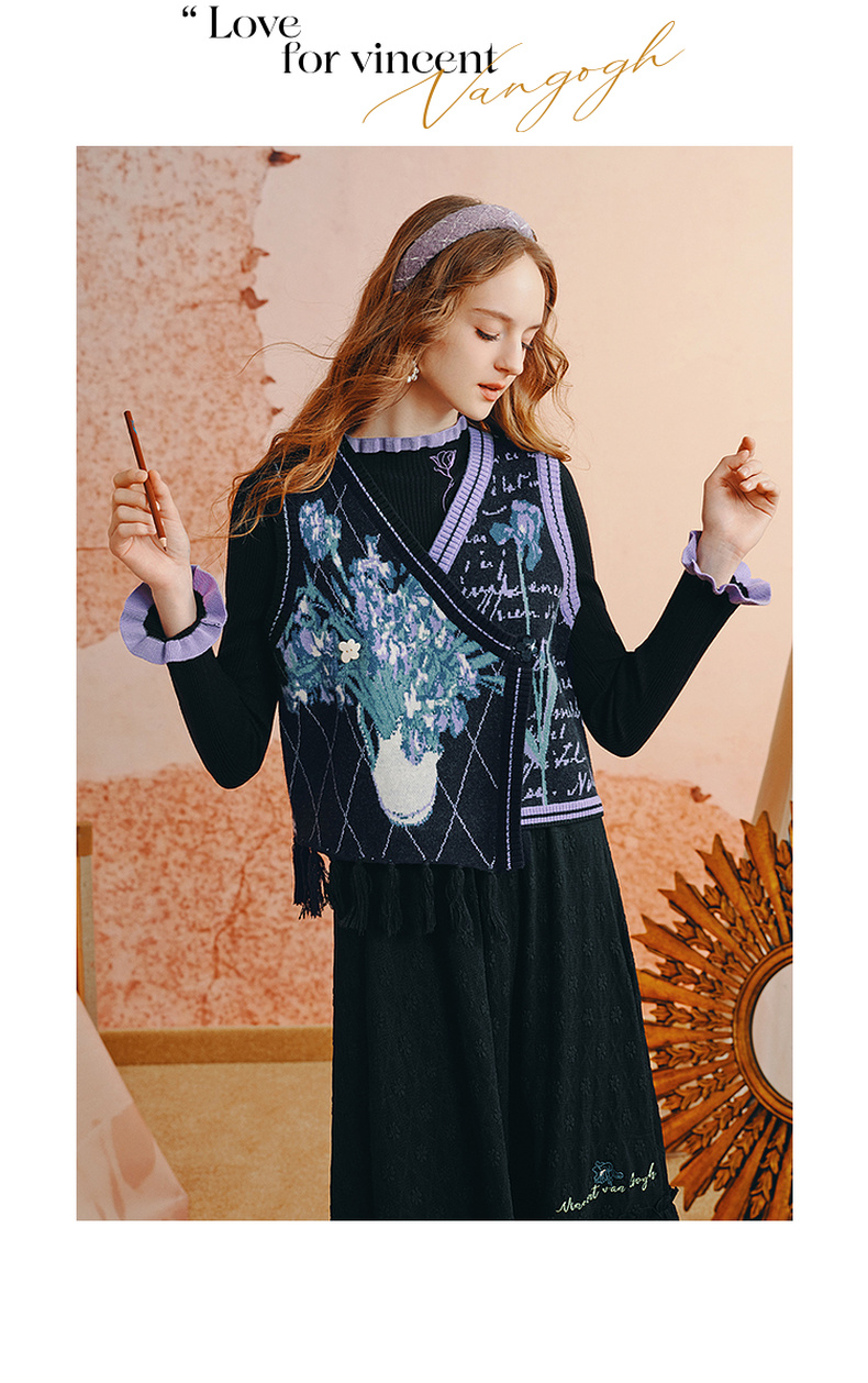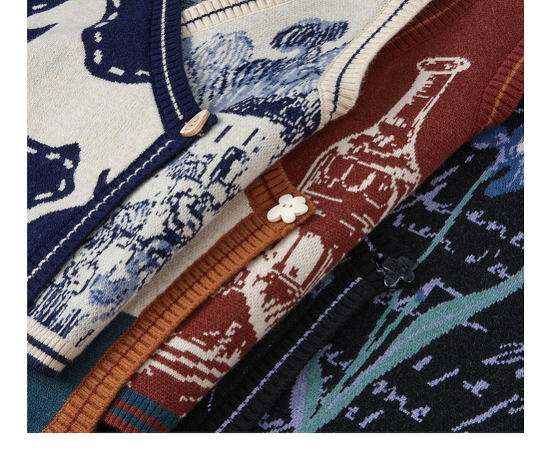 两三事梵高艺术灿烂与偏执秋复古开衫毛衣外套女慵懒风设计感小众