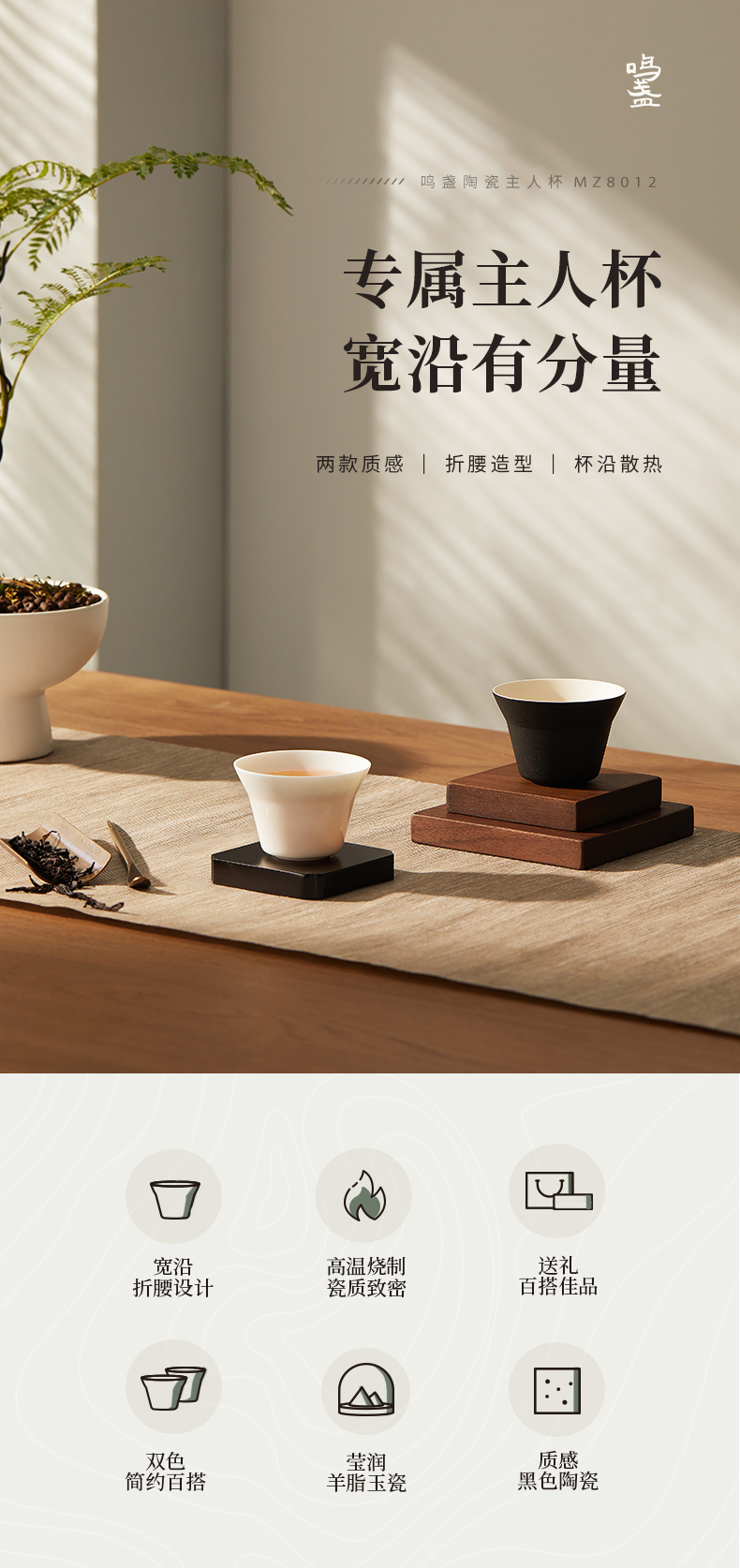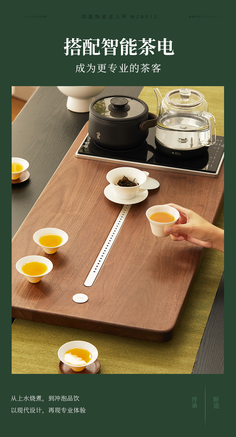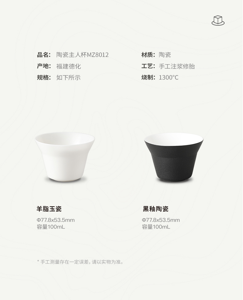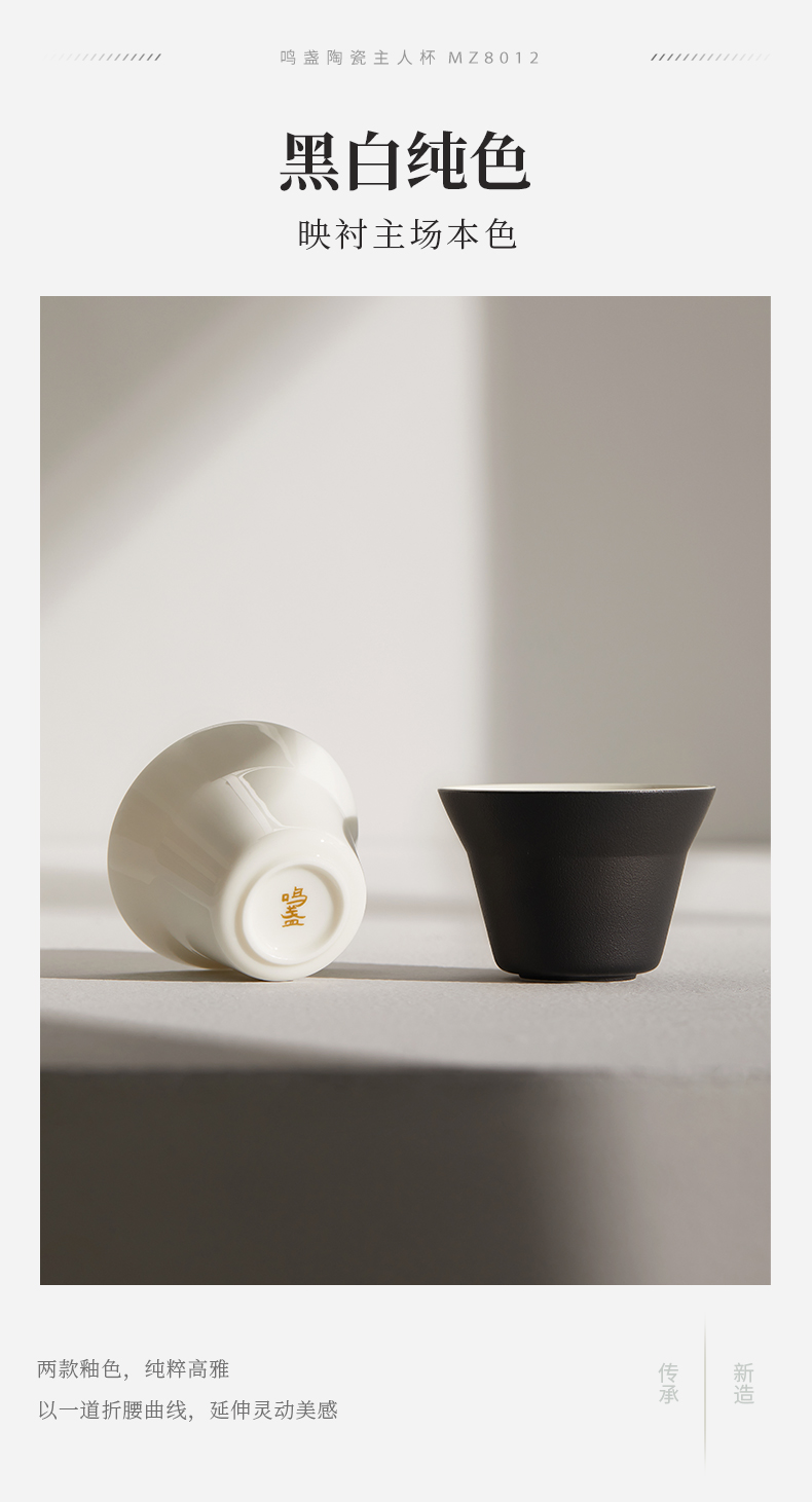 【羊脂玉瓷】鸣盏陶瓷主人杯功夫茶具茶杯品茗杯黑釉陶瓷杯