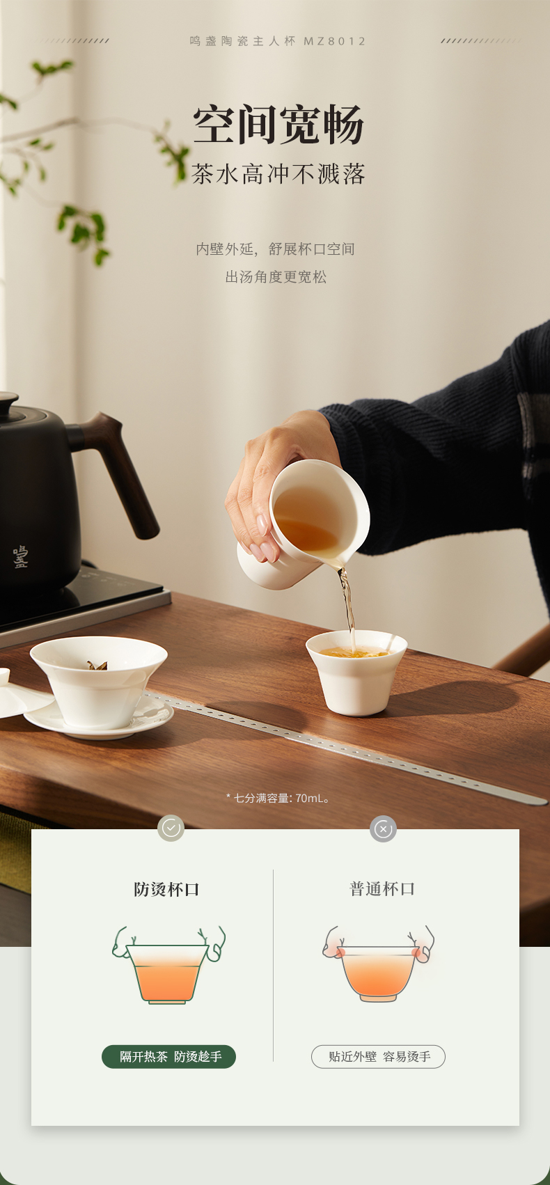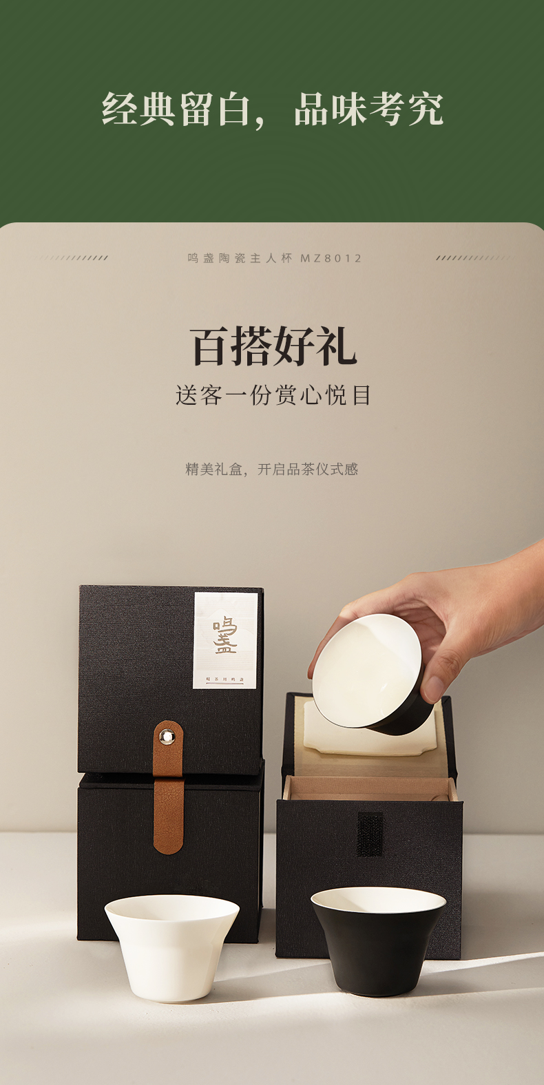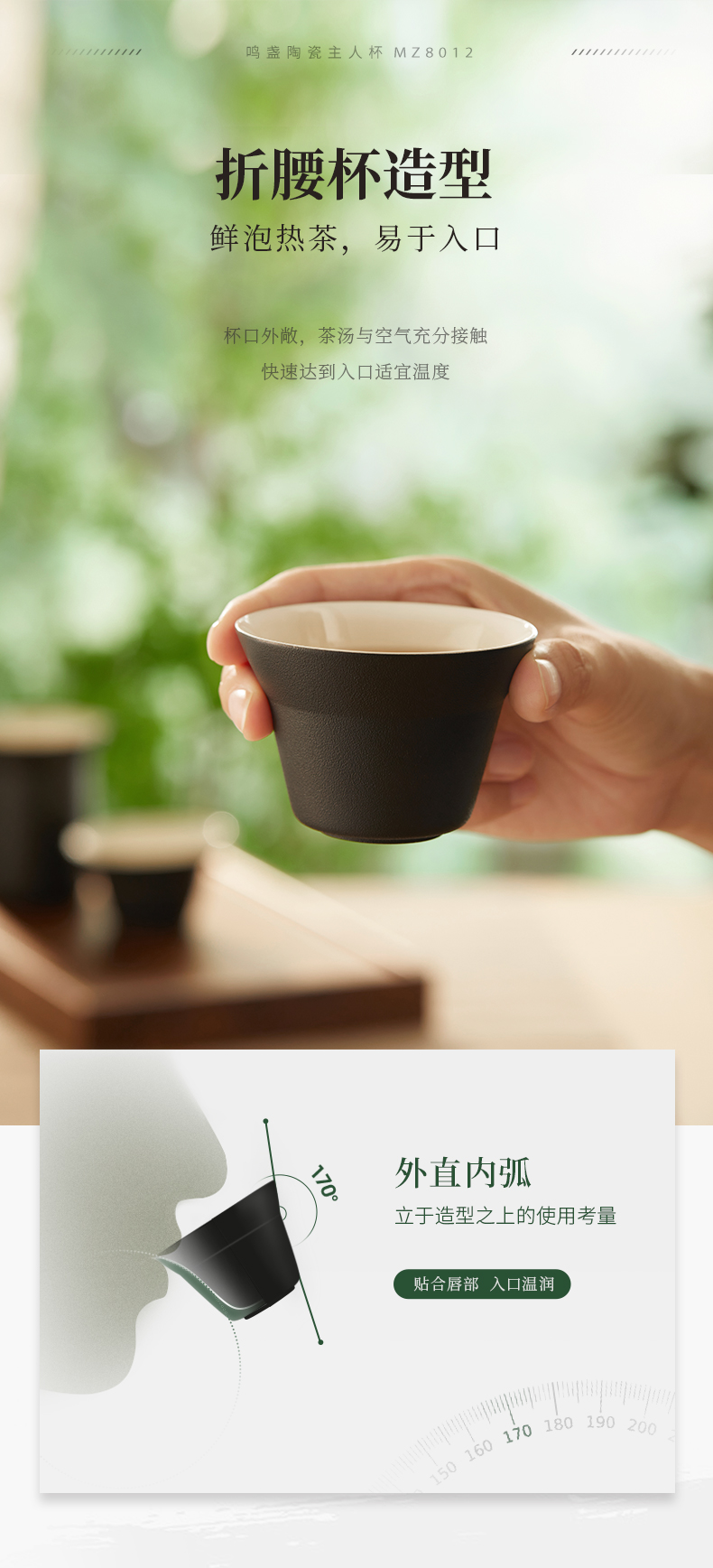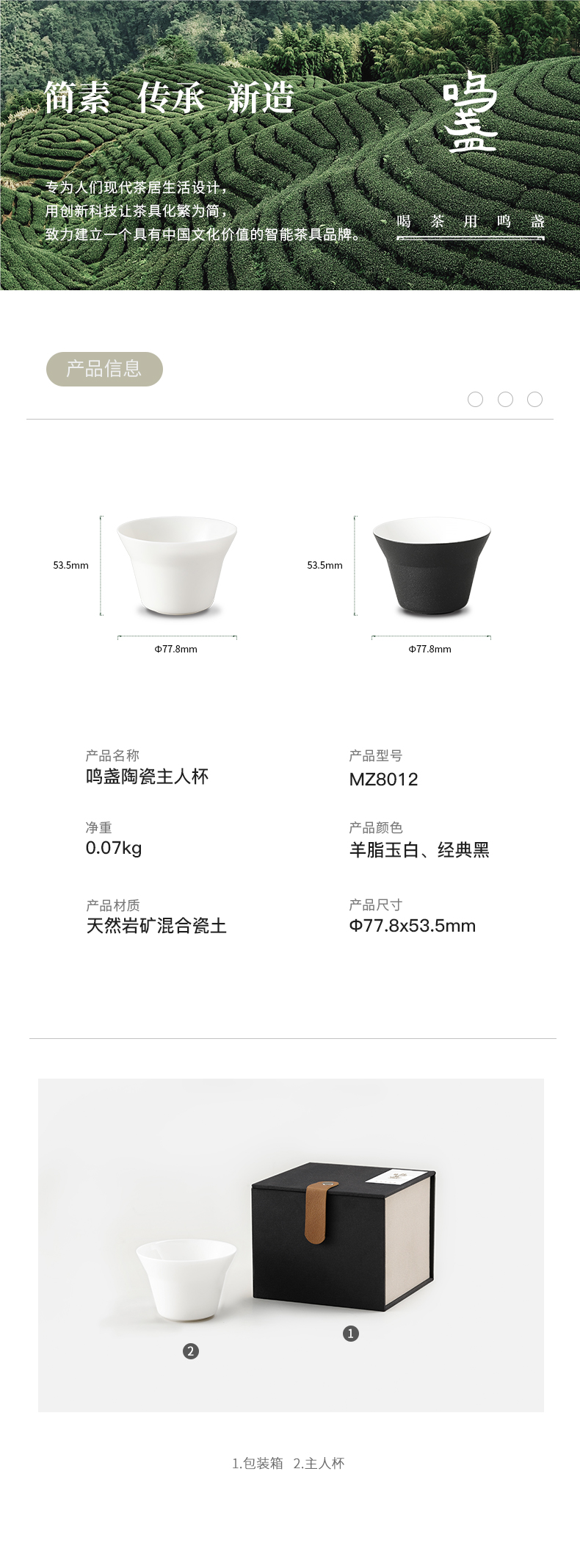 【羊脂玉瓷】鸣盏陶瓷主人杯功夫茶具茶杯品茗杯黑釉陶瓷杯