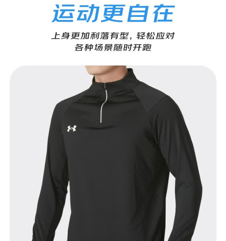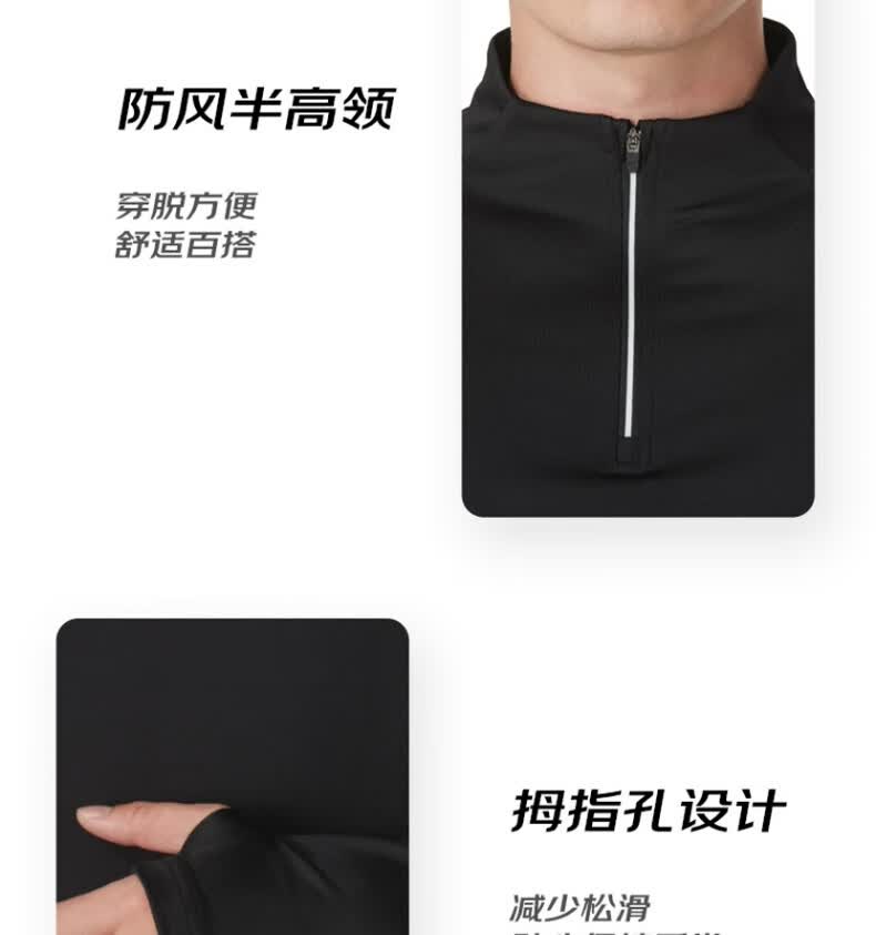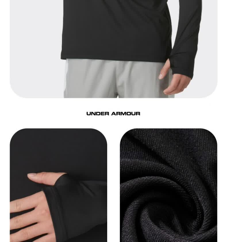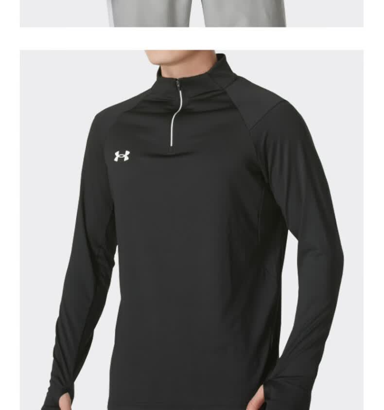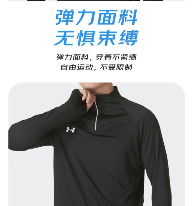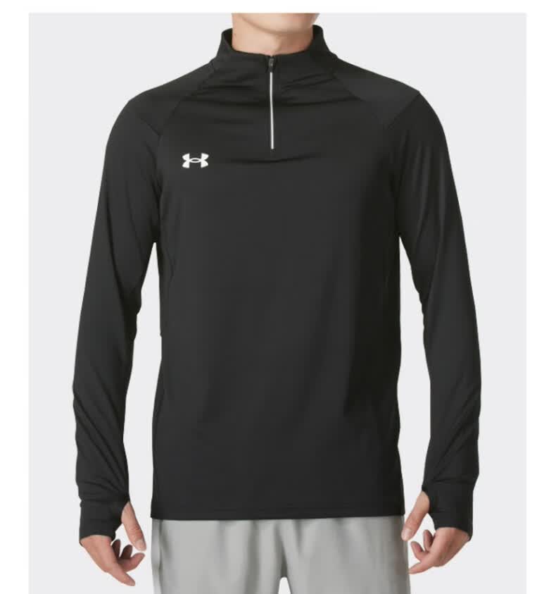 安德玛安德玛长袖T恤男士弹力打底衫半拉链立领速干健身服跑步运动上衣 黑色/指洞款/24600603
