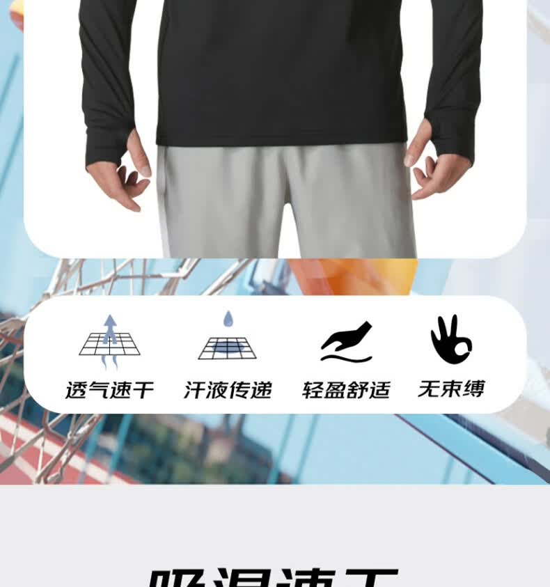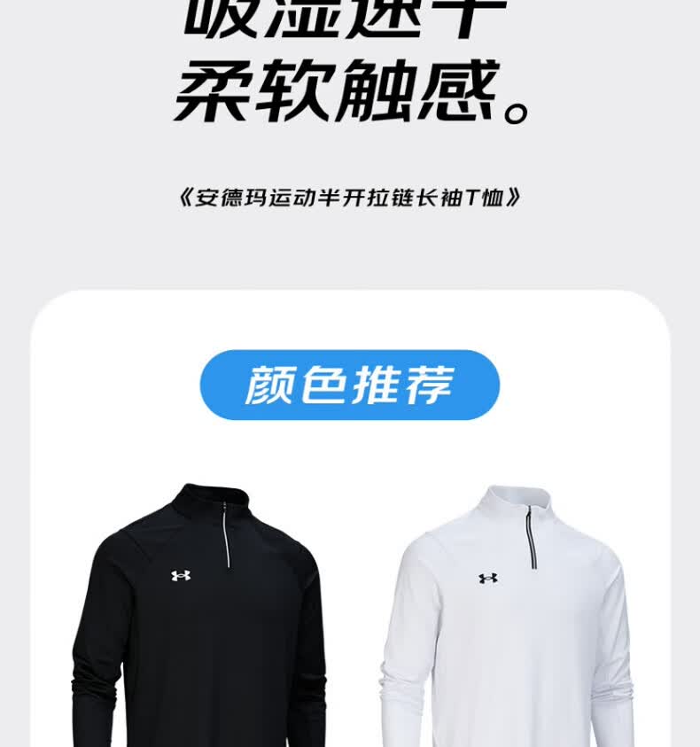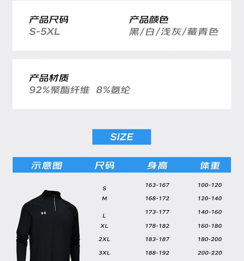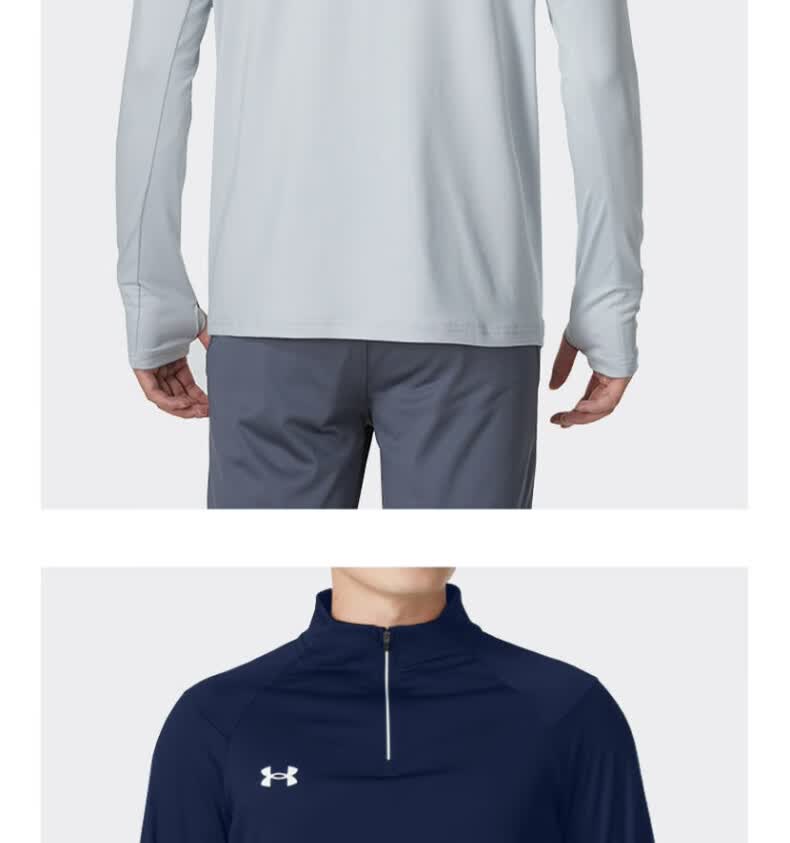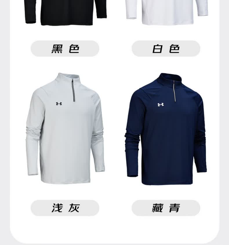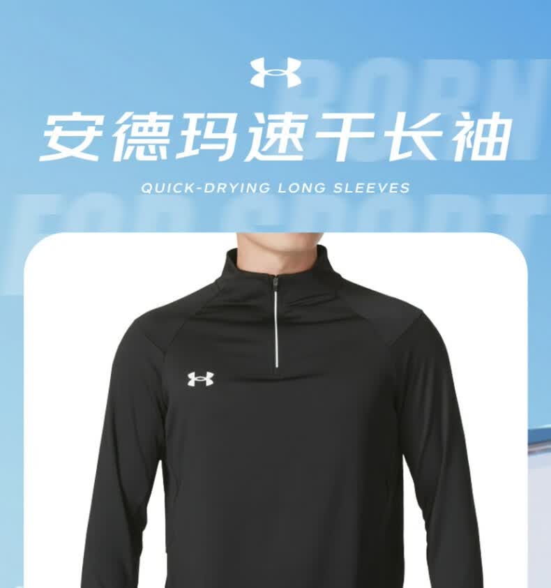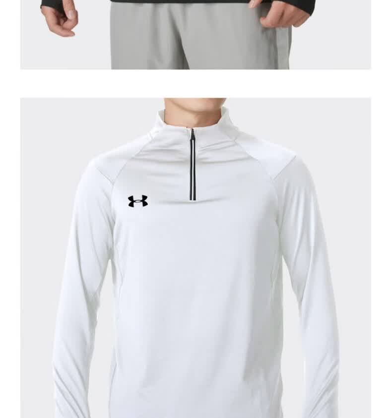 安德玛安德玛长袖T恤男士弹力打底衫半拉链立领速干健身服跑步运动上衣 黑色/指洞款/24600603