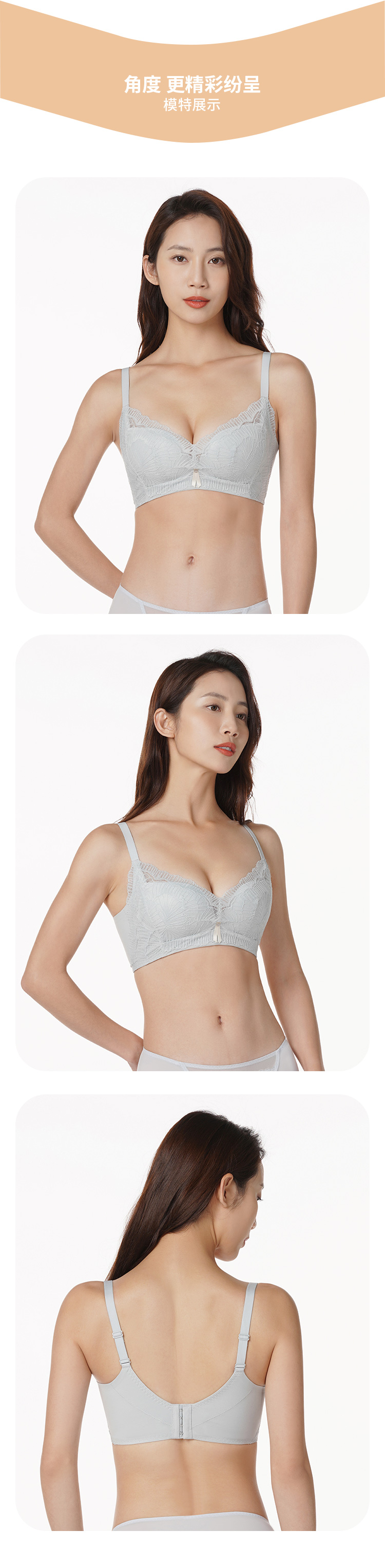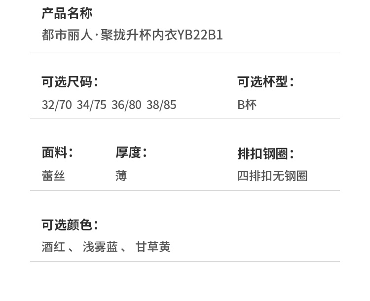 都市丽人聚拢升杯聚拢杯B杯常规内衣蕾丝薄3/4杯文胸四排扣无钢圈YB22B1