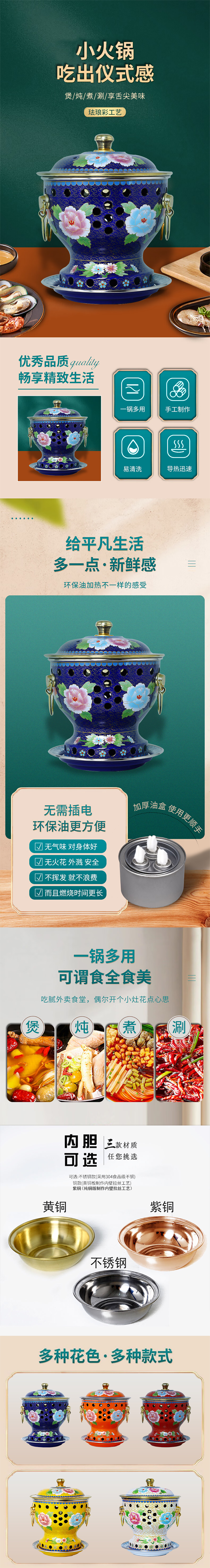 【推荐】鼎铜匠人景泰蓝珐琅纯铜单人火锅 (五色可选)