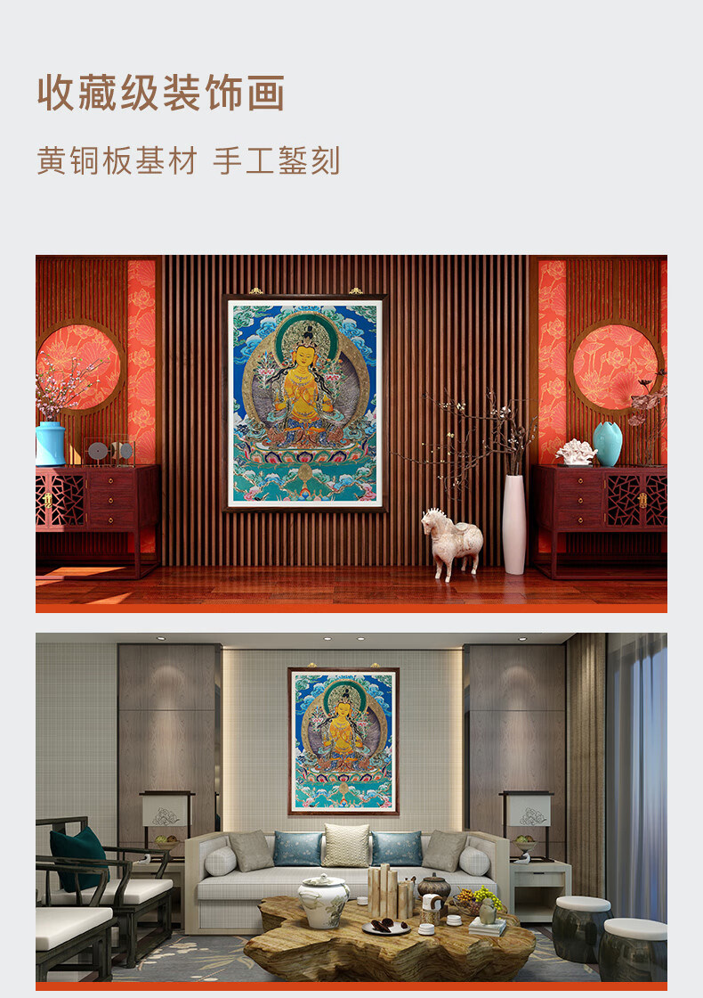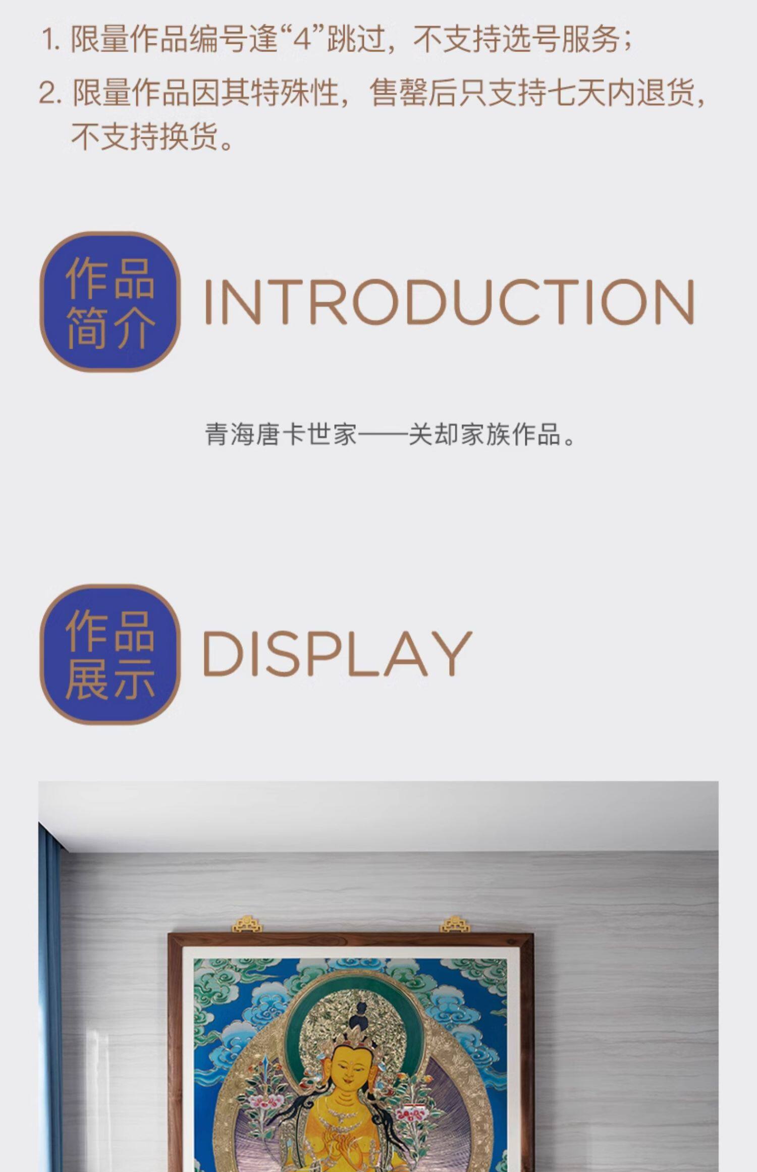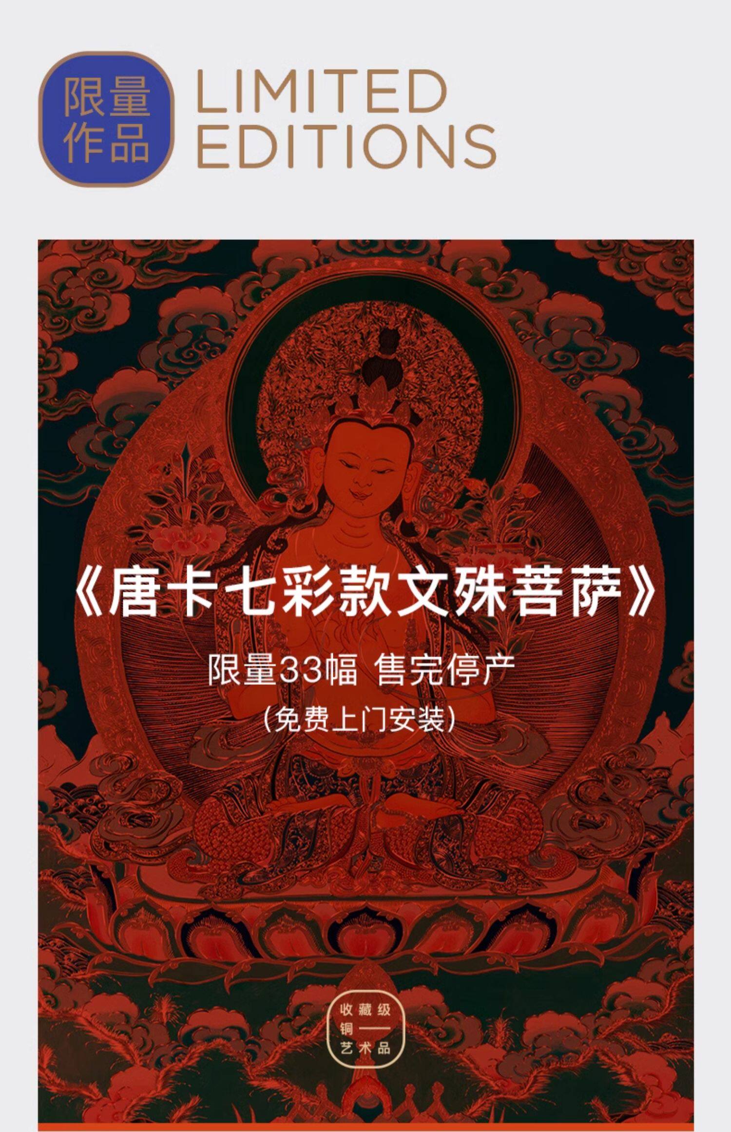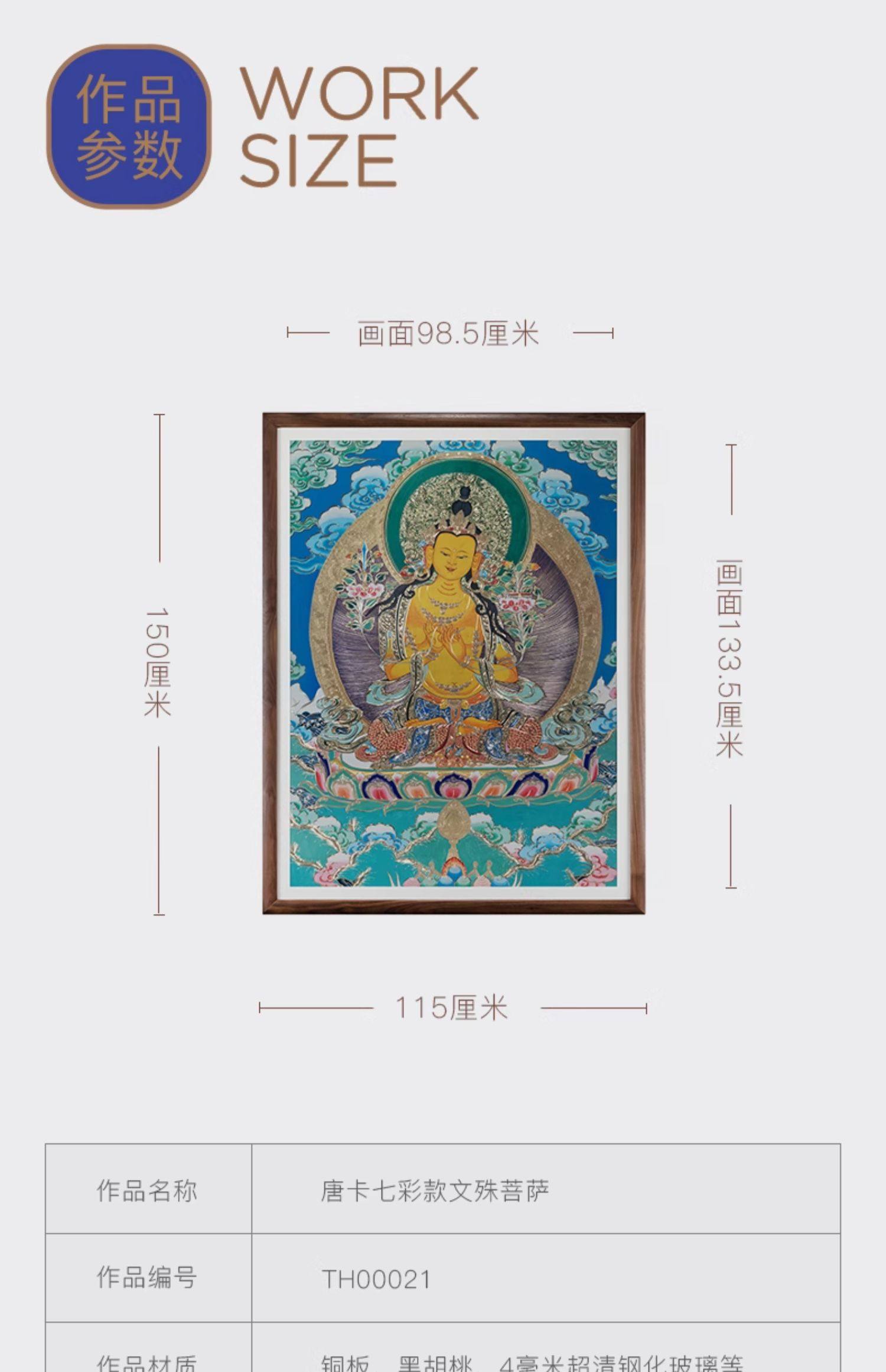 太铜手工錾刻 铜雕画《唐卡七彩款文殊菩萨》限售33幅 装饰画