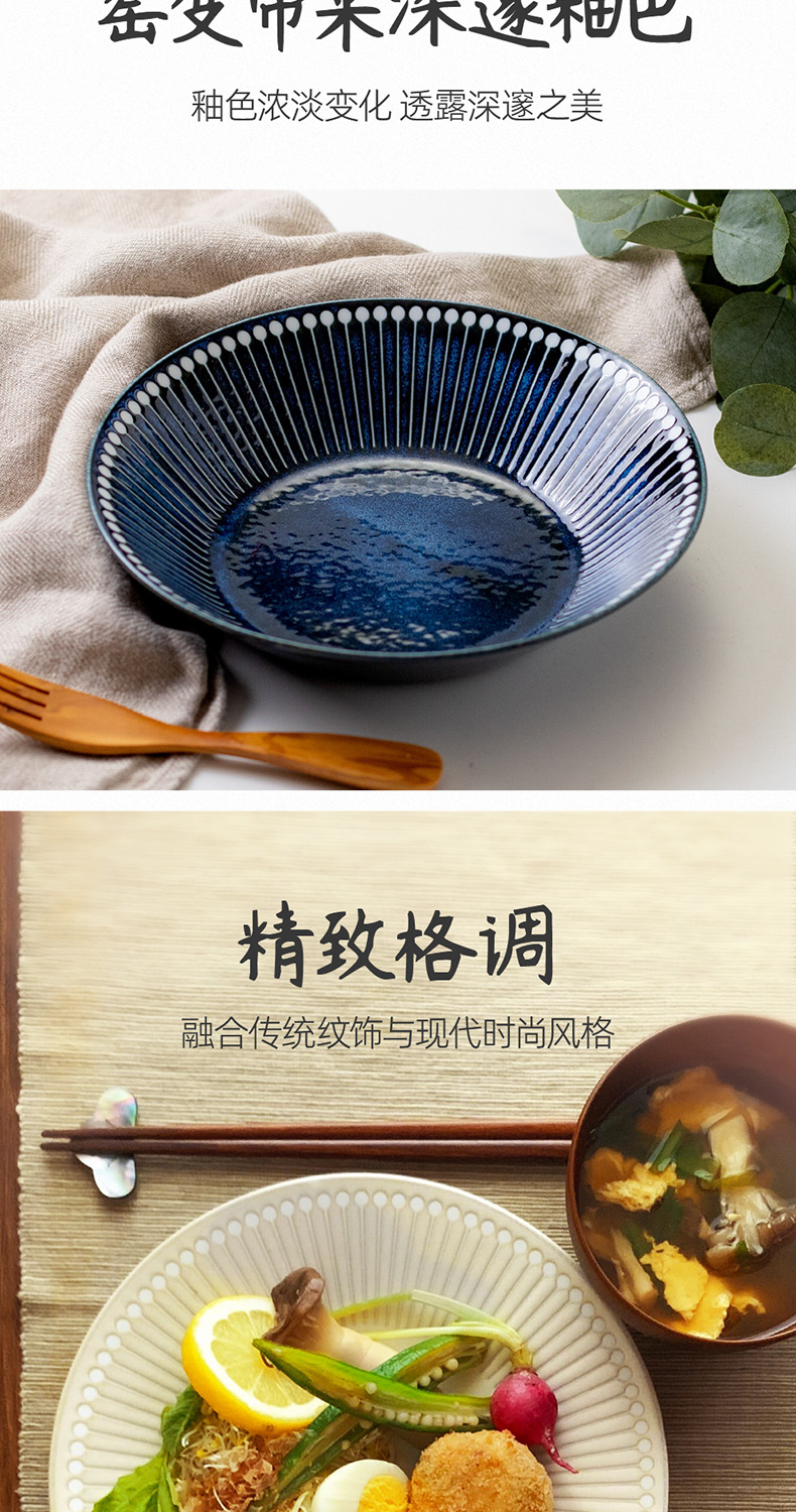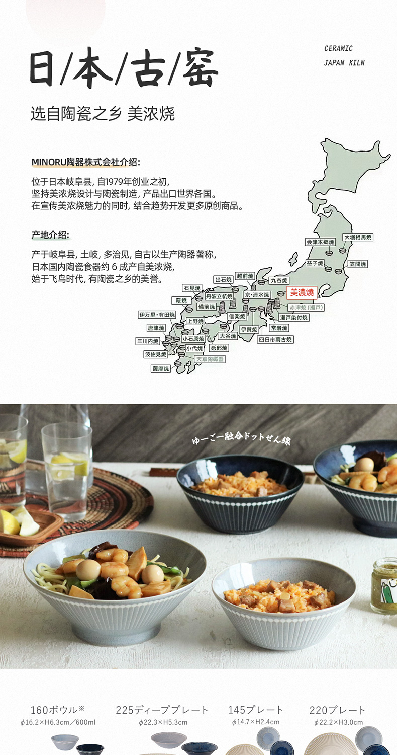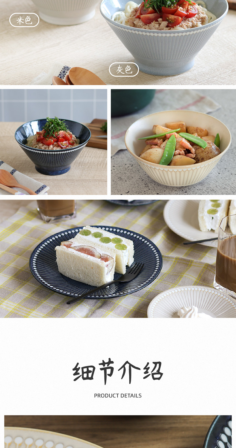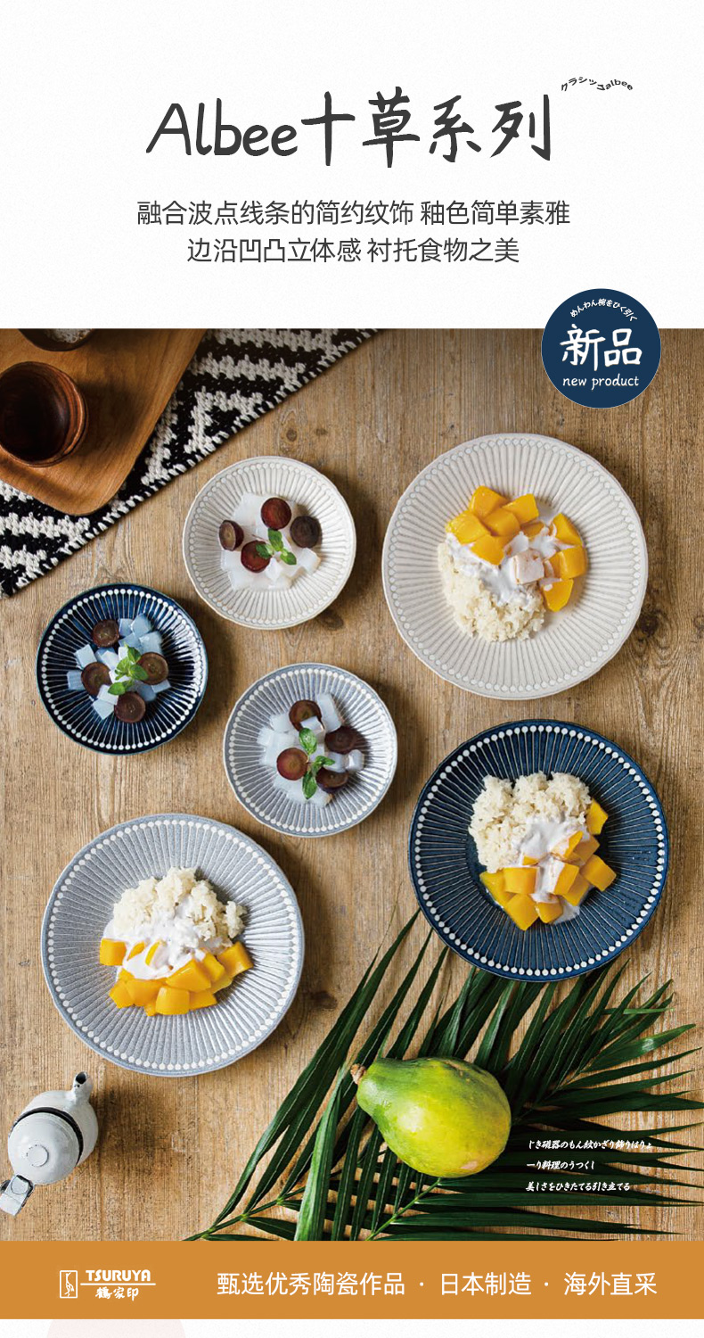 日本进口美浓烧 Albee灰十草 日式陶瓷饭碗盘子高级感西餐牛排盘深盘菜盘