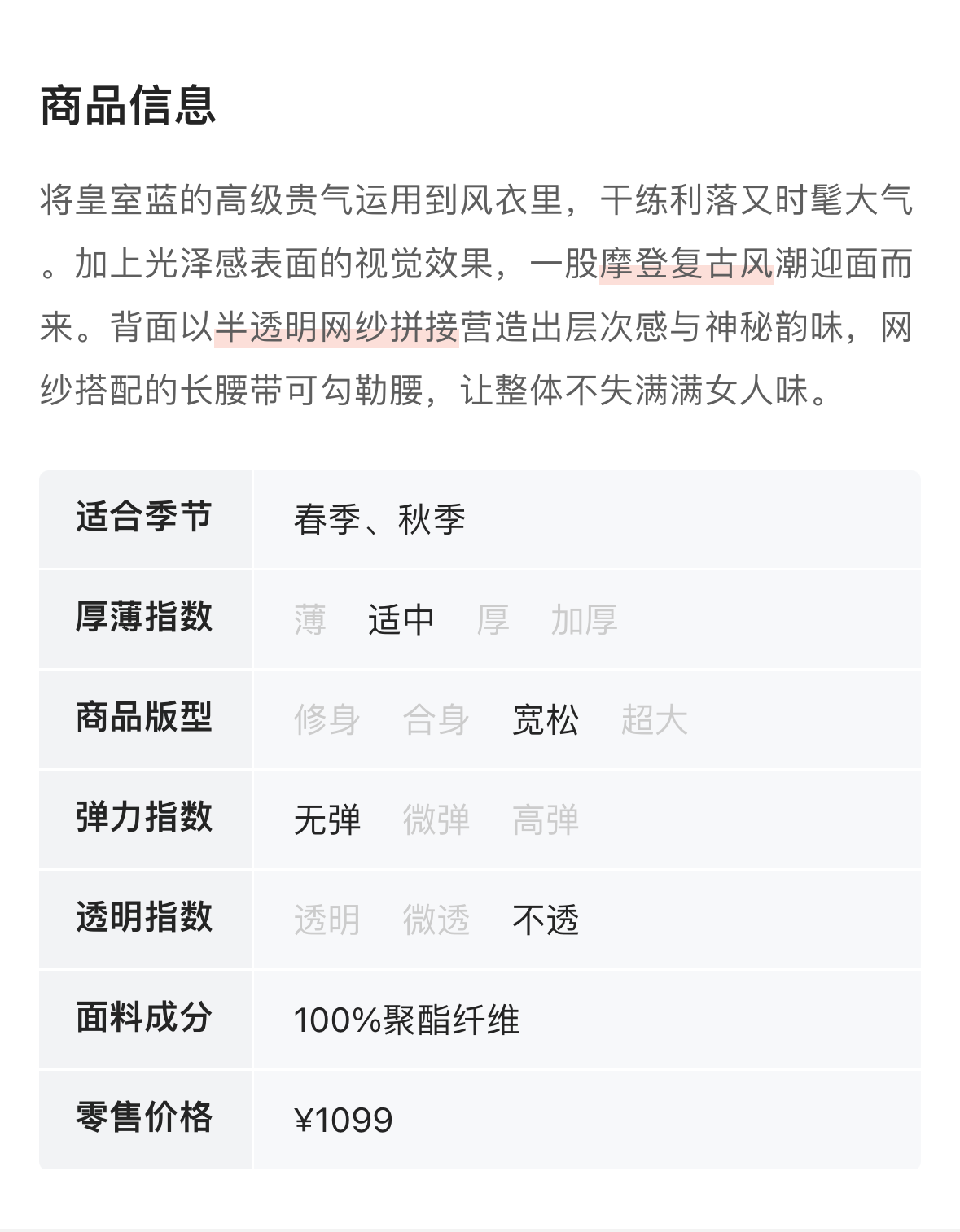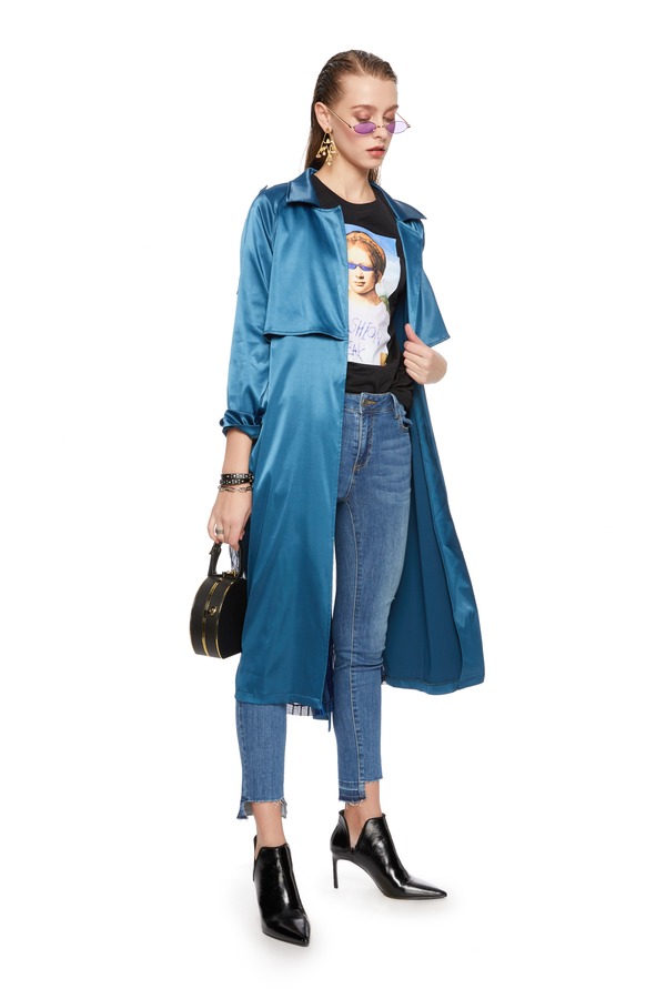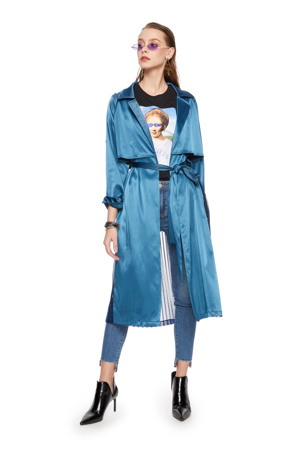 OCTAVIA 蓝色光泽感拼接风衣 6290
