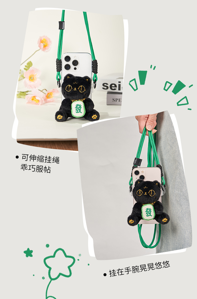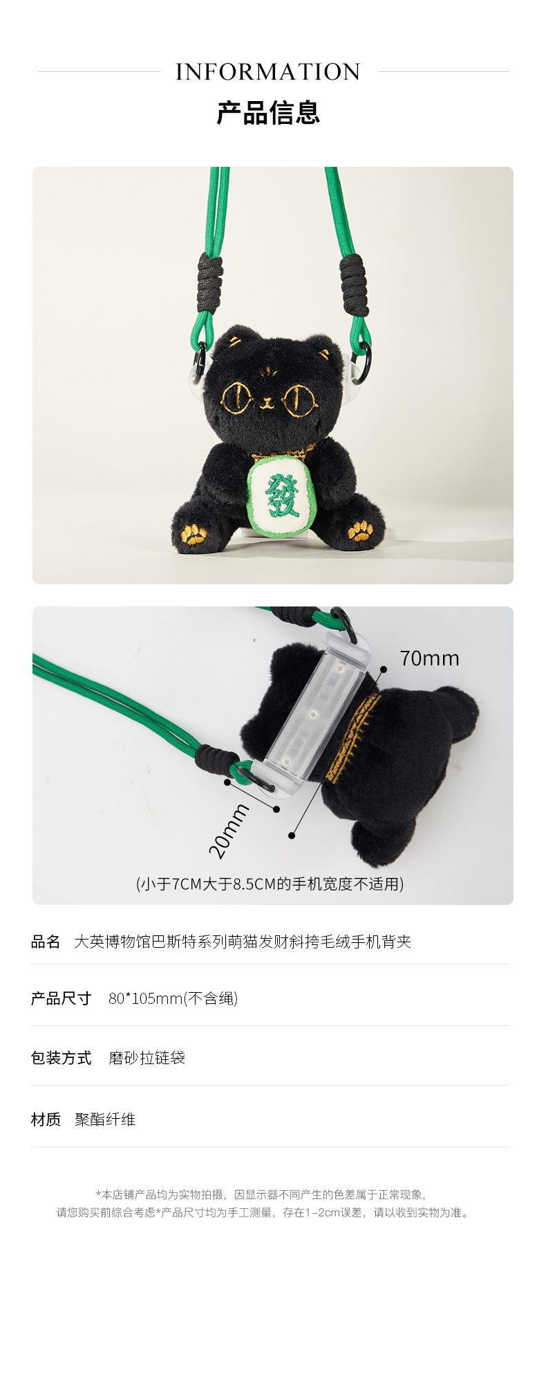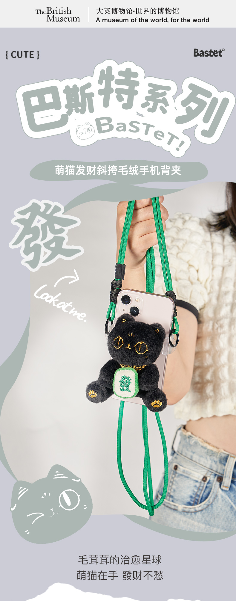 大英博物馆 巴斯特系列 萌猫发财斜挎毛绒 手机背夹