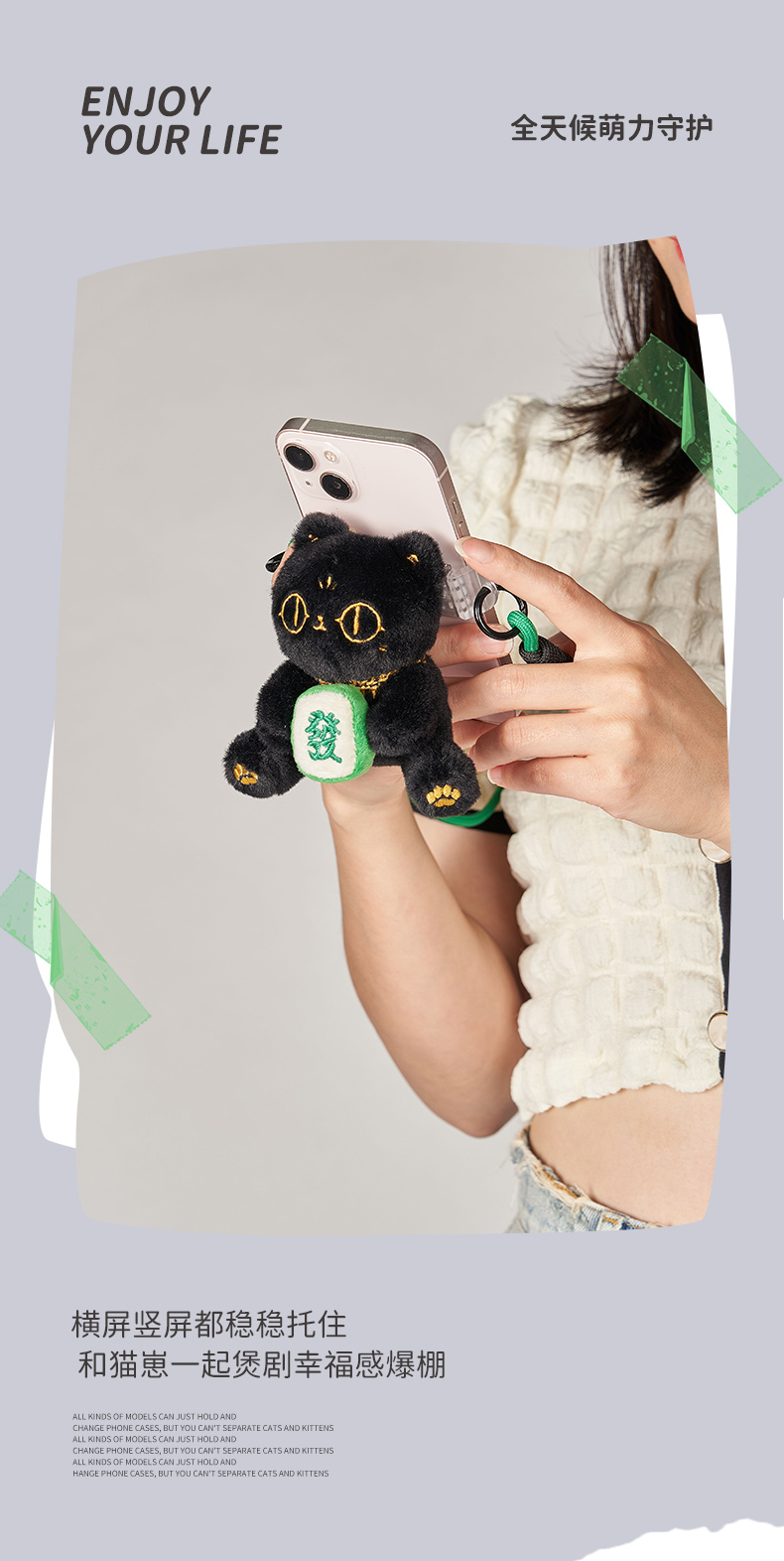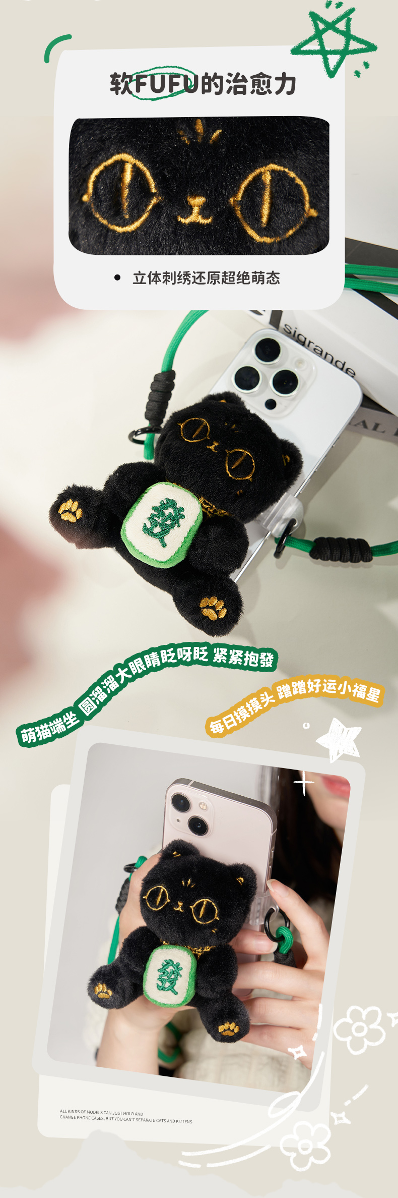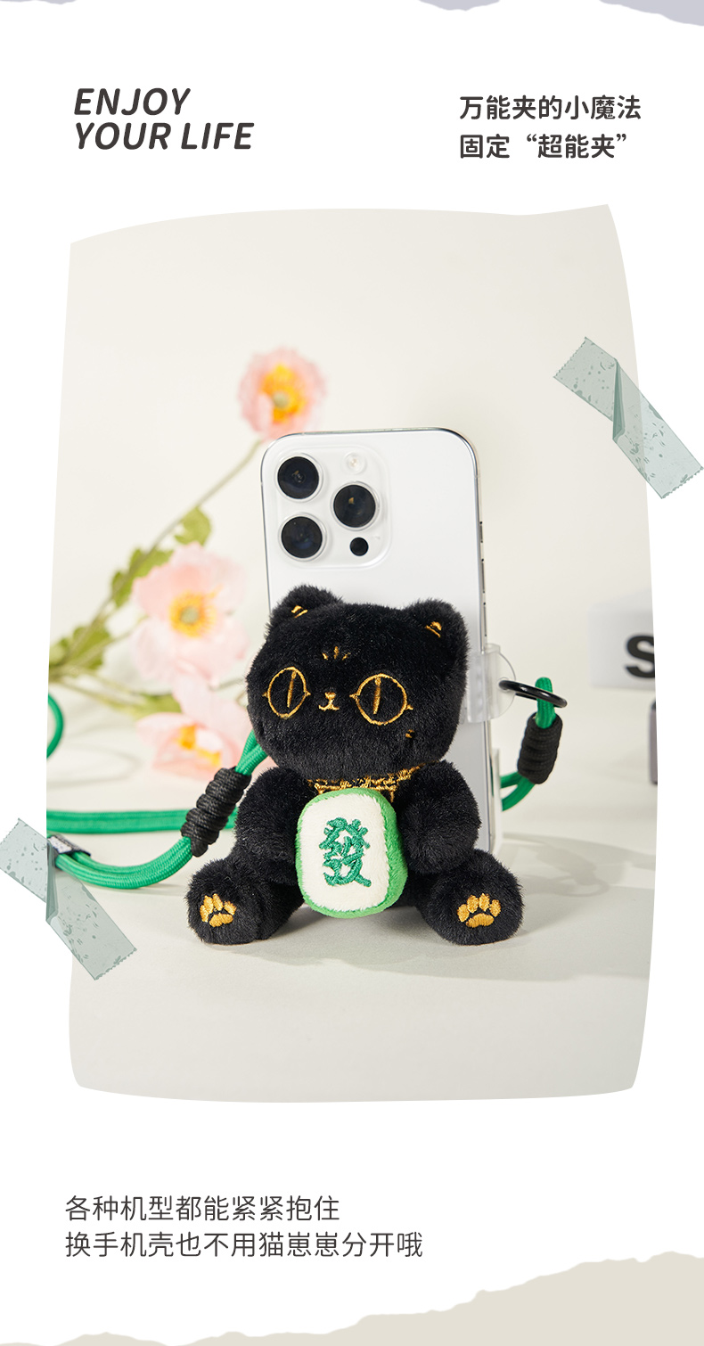 大英博物馆 巴斯特系列 萌猫发财斜挎毛绒 手机背夹