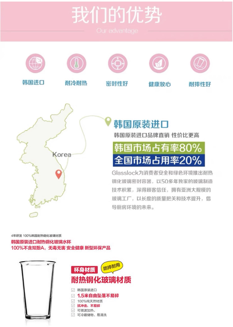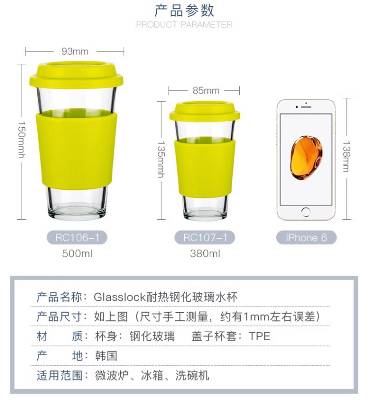 【商品名称】韩国进口glasslock钢化玻璃情侣水杯500ML
