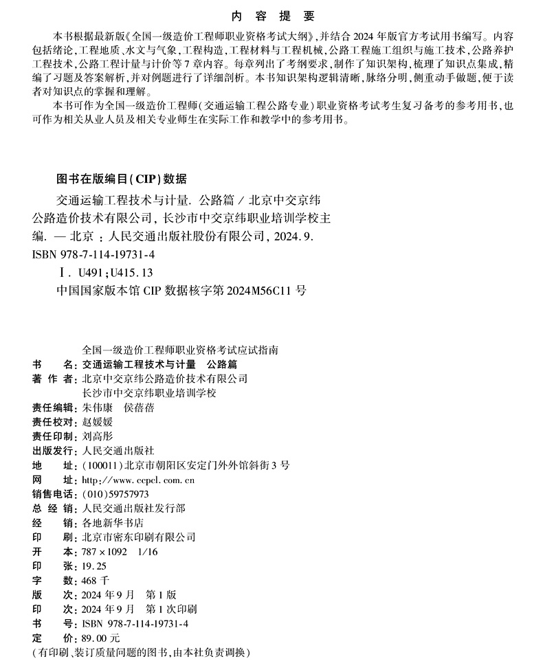 书名:全国一级造价工程师职业资格考试应试指南 交通运输工程技术与计量 公路篇