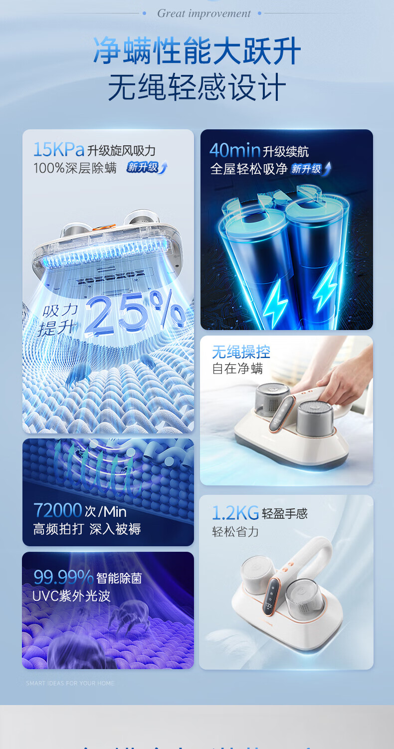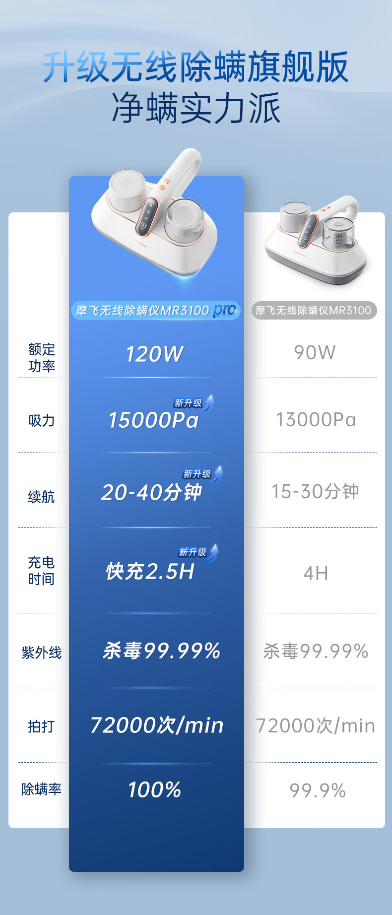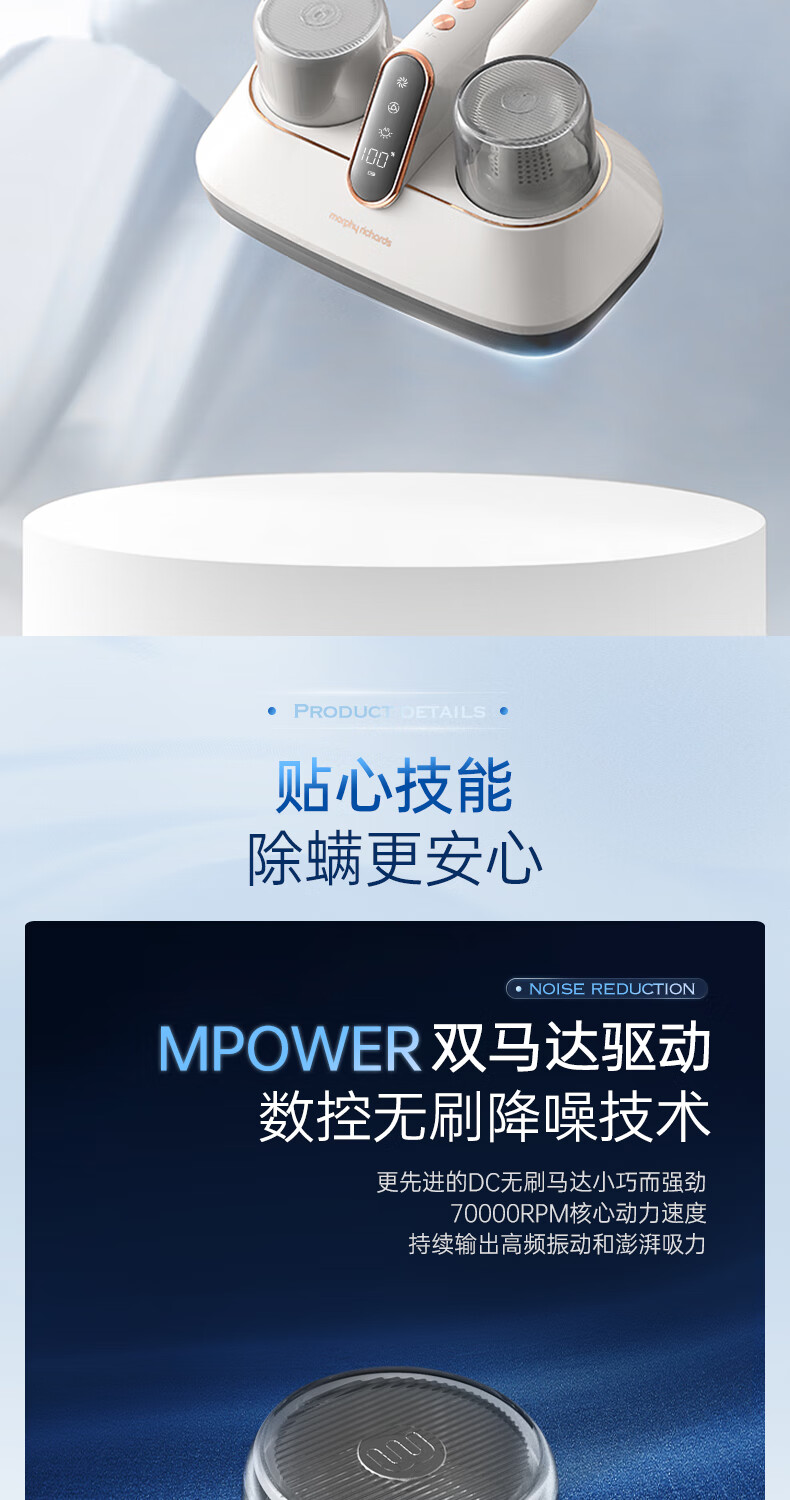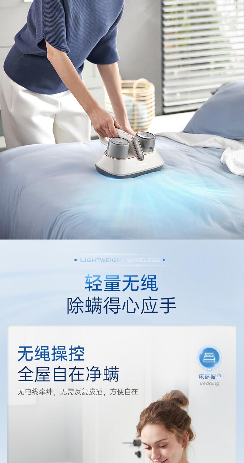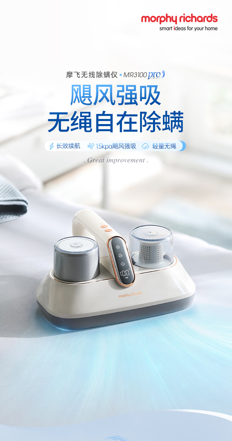 【小家电】摩飞电器除螨仪无线除螨吸尘器升级大吸力长续航家用床上紫外线杀菌除螨虫MR3100pro HF
