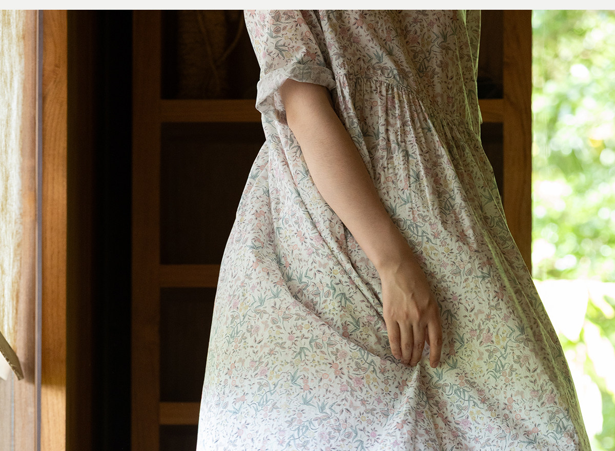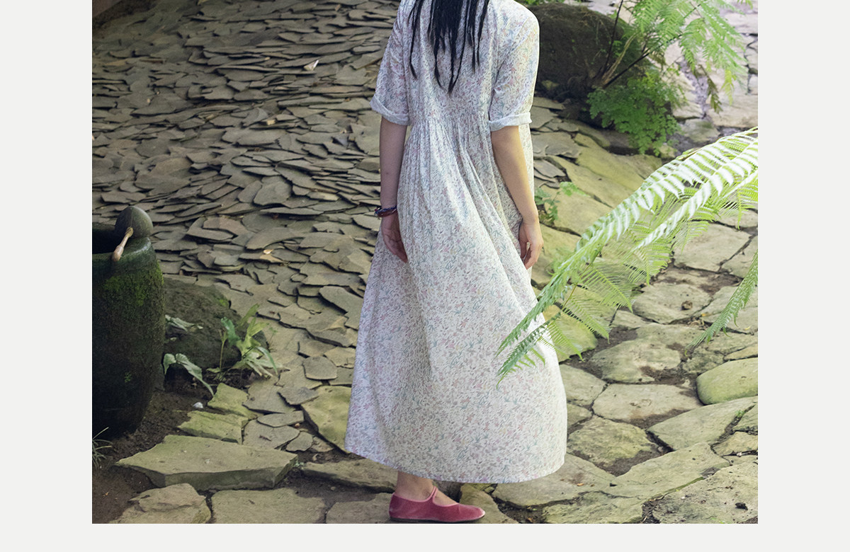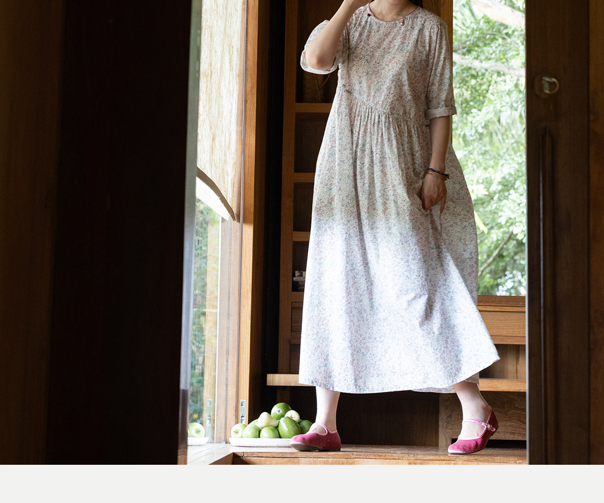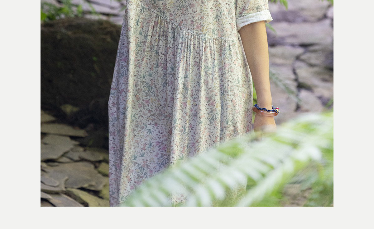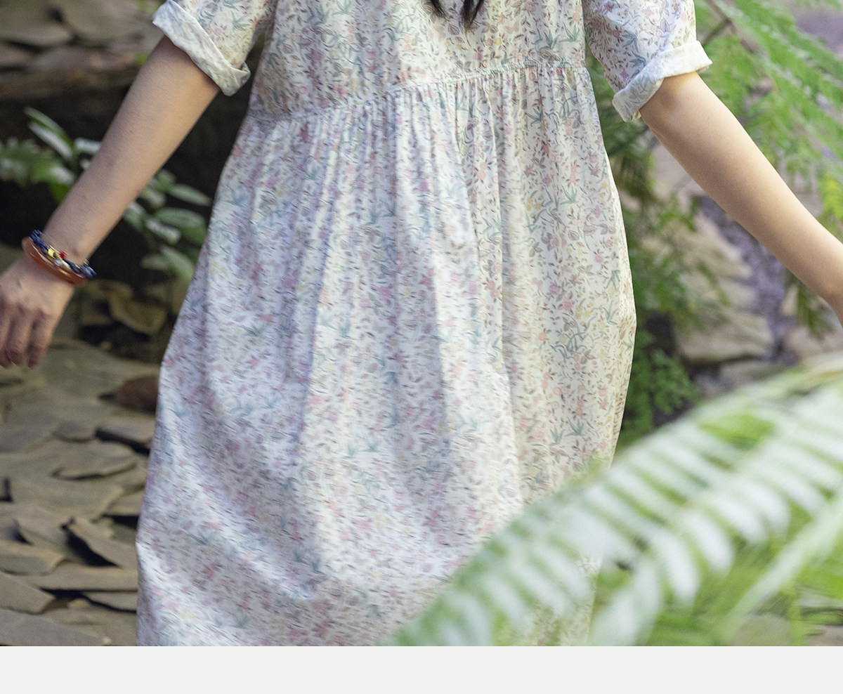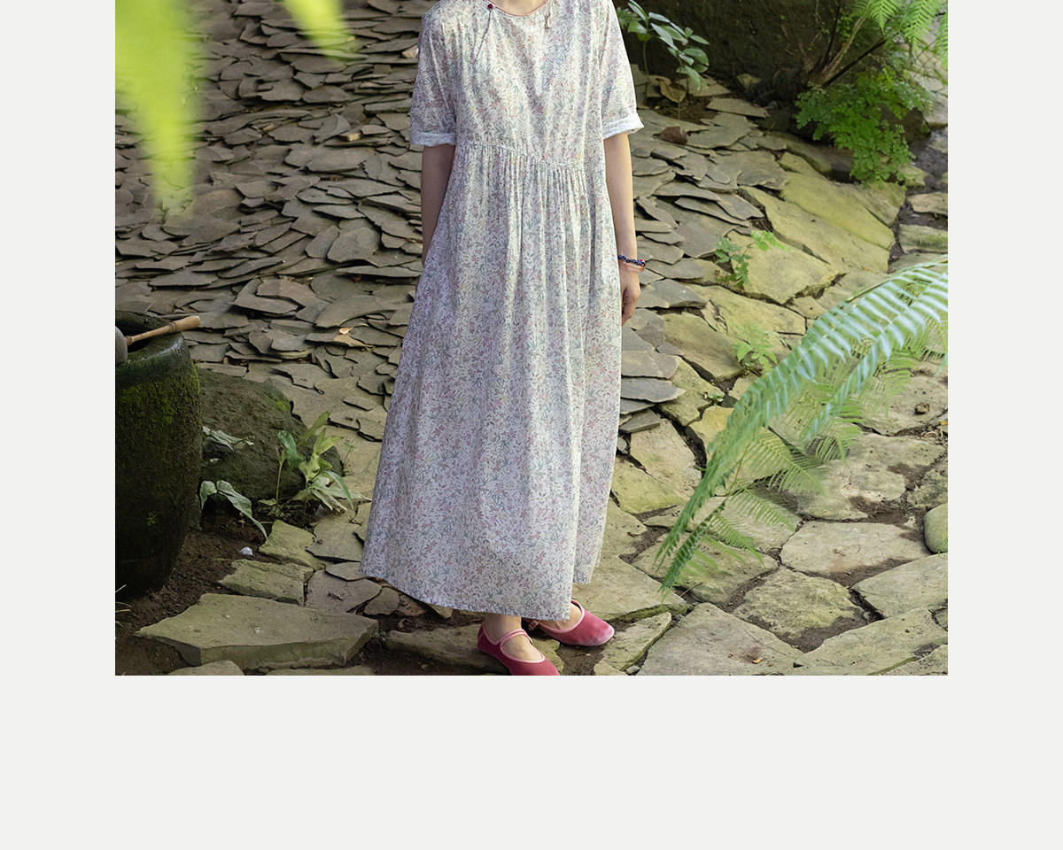 牧衣游原创 80支印花纯棉连衣裙女新款宽松质朴文艺碎花长裙 青湲