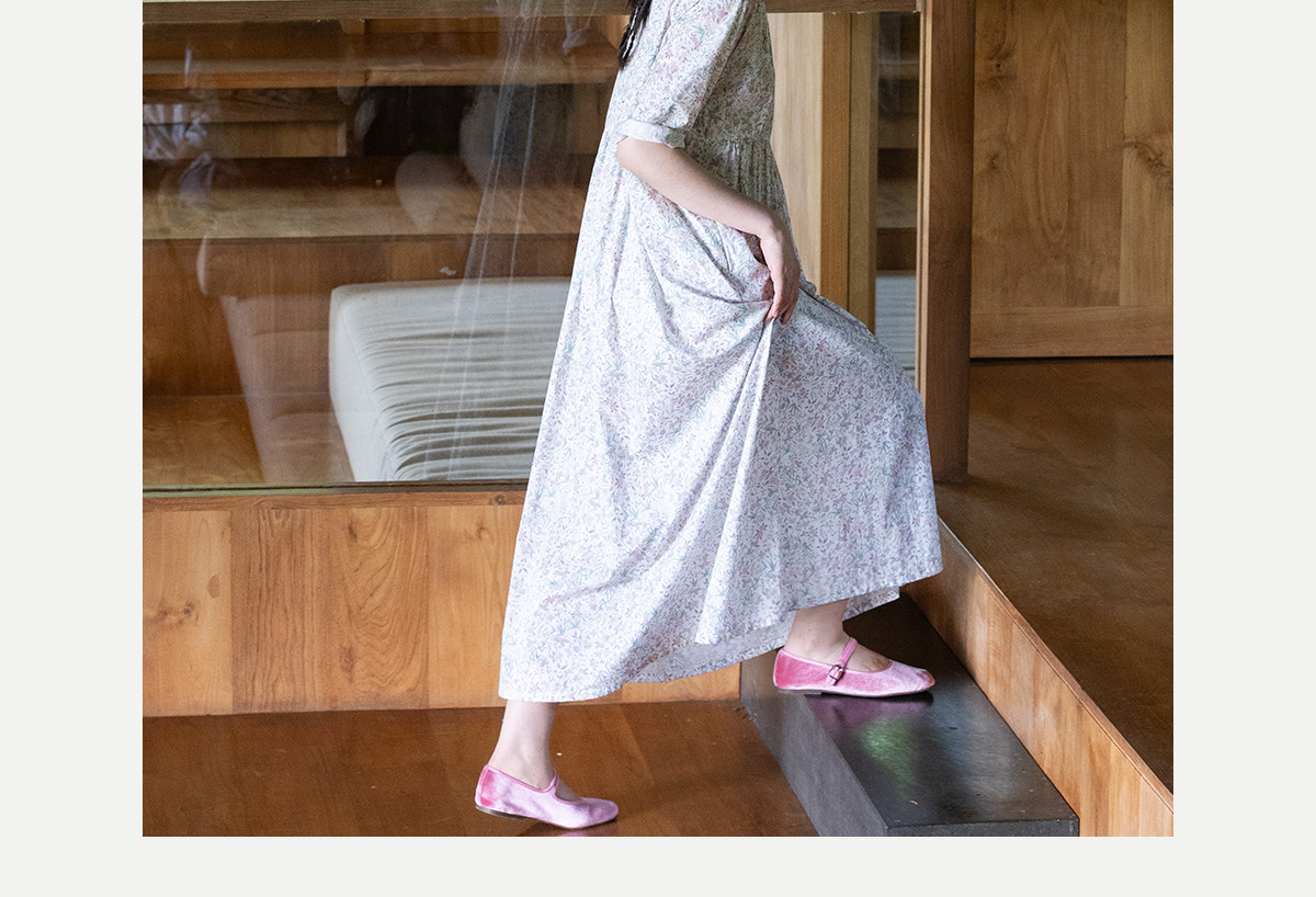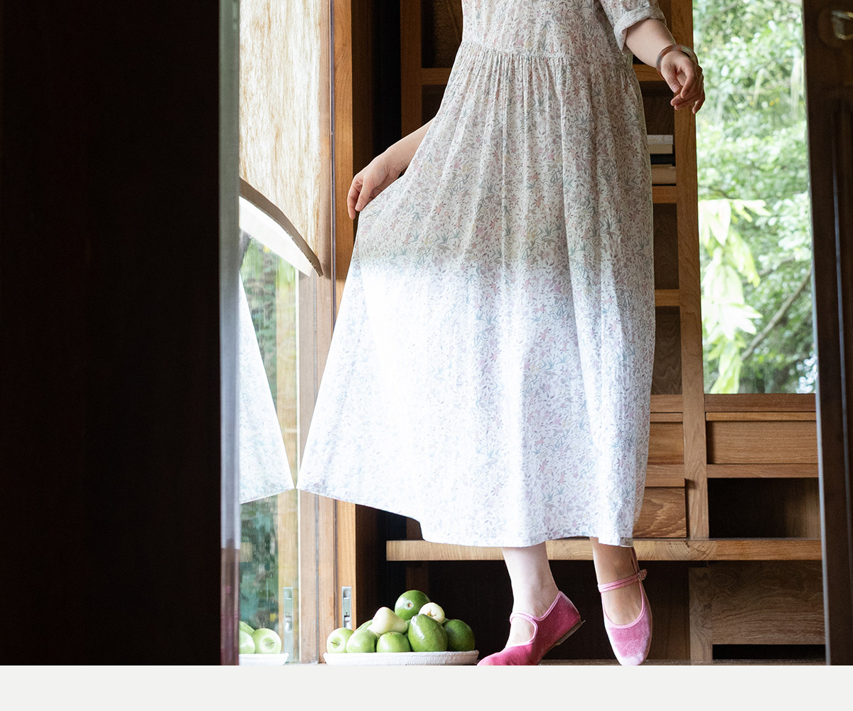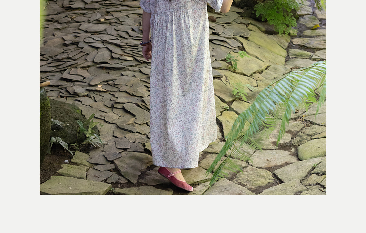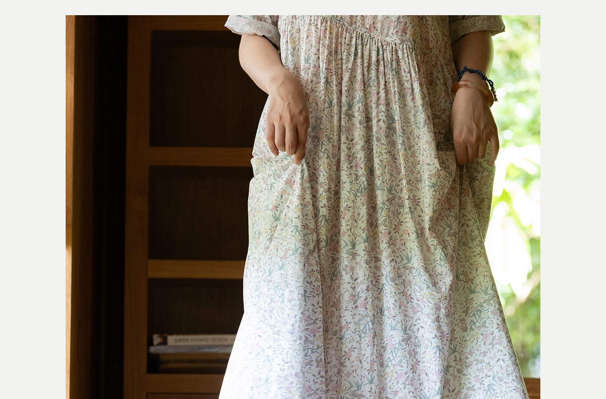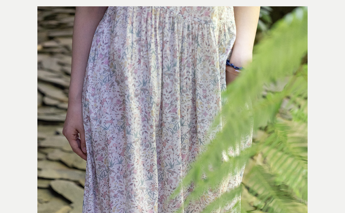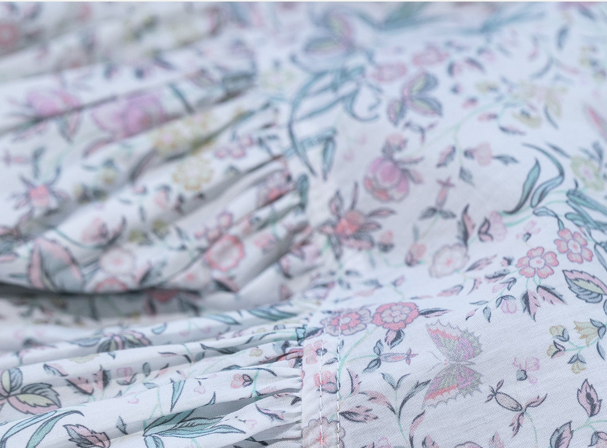 牧衣游原创 80支印花纯棉连衣裙女新款宽松质朴文艺碎花长裙 青湲