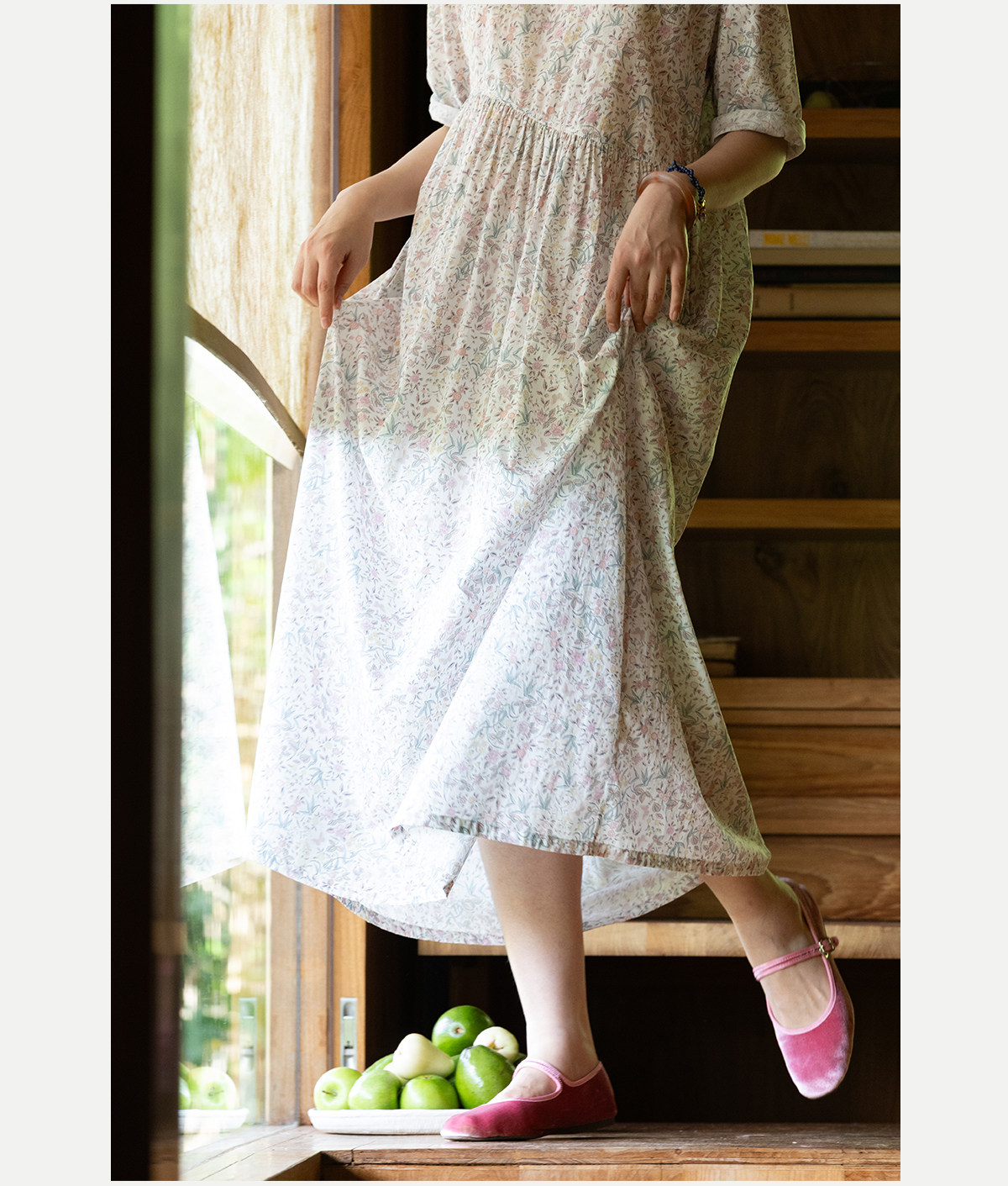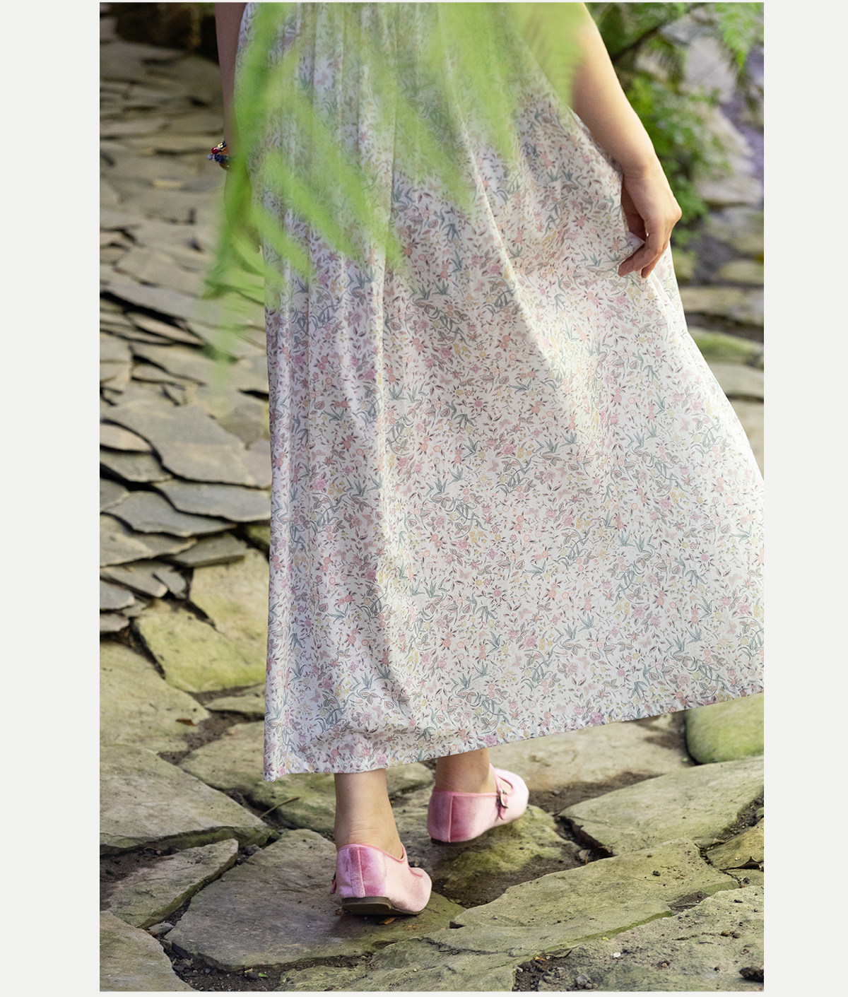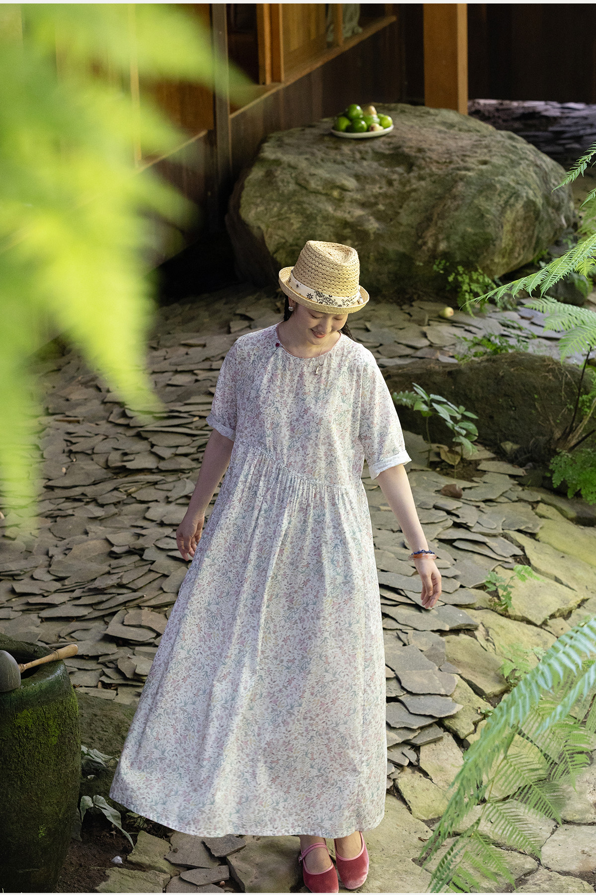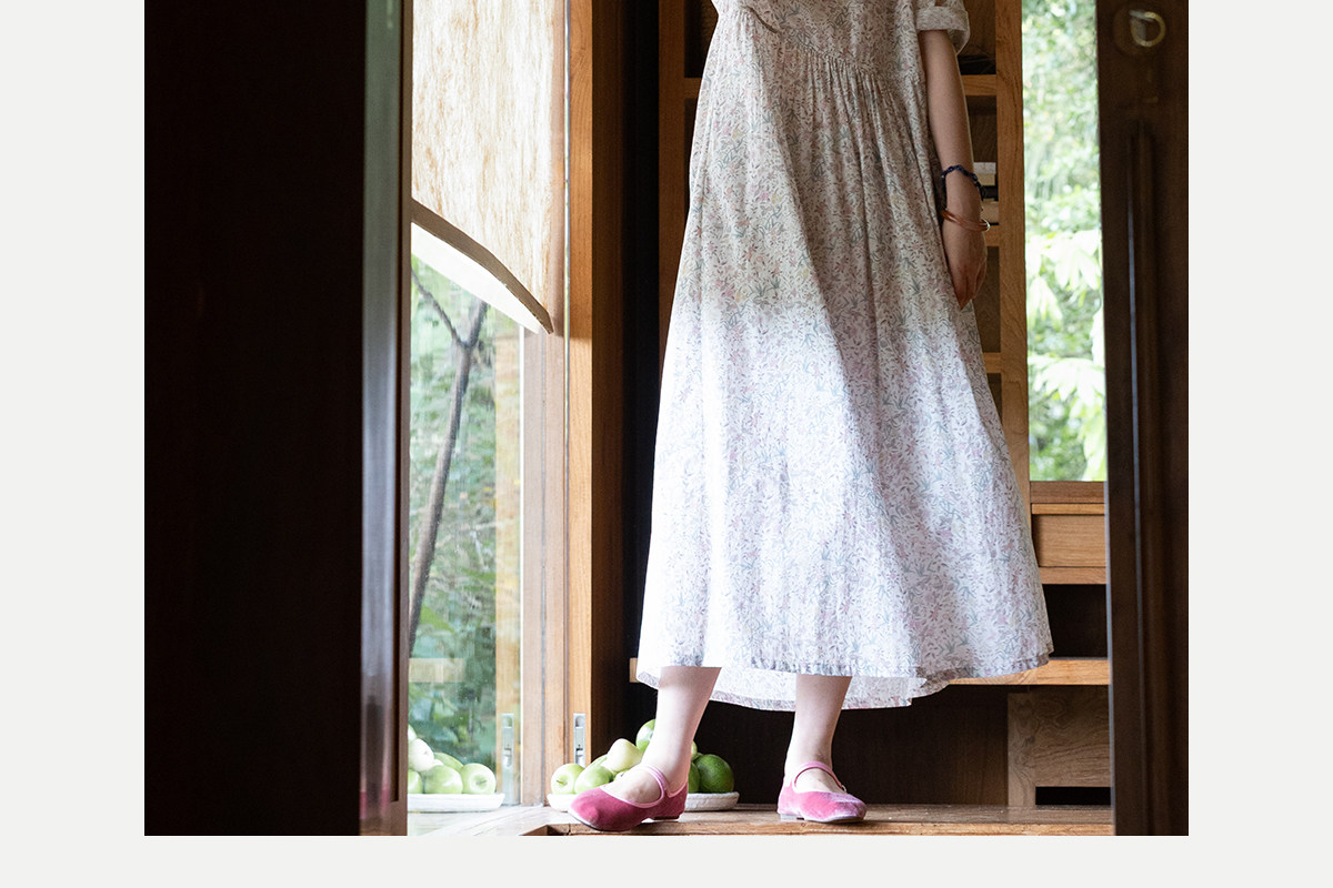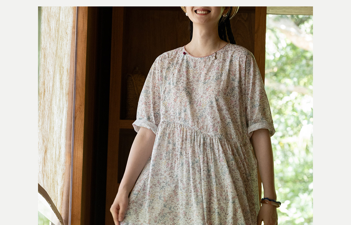 牧衣游原创 80支印花纯棉连衣裙女新款宽松质朴文艺碎花长裙 青湲