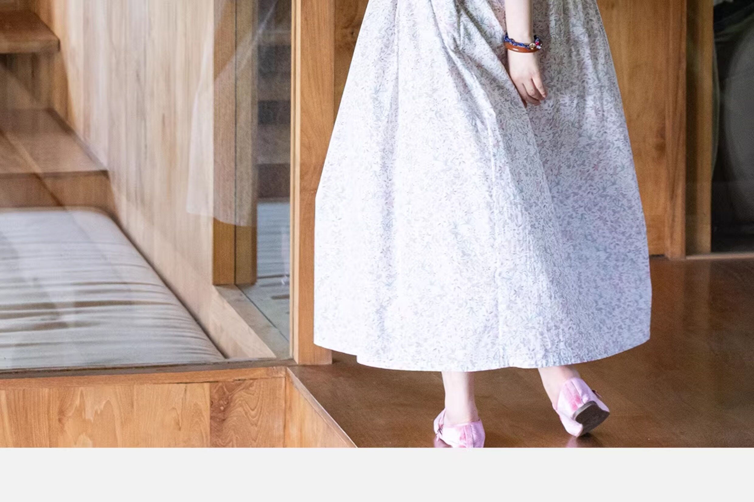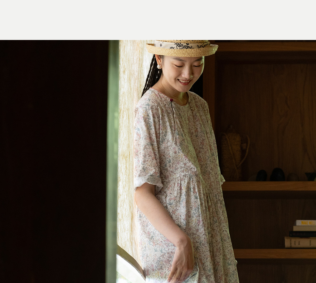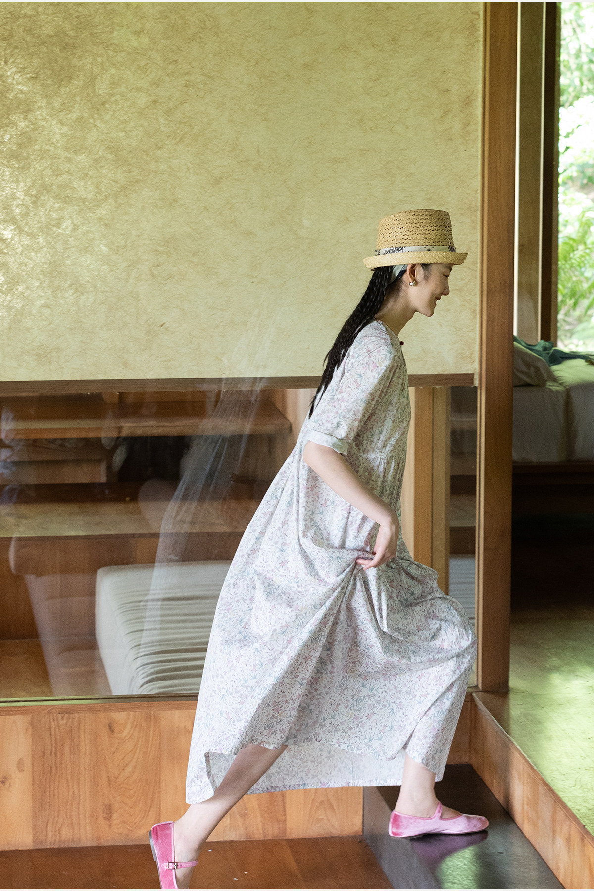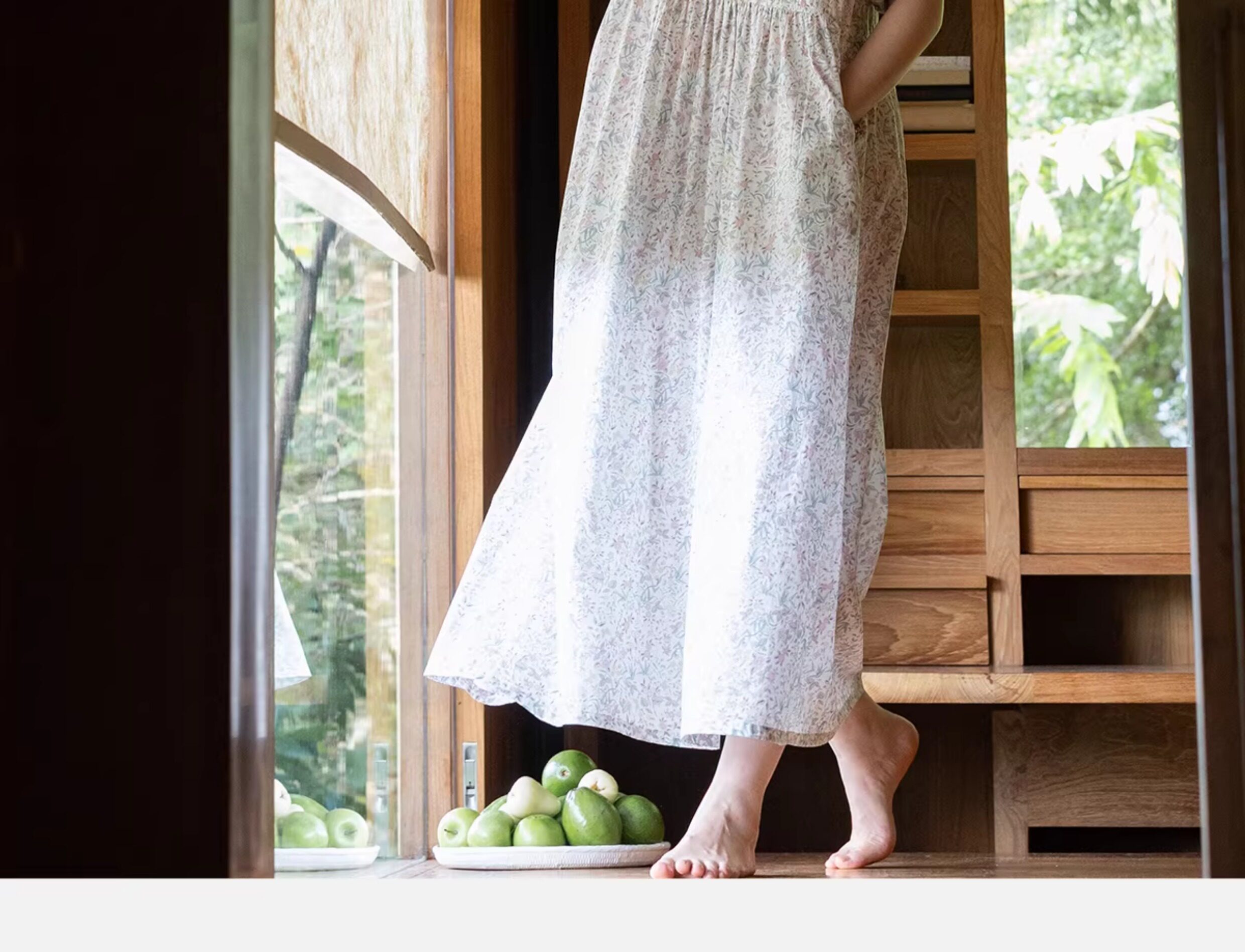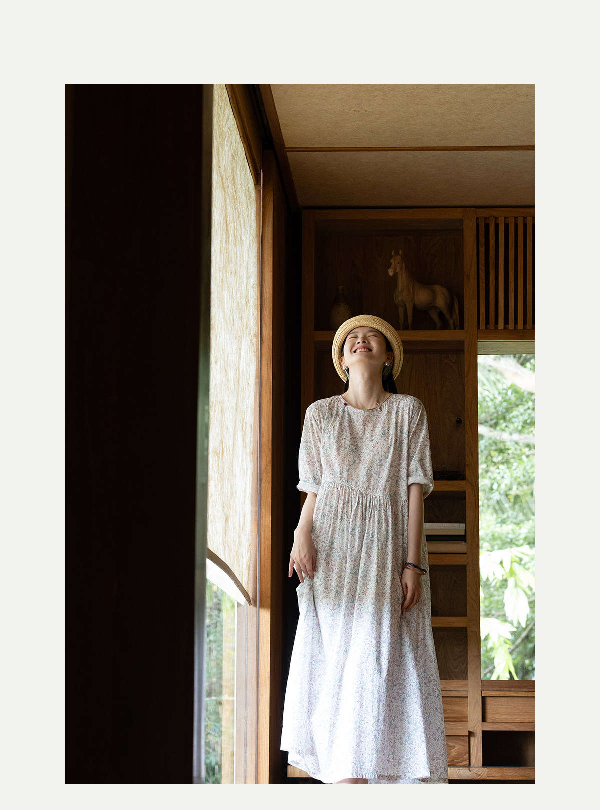牧衣游原创 80支印花纯棉连衣裙女新款宽松质朴文艺碎花长裙 青湲