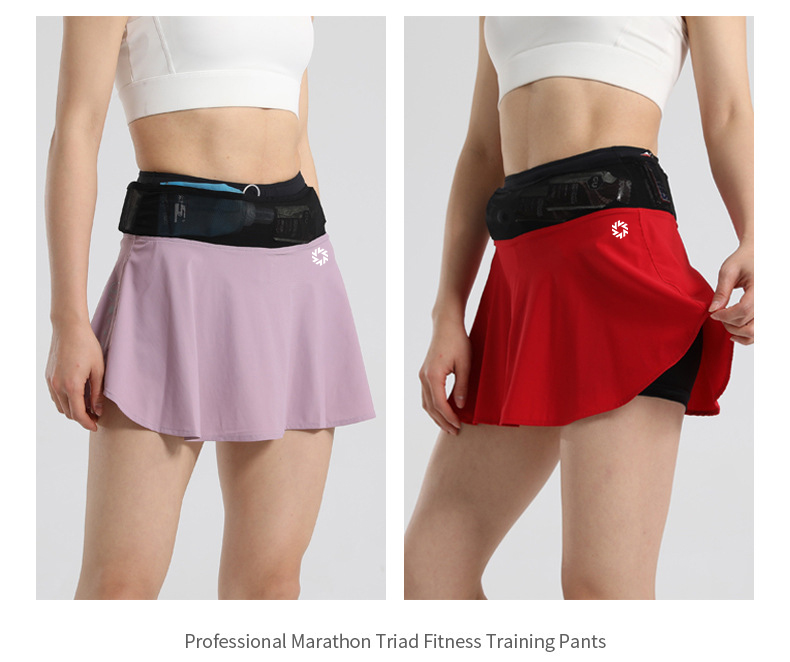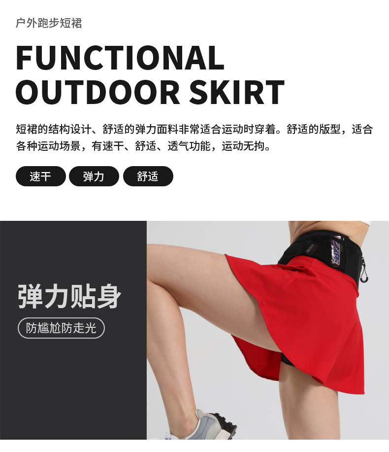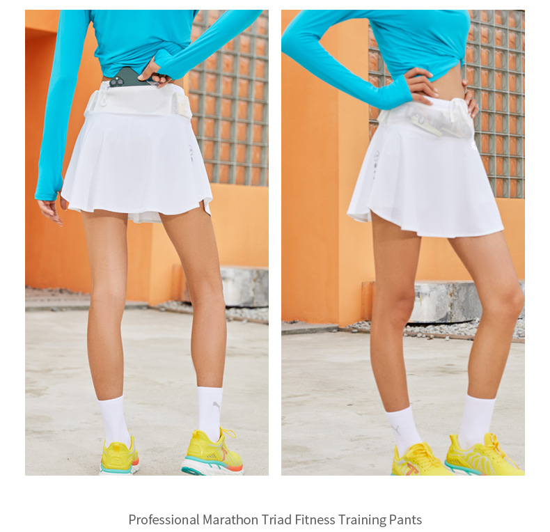 积能 防水口袋运动短裙女防走光高腰速干马拉松跑裙环绕式网兜