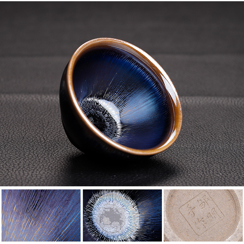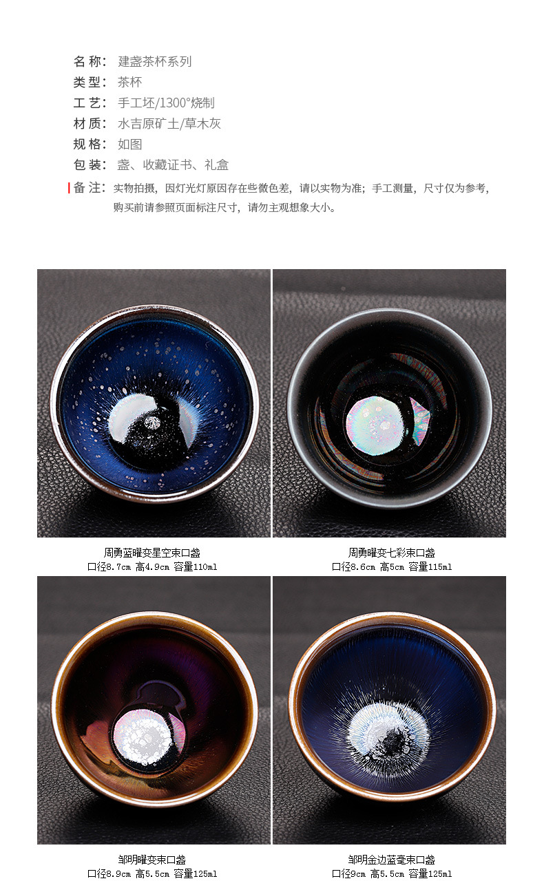 建盏茶杯主人杯四色杯陶瓷品茗杯蓝麒麟百花油滴禅定窑变天目茶盏
