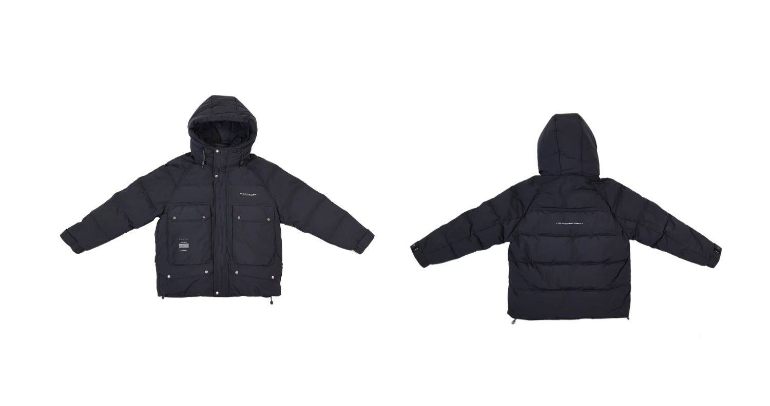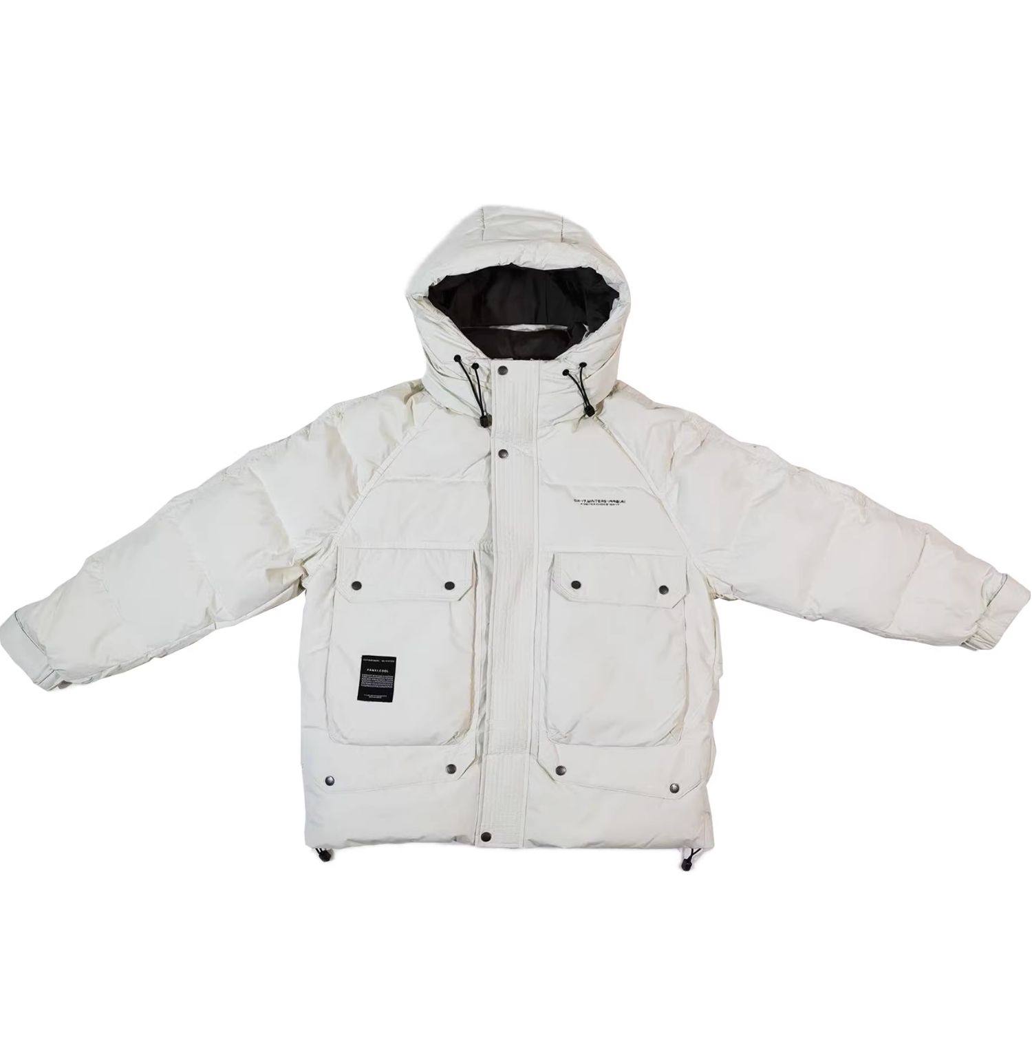 半身缘男装 冬季口袋布标连帽加厚日系羽绒服254312U01710159