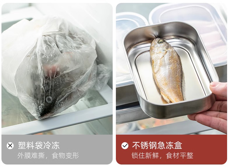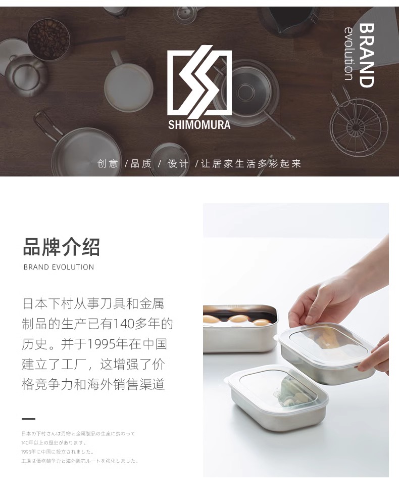 日本进口下村备菜盒304不锈钢保鲜盒2个装