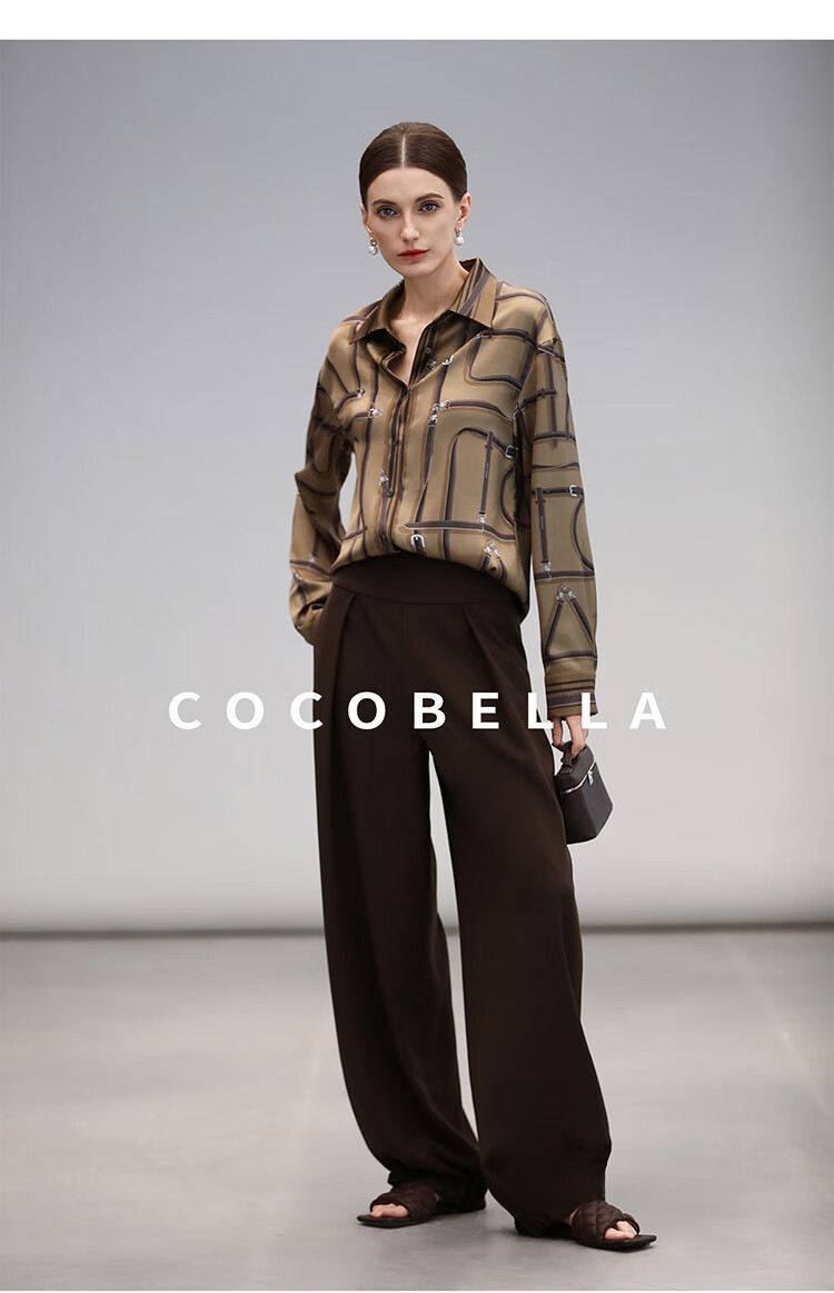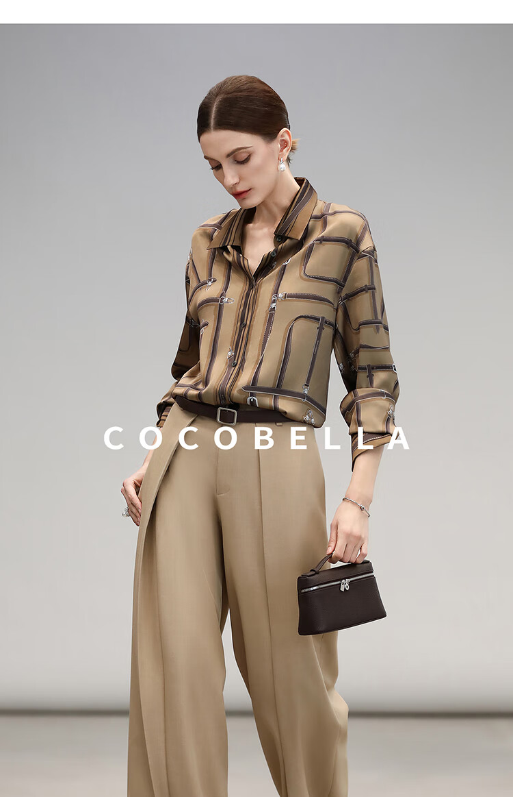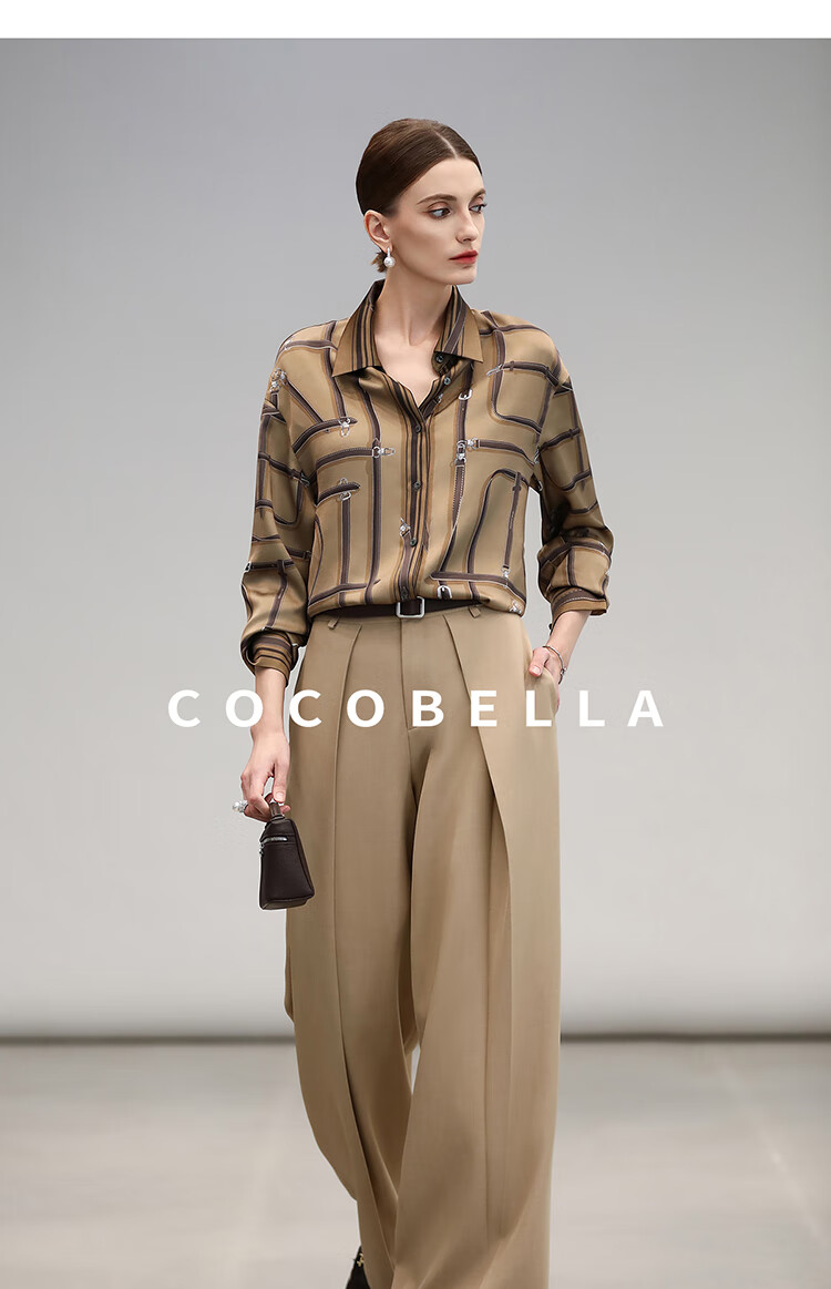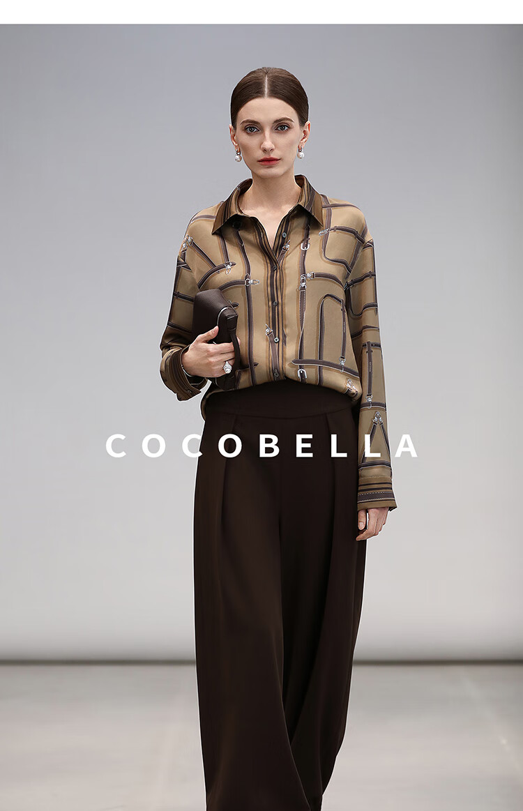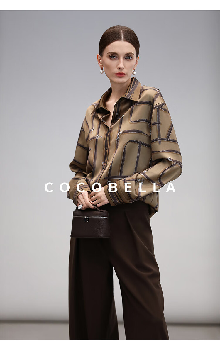 COCOBELLA立体定位印花翻领衬衫商务通勤重磅缎面上衣SR3098
