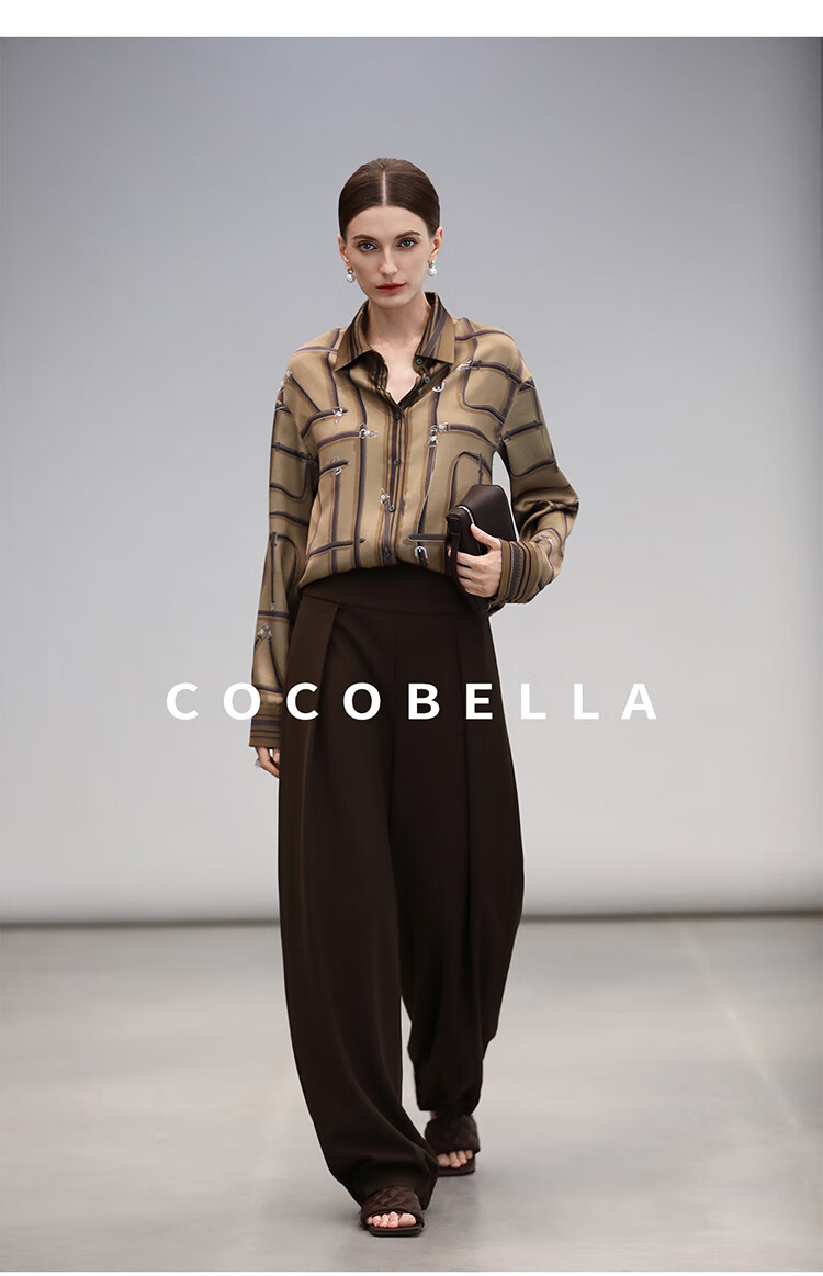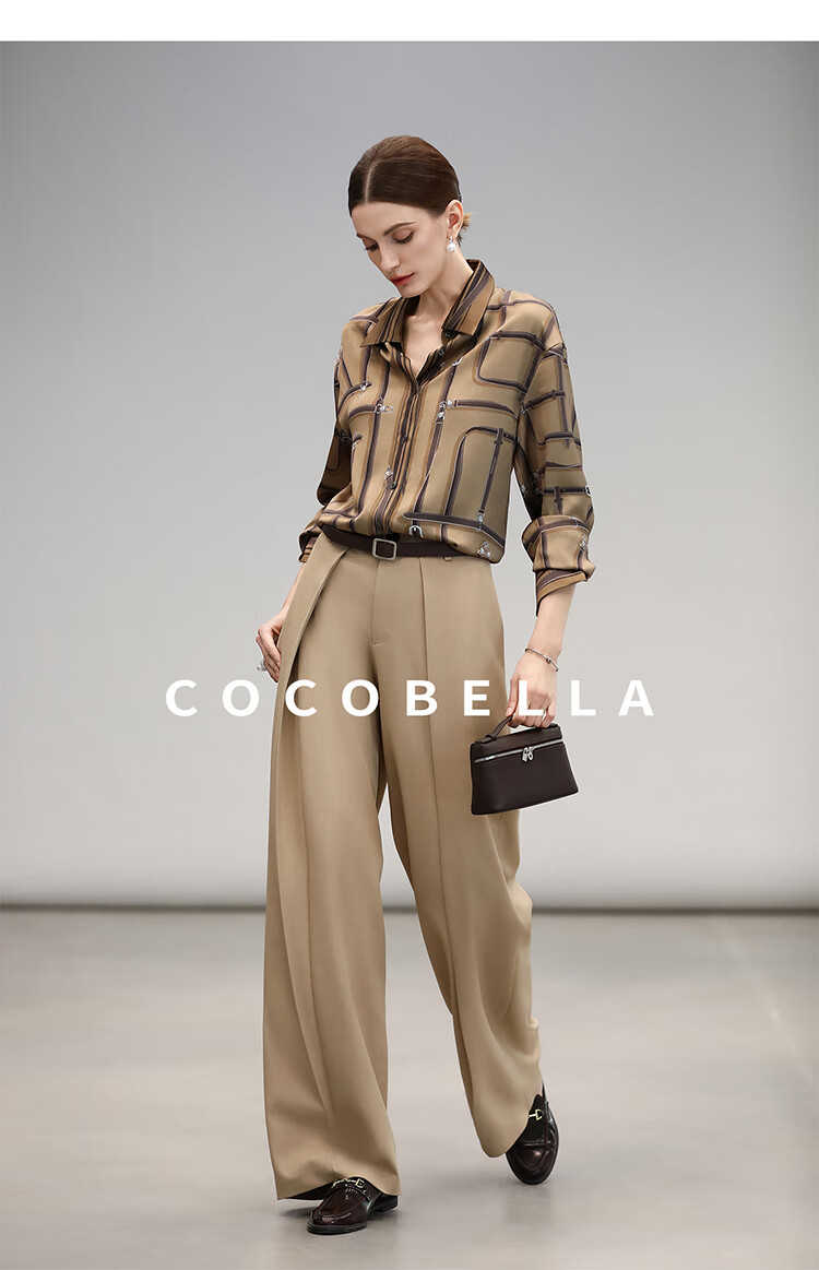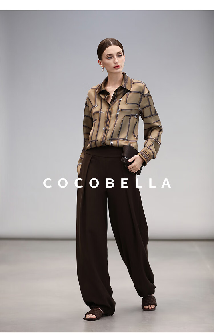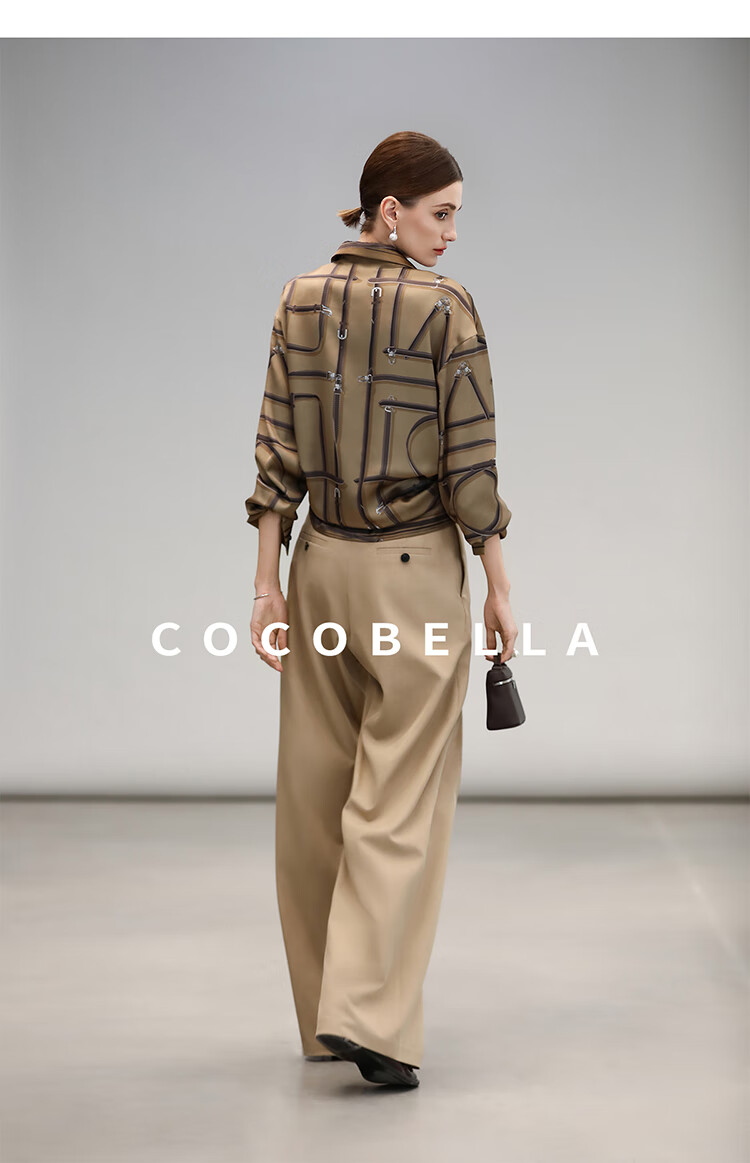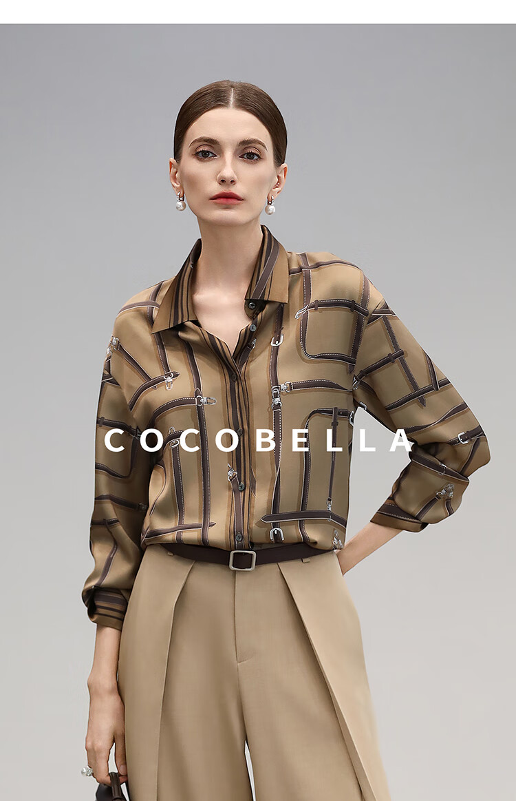 COCOBELLA立体定位印花翻领衬衫商务通勤重磅缎面上衣SR3098