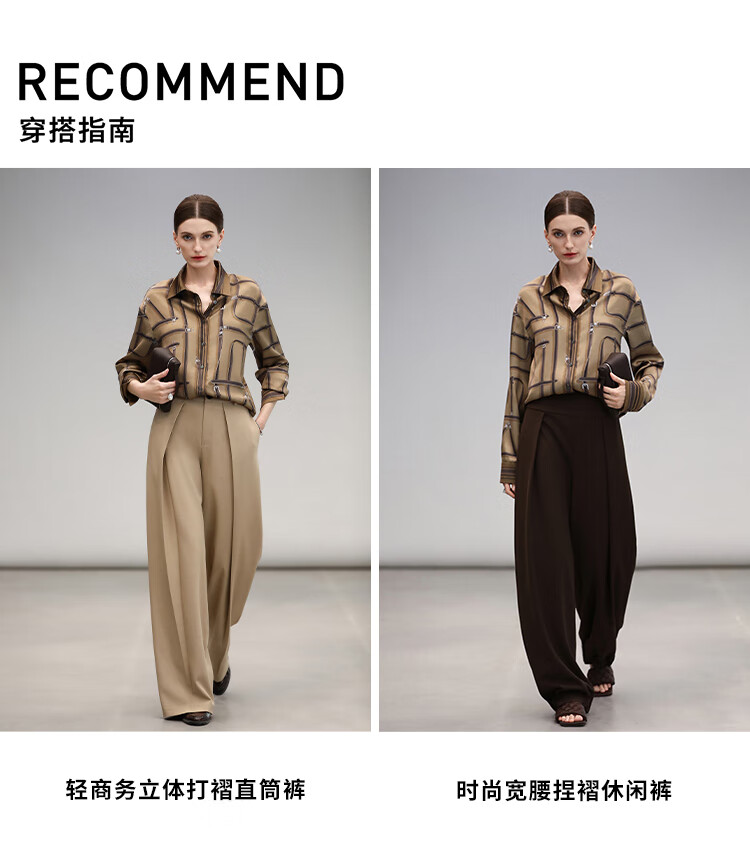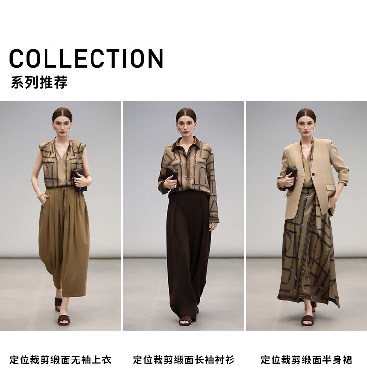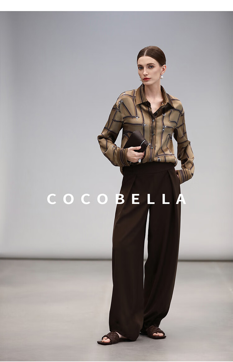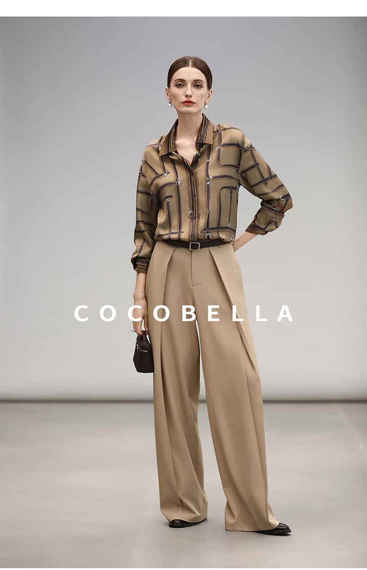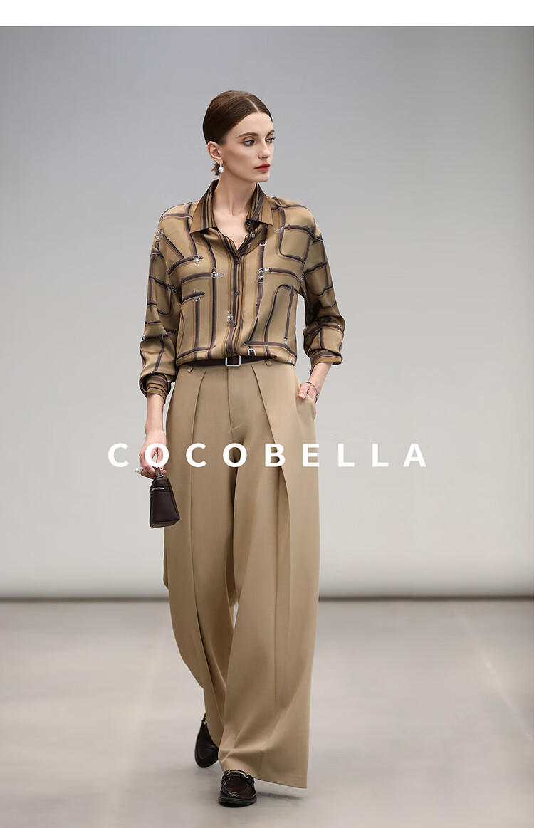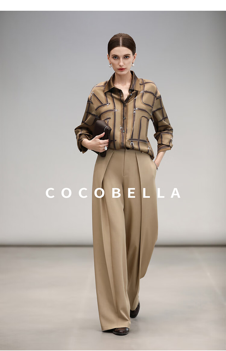 COCOBELLA立体定位印花翻领衬衫商务通勤重磅缎面上衣SR3098