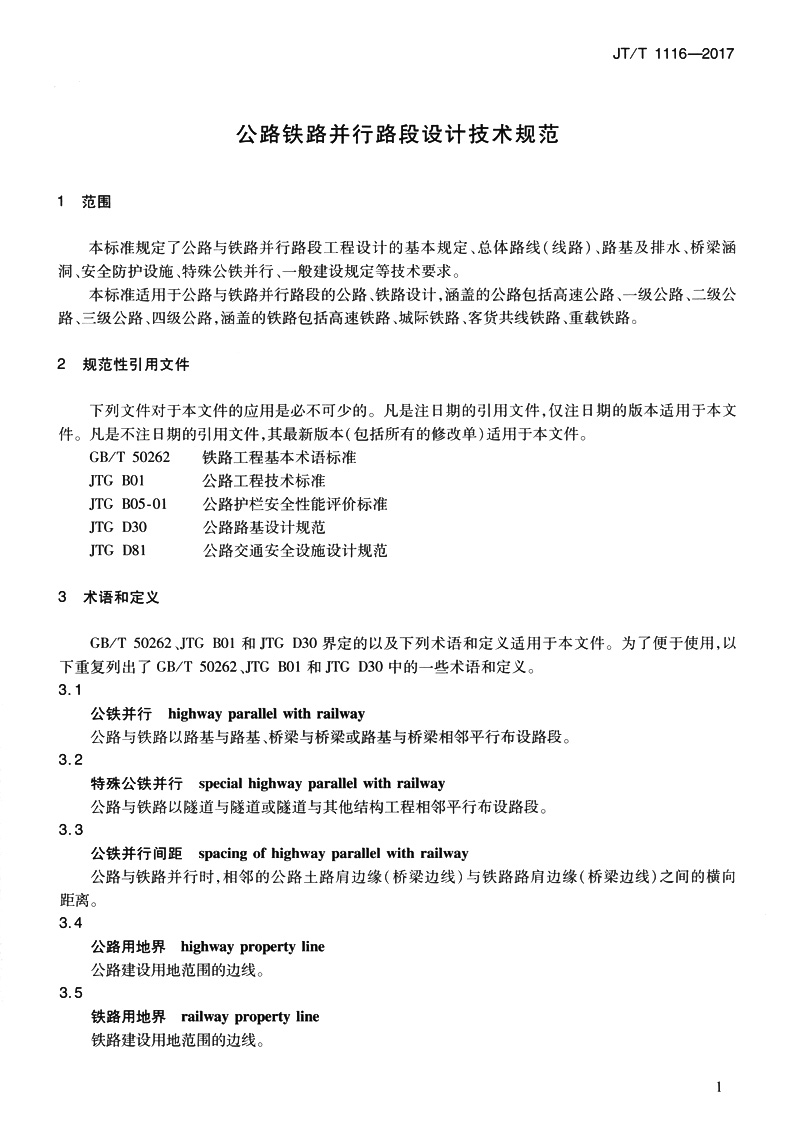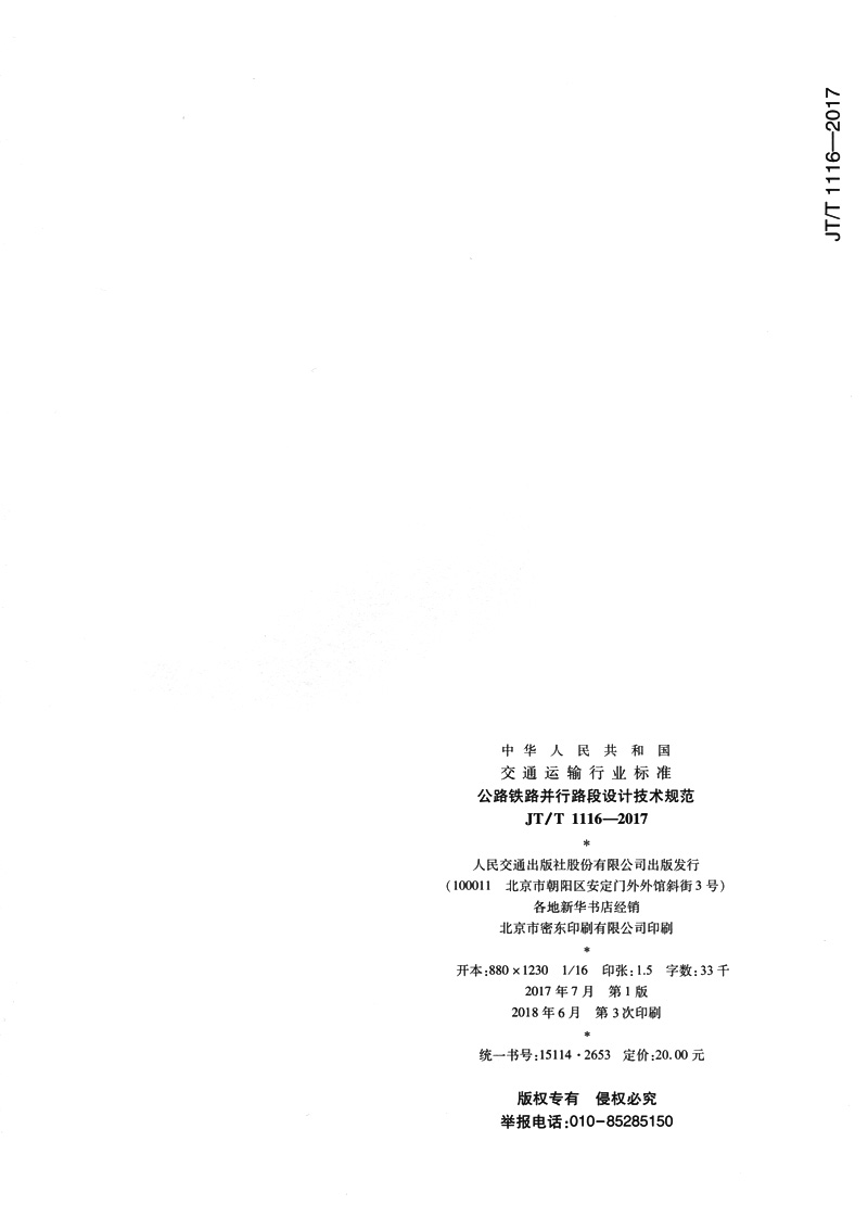 书名:公路铁路并行路段设计技术规范(JT/T 1116-2017)