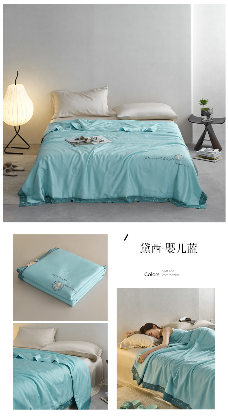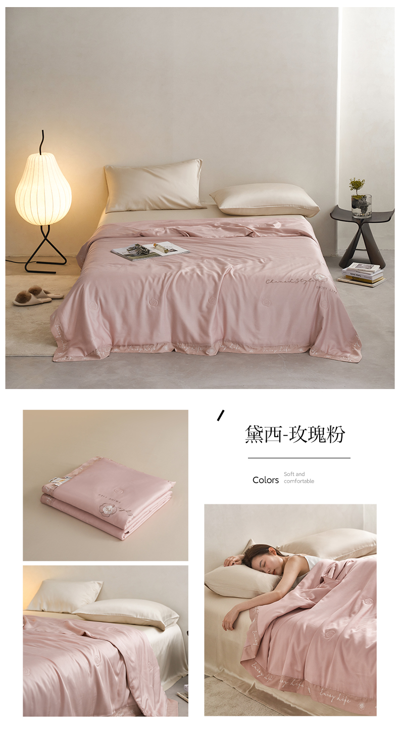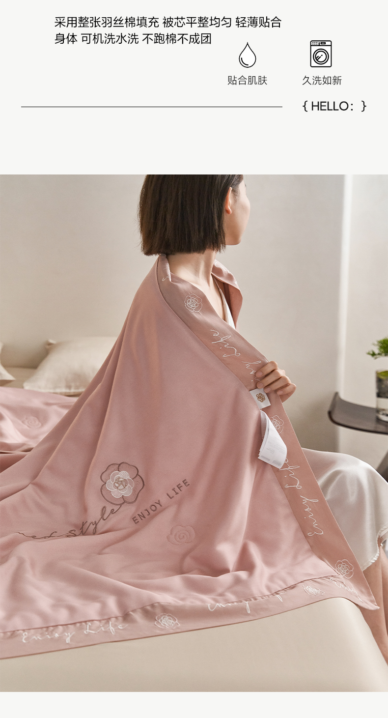 【下架】自然醒50支茶花香妃刺绣夏被空调被纯色轻奢夏被单人双人裸睡夏季薄被子LFS(不参与优惠券)
