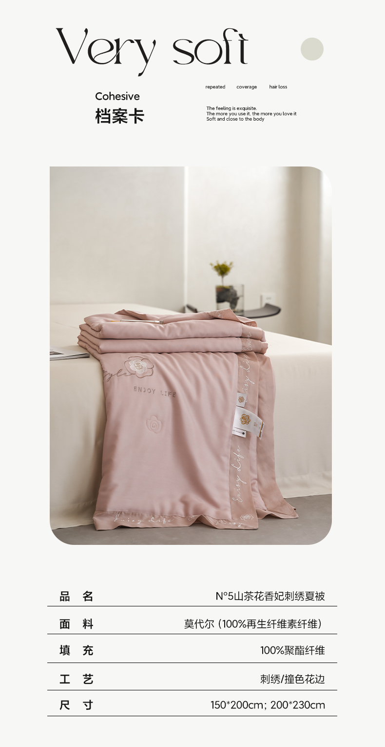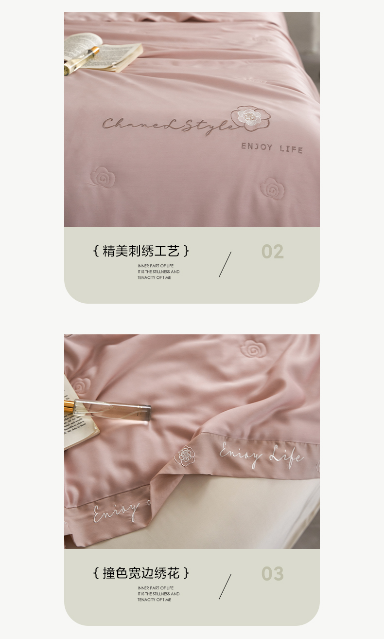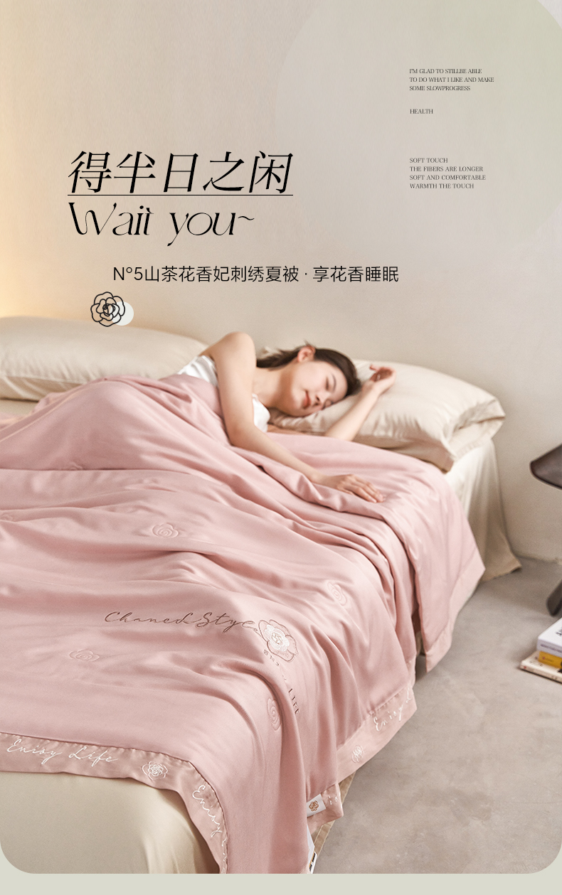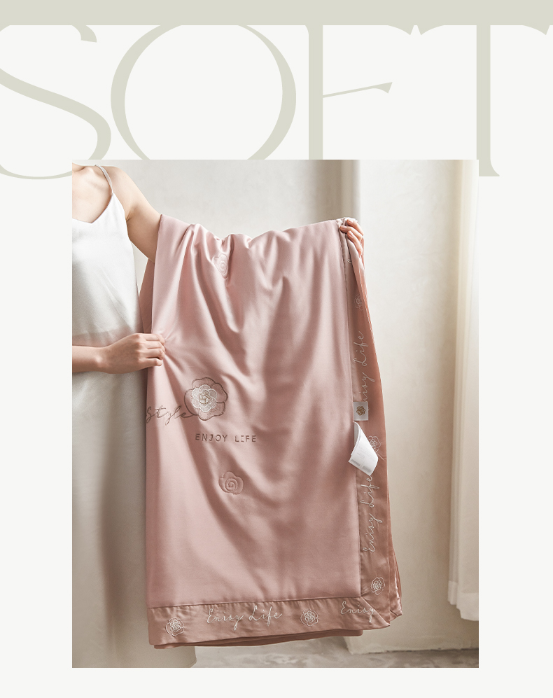 【下架】自然醒50支茶花香妃刺绣夏被空调被纯色轻奢夏被单人双人裸睡夏季薄被子LFS(不参与优惠券)