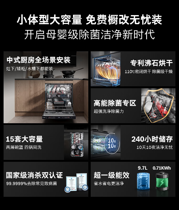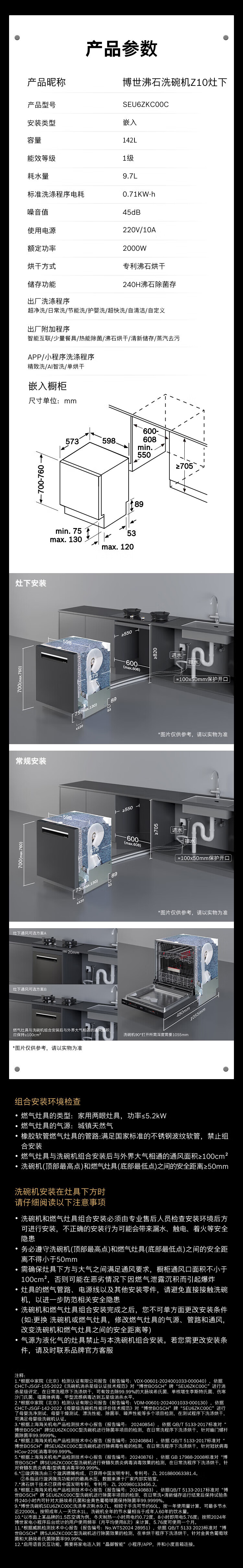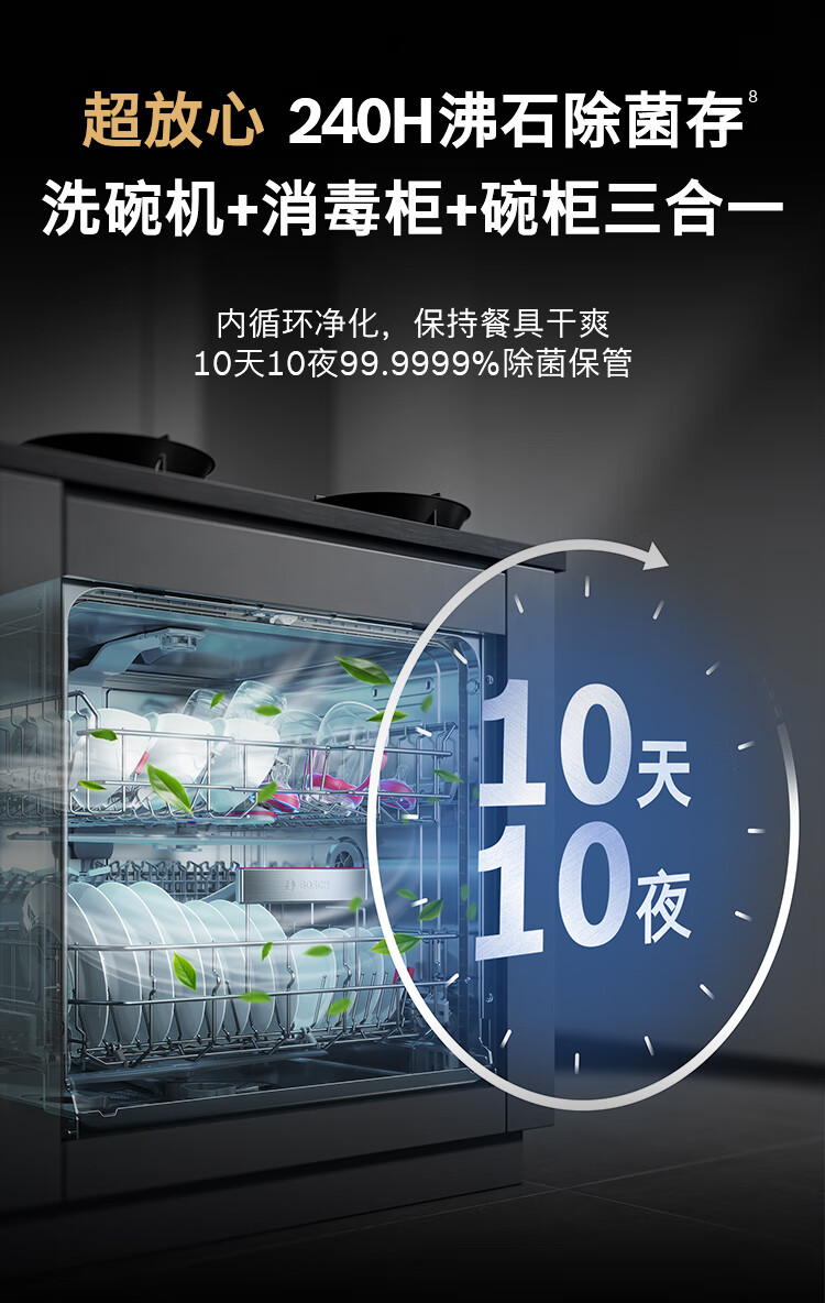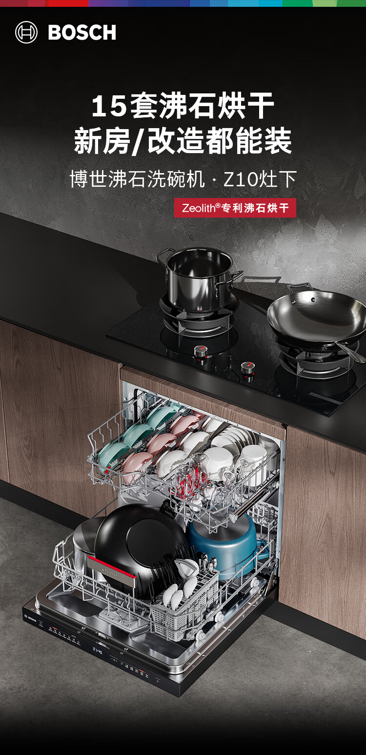 博世(BOSCH)Z10灶下15件套全自动洗碗机沸石除菌烘干240小时消杀双认证SEU6ZKC00C 伯爵灰