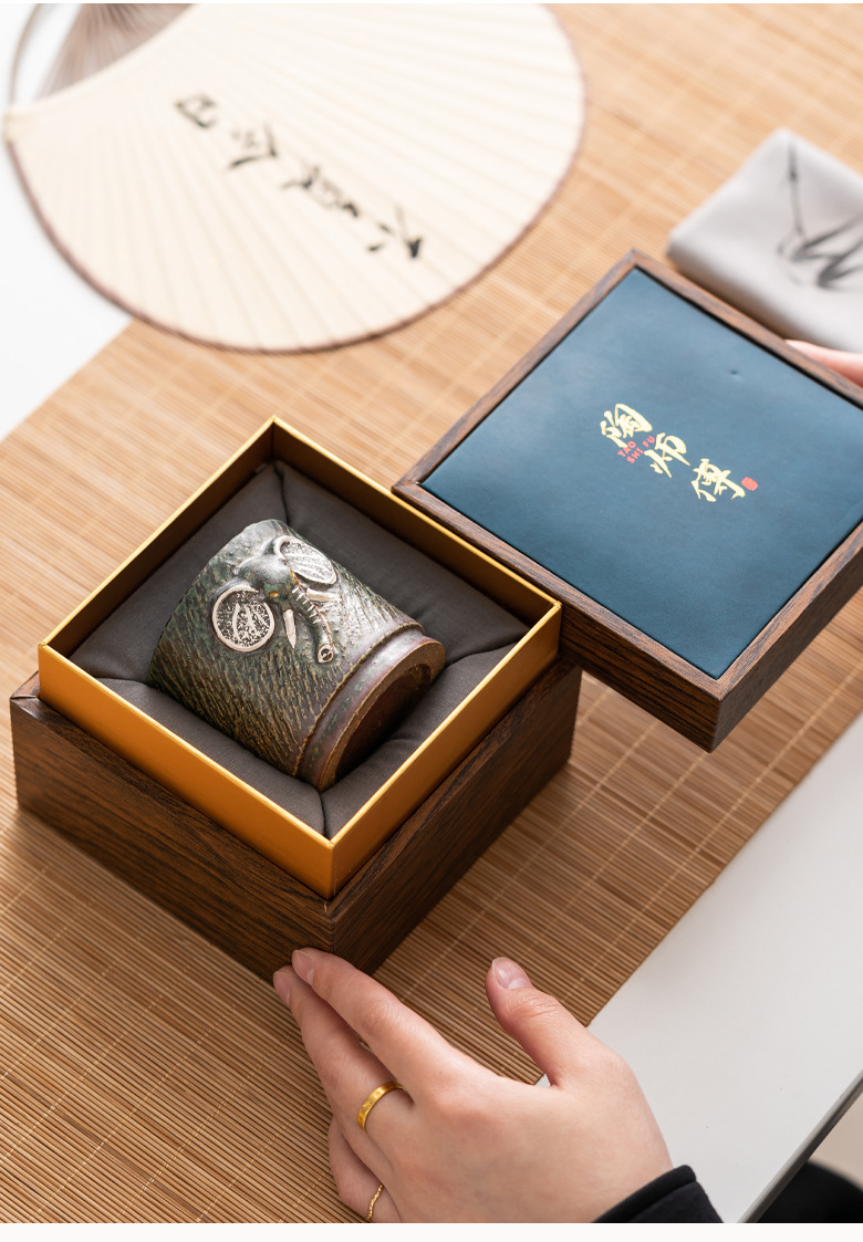 敦煌青铜釉万象主人杯志野烧手工茶杯品茗杯日式轻奢复古茶盏杯子