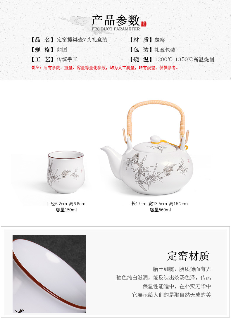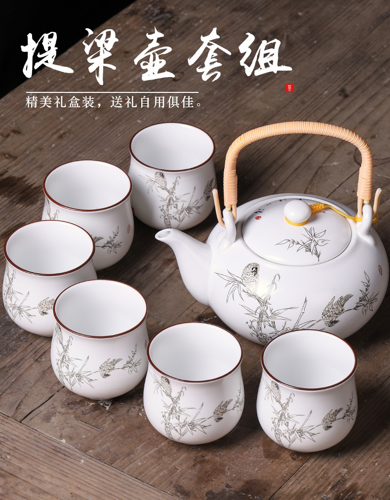 陶瓷提梁壶茶壶大号大容量套装家用客厅茶杯中式中国风功夫茶具