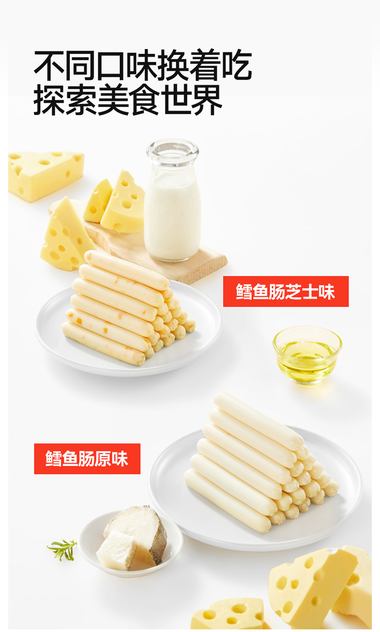 【零食】DHA深海原味/芝士味76%鳕鱼肠90g,送辅食食谱