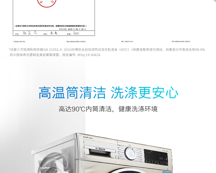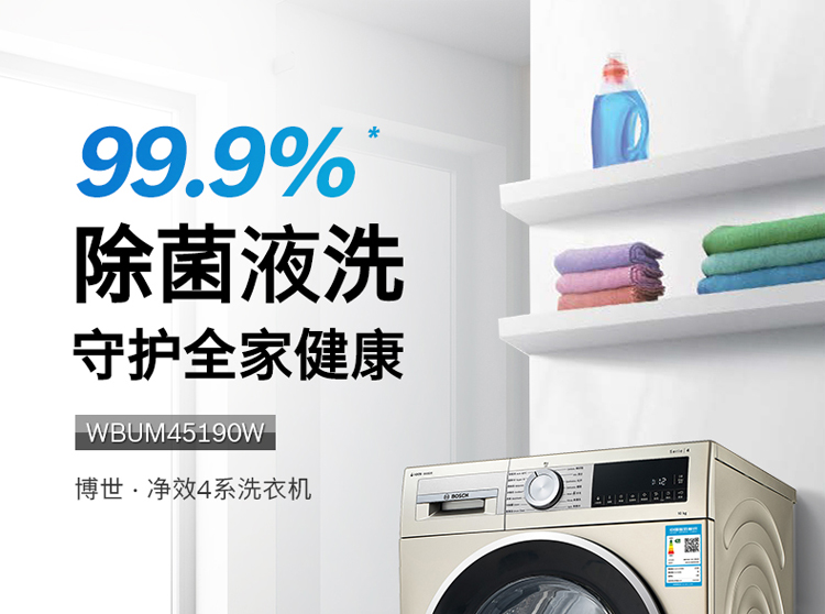 博世(BOSCH) 10kg 净效除菌 BLDC变频电机 自动添加 环形立体旋钮 人性化面板XQG100-WJUM45190W