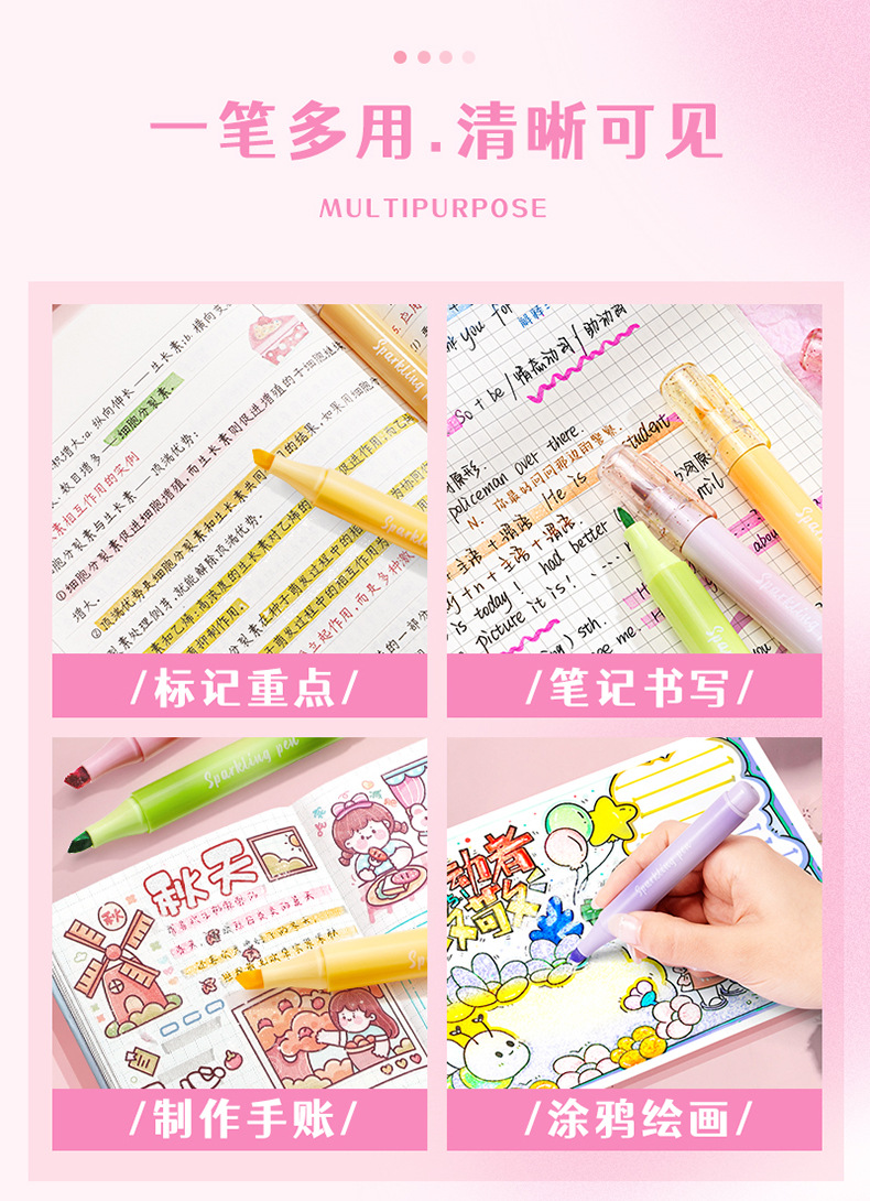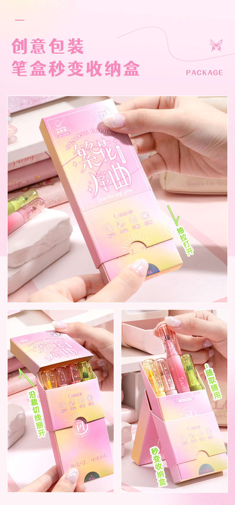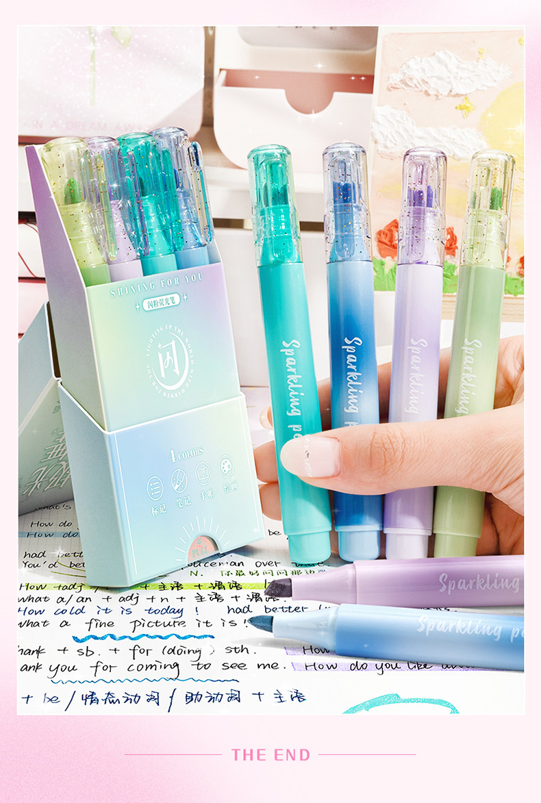 咔巴熊可立式闪粉荧光笔 【一盒四支套盒装】可爱学生ins彩色绘画笔 重点便携手账笔