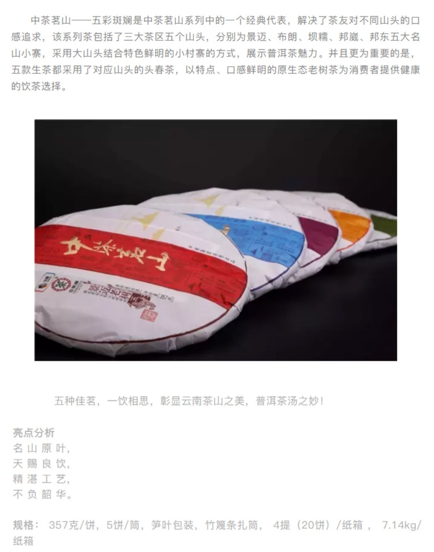 《中粮-中茶》(生茶)茗山坝糯老树 五彩斑斓 2016年云南普洱生茶357克/饼