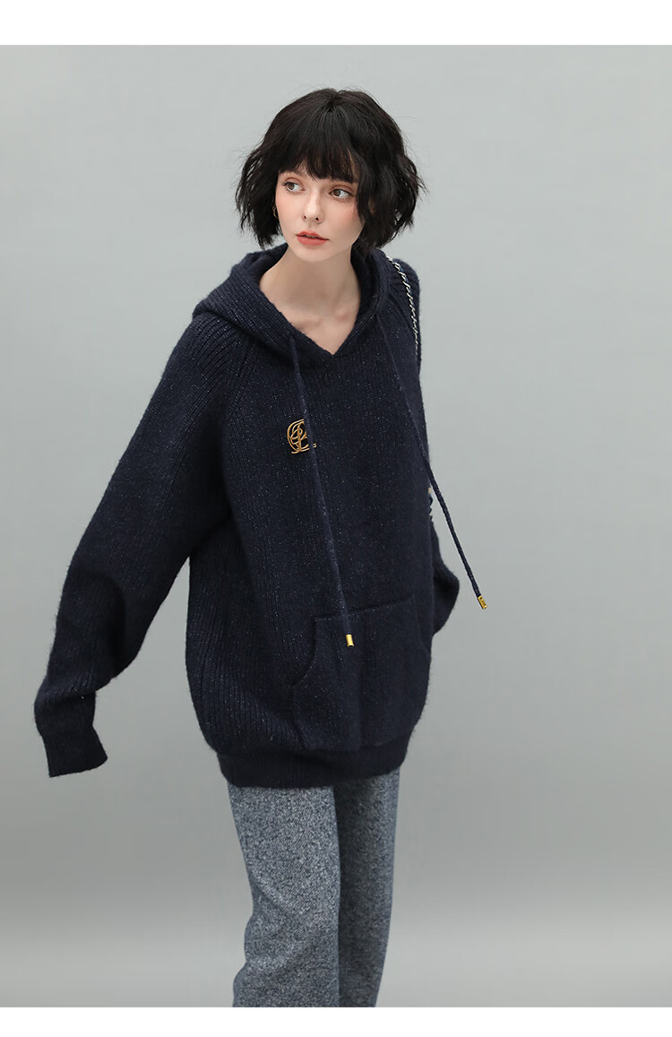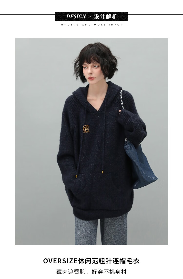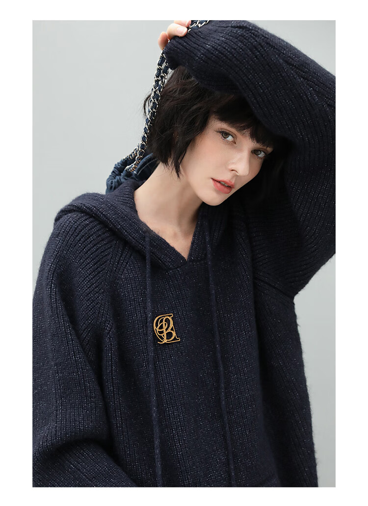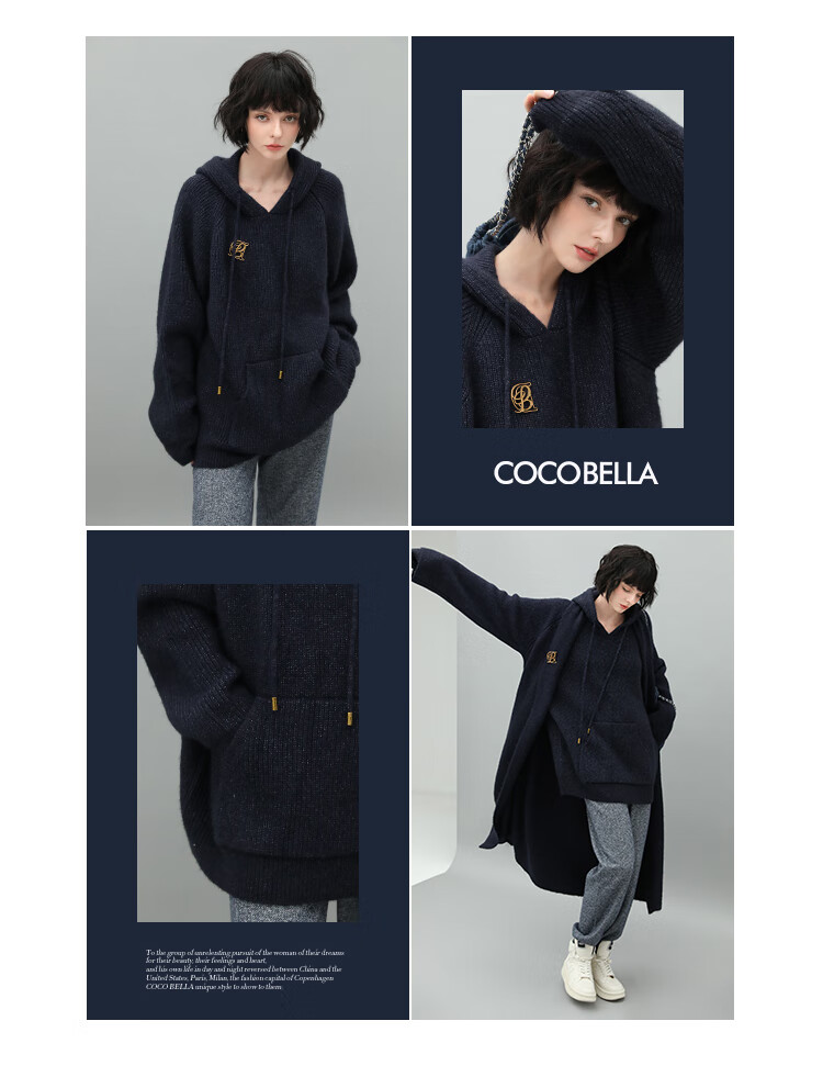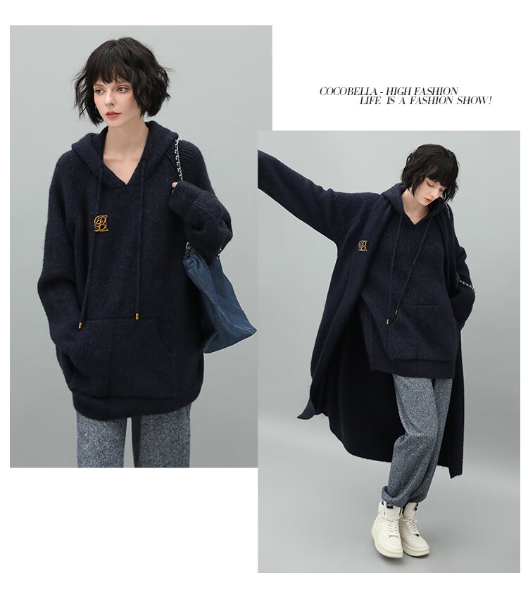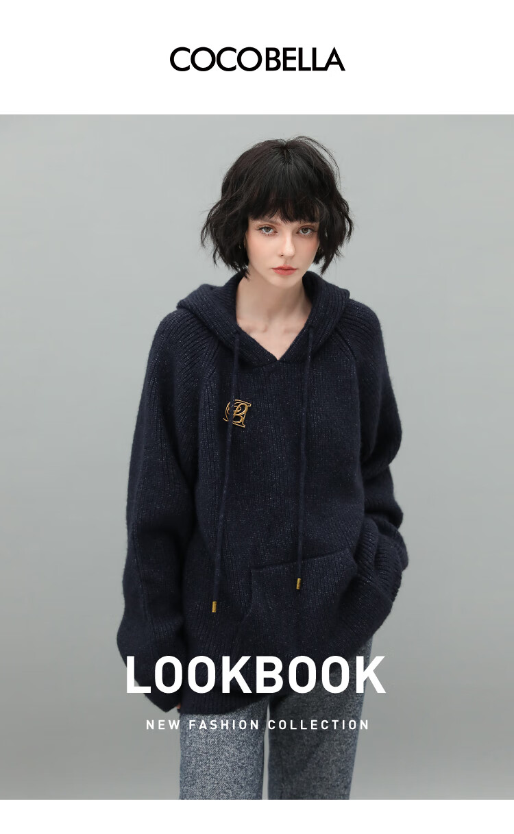 COCOBELLA质感花纱连帽针织衫女加厚休闲毛衣卫衣MZ578