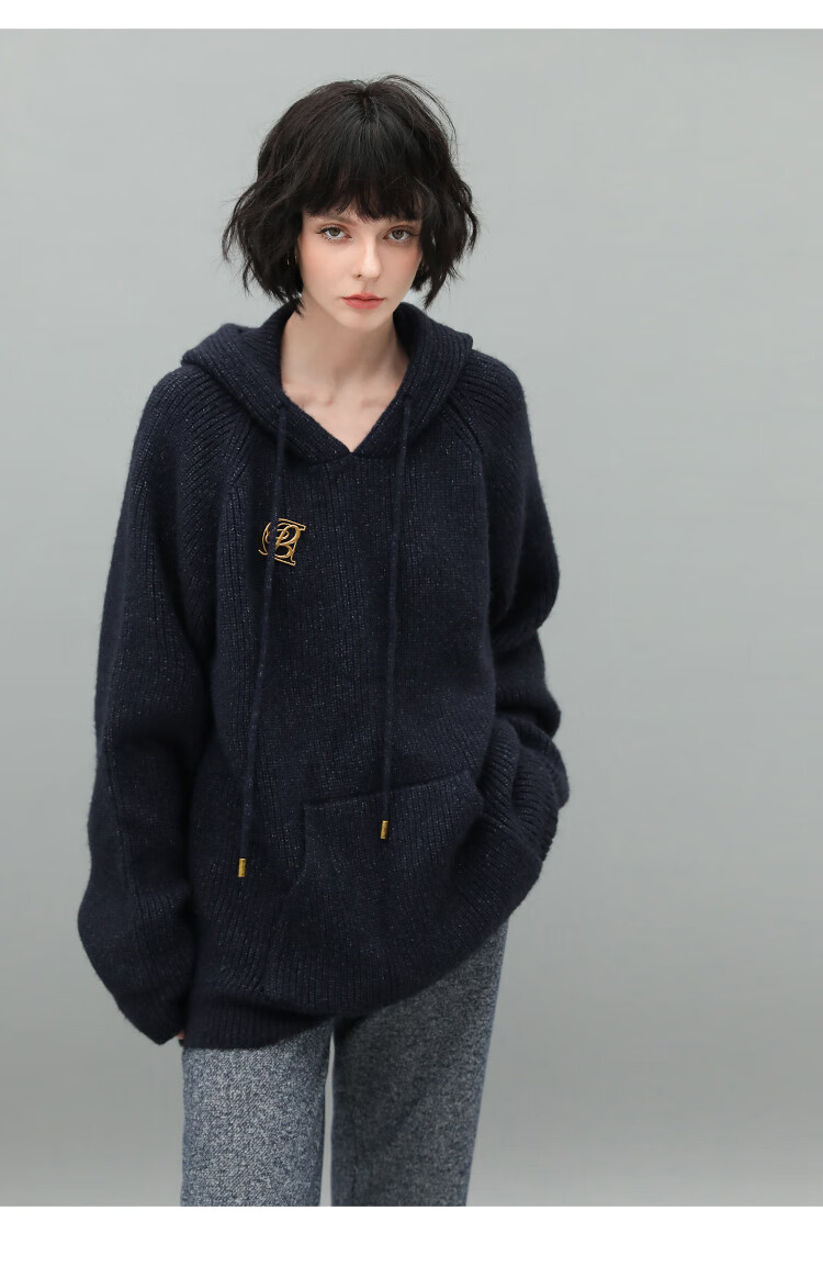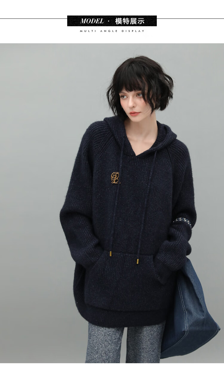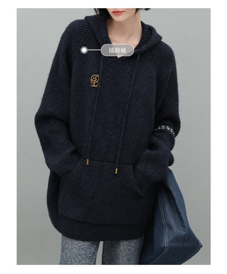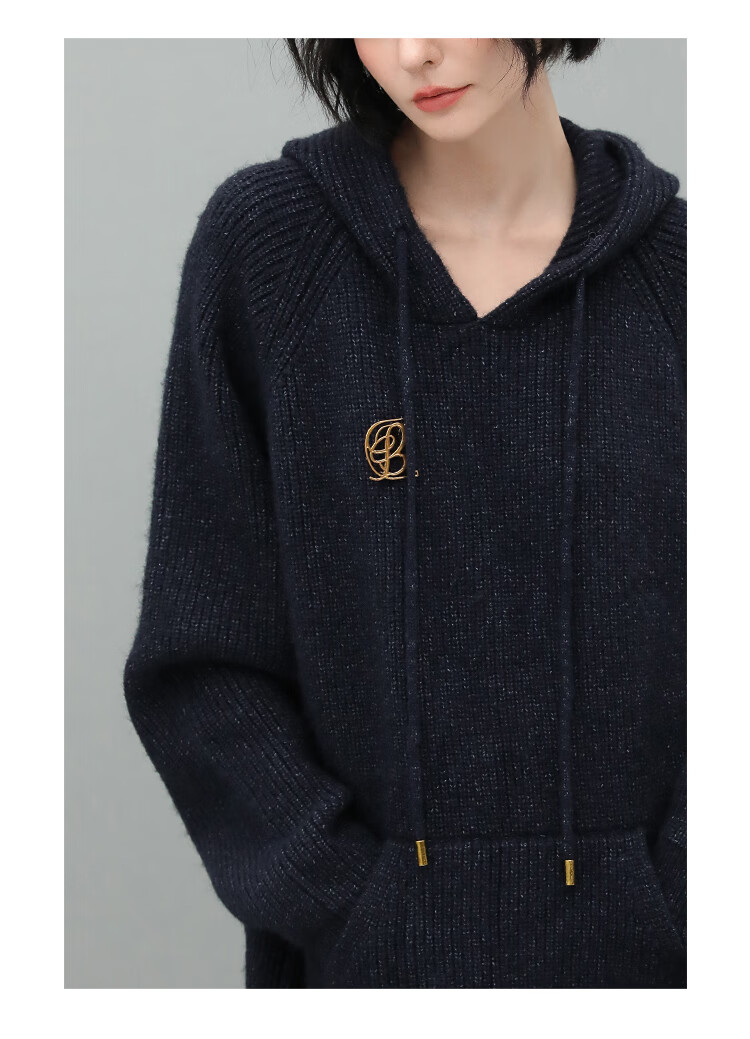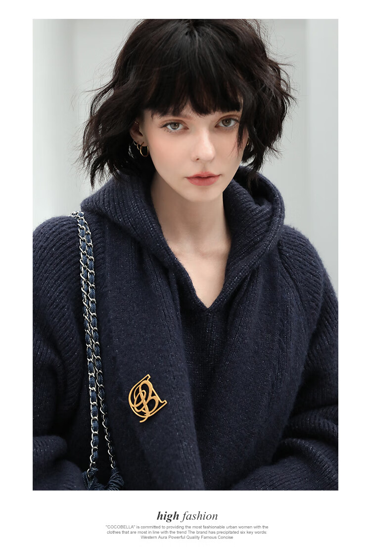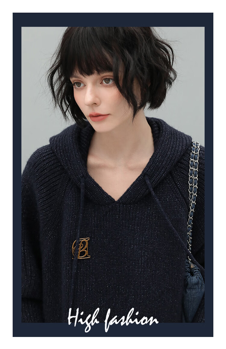 COCOBELLA质感花纱连帽针织衫女加厚休闲毛衣卫衣MZ578