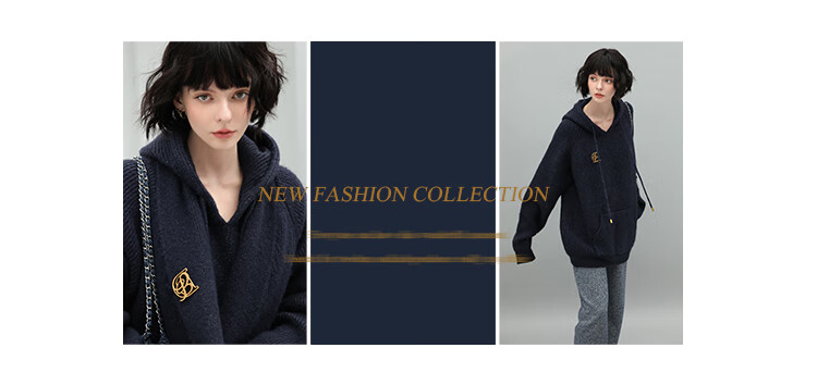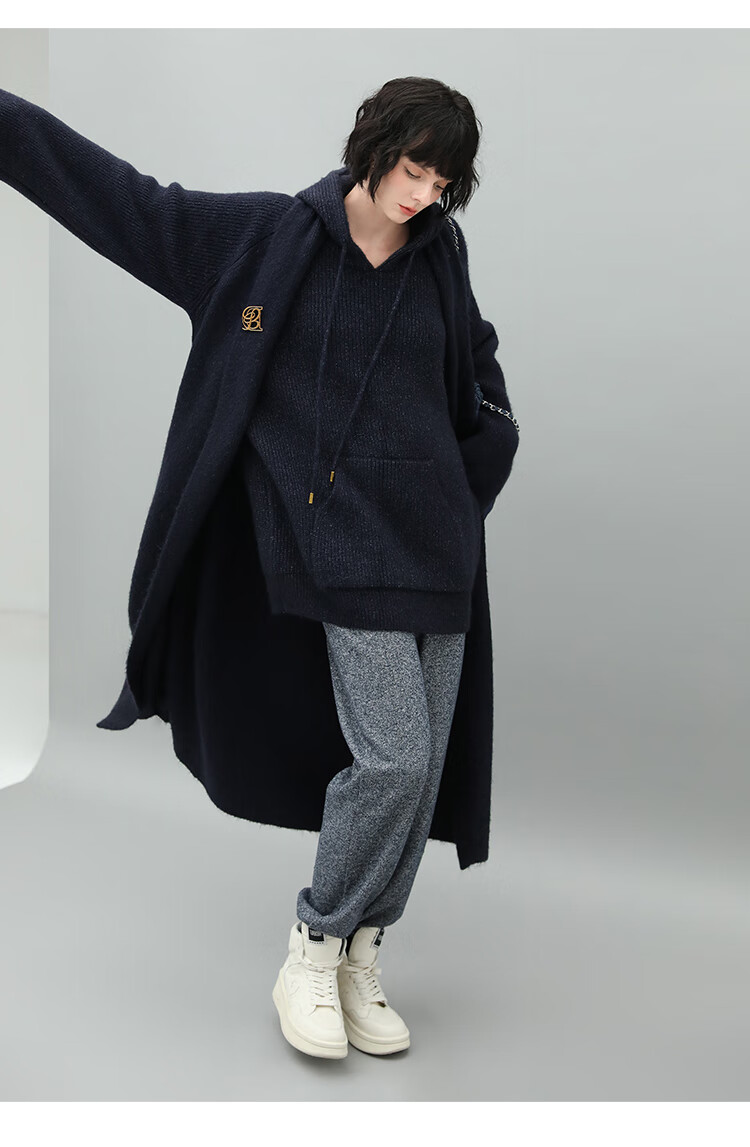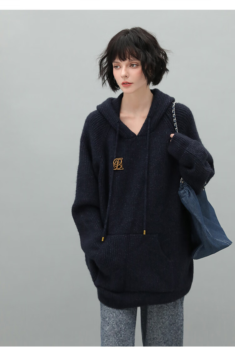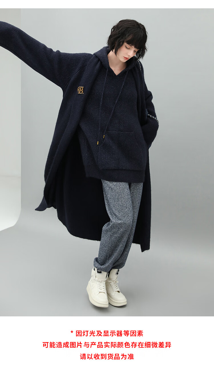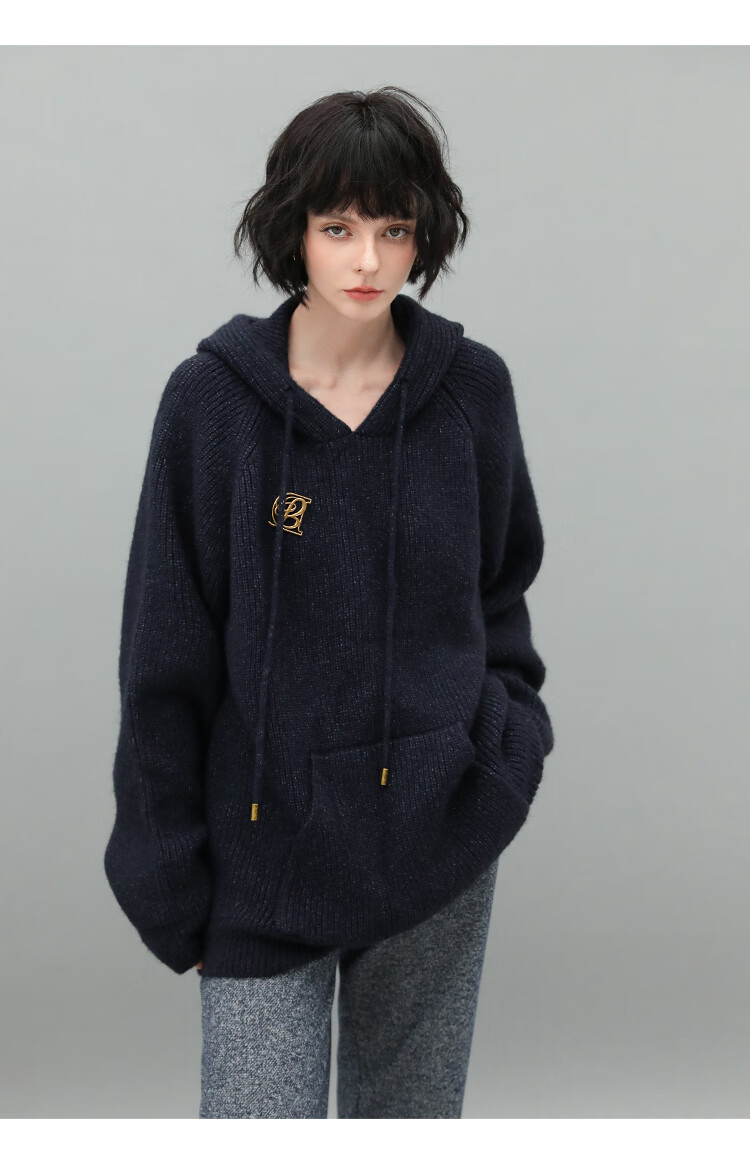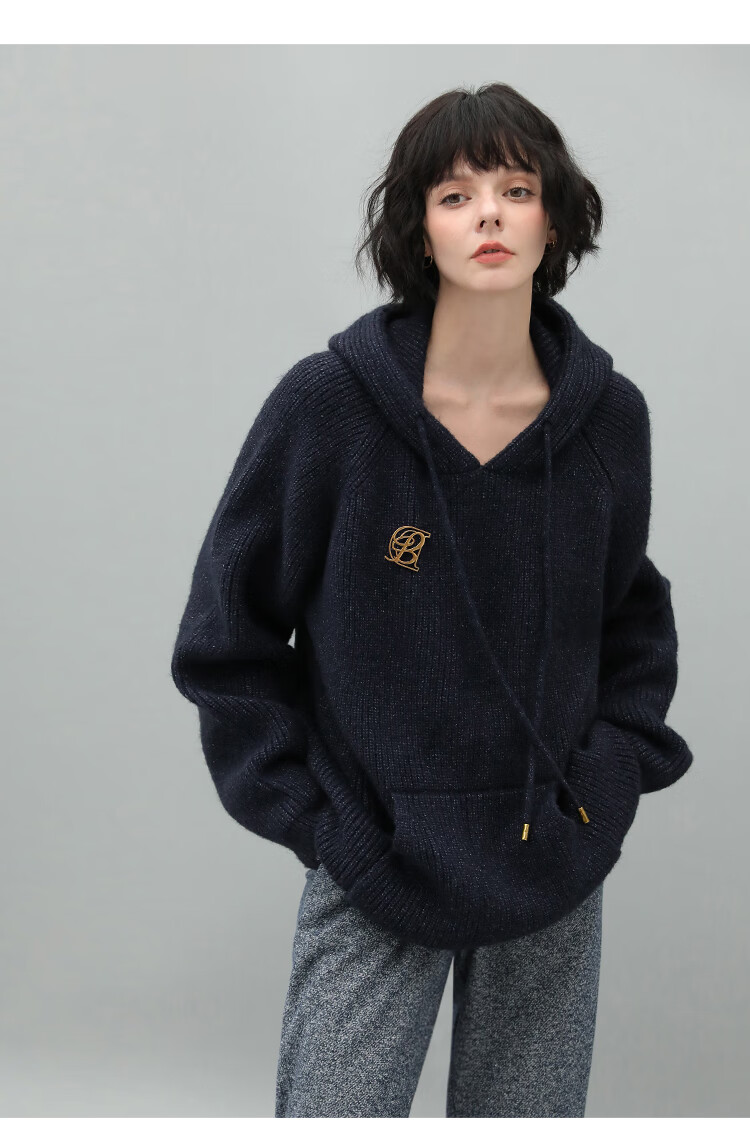 COCOBELLA质感花纱连帽针织衫女加厚休闲毛衣卫衣MZ578