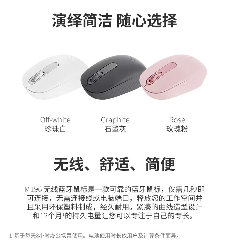 罗技M196 无线蓝牙鼠标 办公鼠标