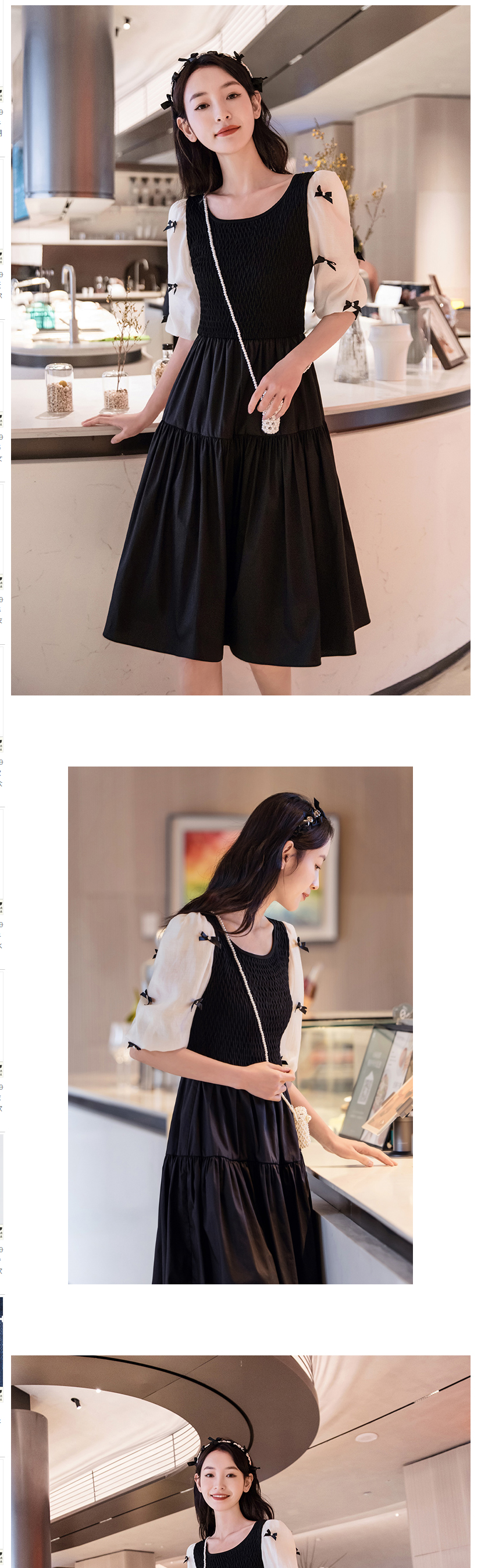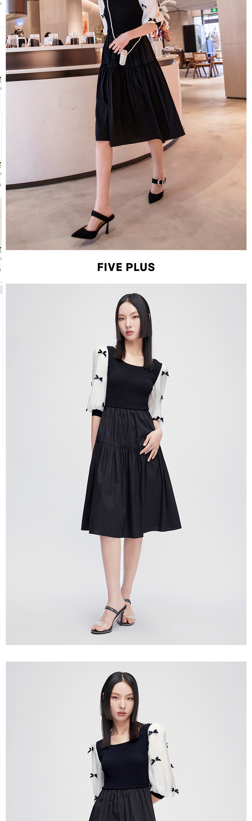 FIVE PLUS2022新款女夏装气质蝴蝶结连衣裙女高腰法式中长款裙子2WN2081370