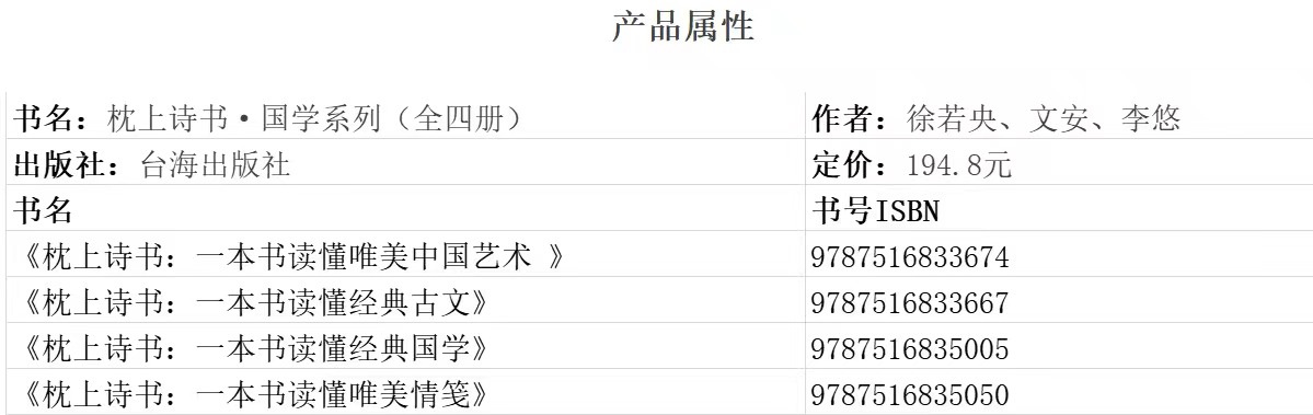 枕上诗书·国学系列 全4册套装——徐若央、文安、李悠 编著 台海出版社 中国艺术、古文、情笺、国学入门推荐读物